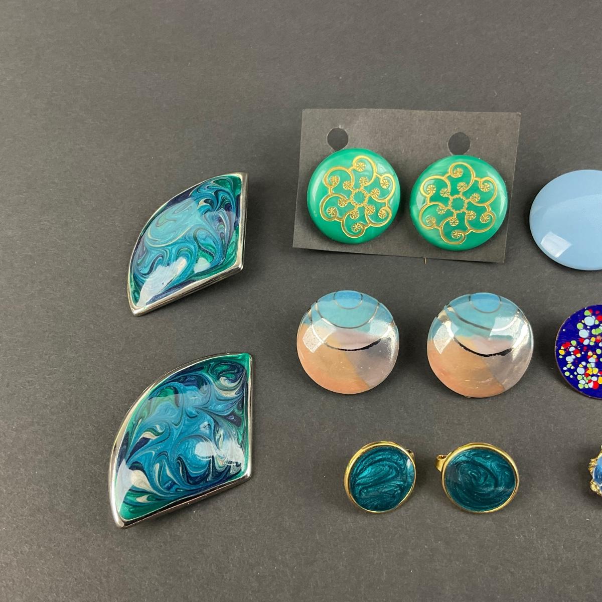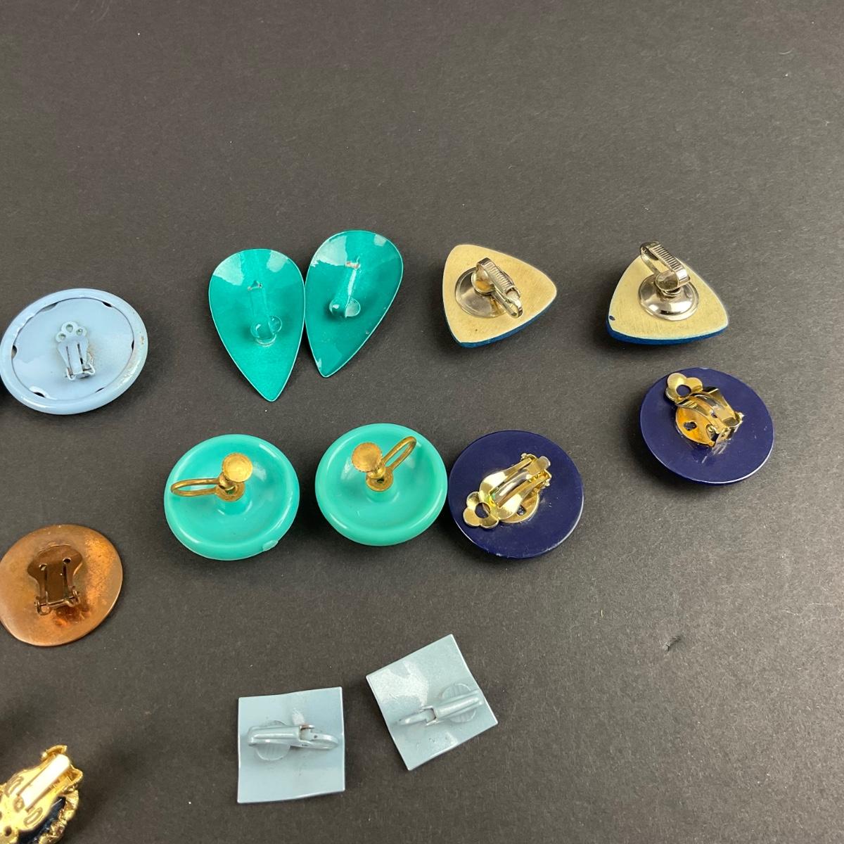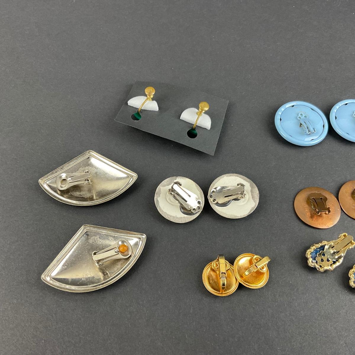 Twelve pair of assorted blue clip earrings. Please see photos for details and condition. Any condition statement is given as a courtesy to a client, is an opinion, and should not be treated as a statement of fact. Reference to condition written, oral or within a condition report shall not be regarded as a full account of condition and may not include all defects, alterations, or restorations. Absence of a condition report does not imply a lot is flawless or lacking imperfections or damage. Katherine’s Auction & Appraisal Service shall have no responsibility for any error or omission. Returns shall not be accepted on the basis of condition. ::: Shipping is available on this lot. If you require shipping you must let us know at the close of the auction. We will coordinate with you after the item has been won. Shipping fees will include insurance up to or exceeding the value of all items being mailed. If you have any questions regarding this lot please contact the auctioneer either via this website, by direct email or by phone. PICK UP TIMES and other important information can be found in the TERMS and DESCRIPTION of the auction. Please take a look for pertinent information. Thanks!