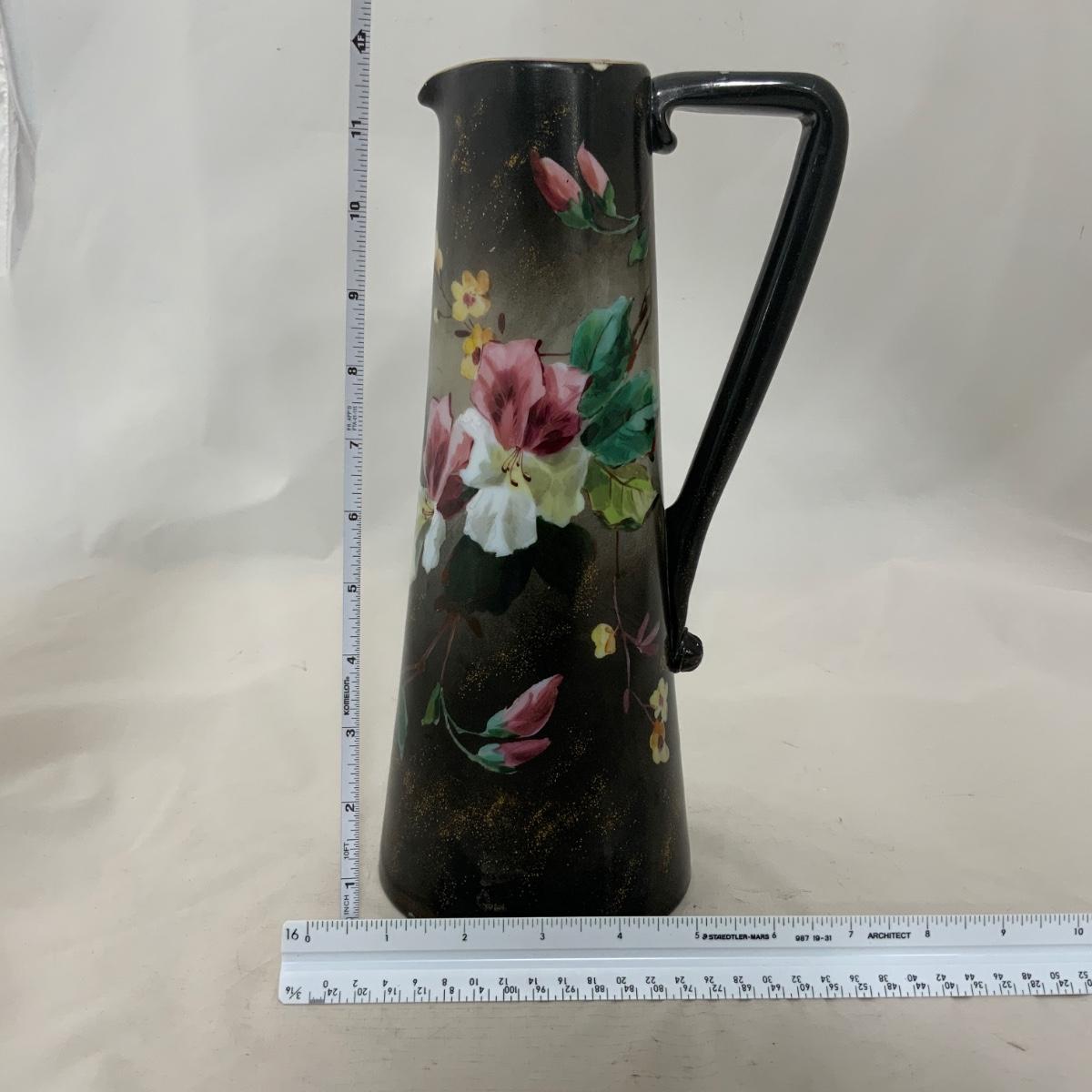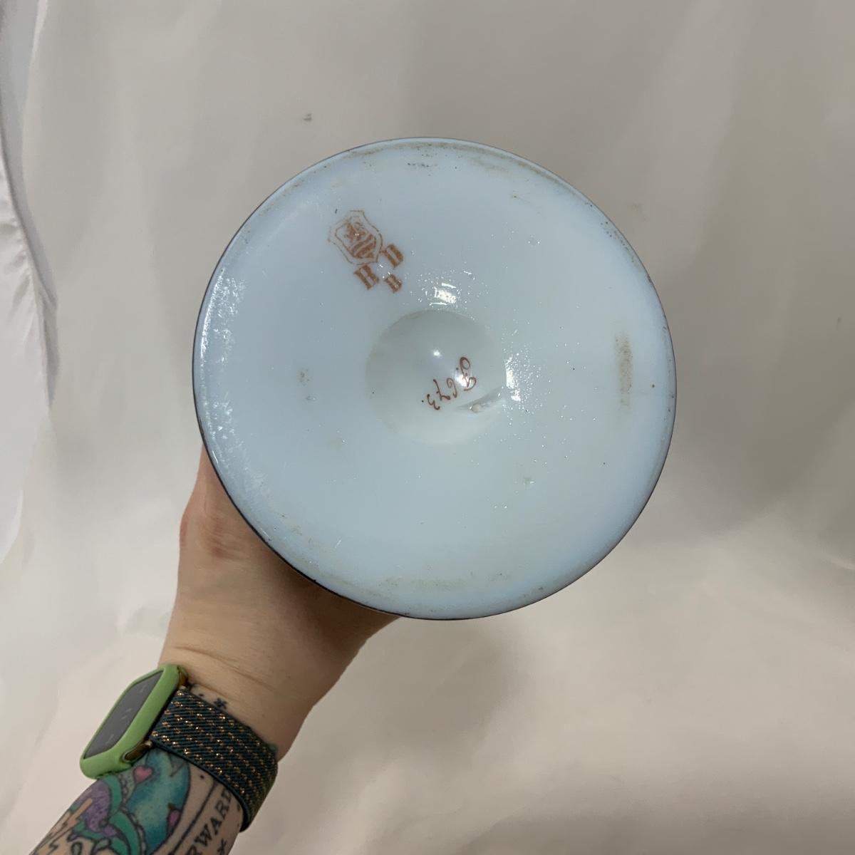 Beautiful Large Glass Hand Painted Handled Vase, circa 1880. You’d really have to take a second look at this, the color is so opaque and perfect on the vase that you’d swear it must be porcelain, but you can see that it’s a really wonderful milk glass underneath that paint. Please see photos for details and condition. ::: Shipping is available on this lot. If you require shipping you must let us know at the close of the auction. We will coordinate with you after the item has been won. Shipping fees will include insurance up to or exceeding the value of all items being mailed. If you have any questions regarding this lot please contact the auctioneer either via this website, by direct email or by phone. PICK UP TIMES and other important information can be found in the TERMS and DESCRIPTION of the auction. Please take a look for pertinent information. Thanks!