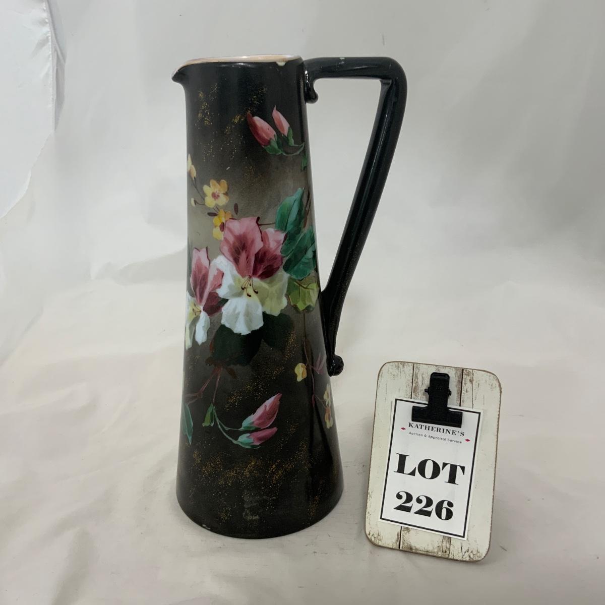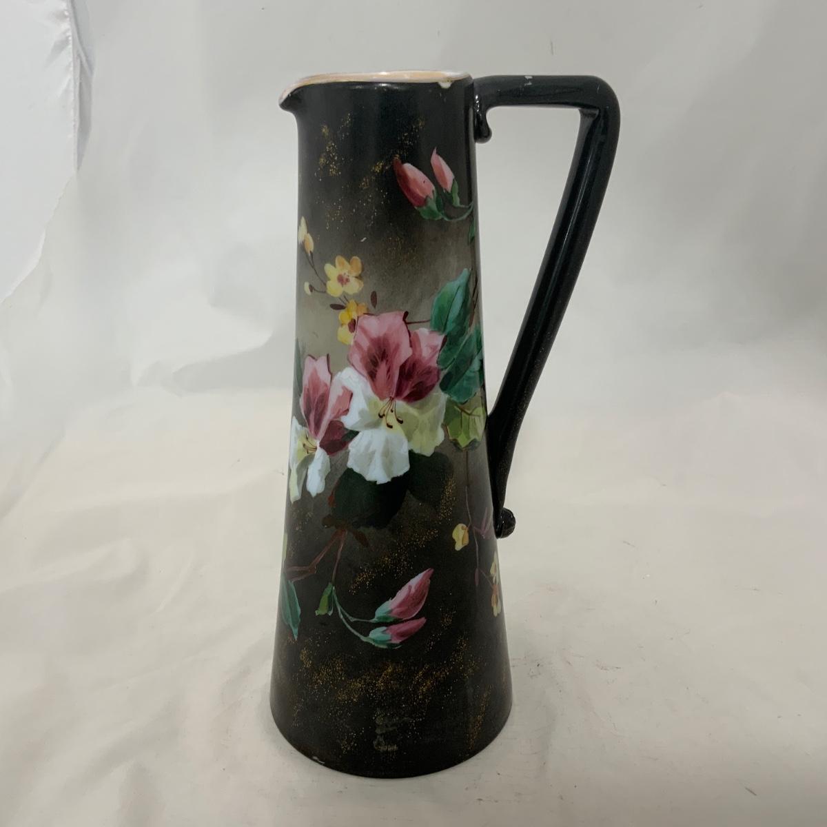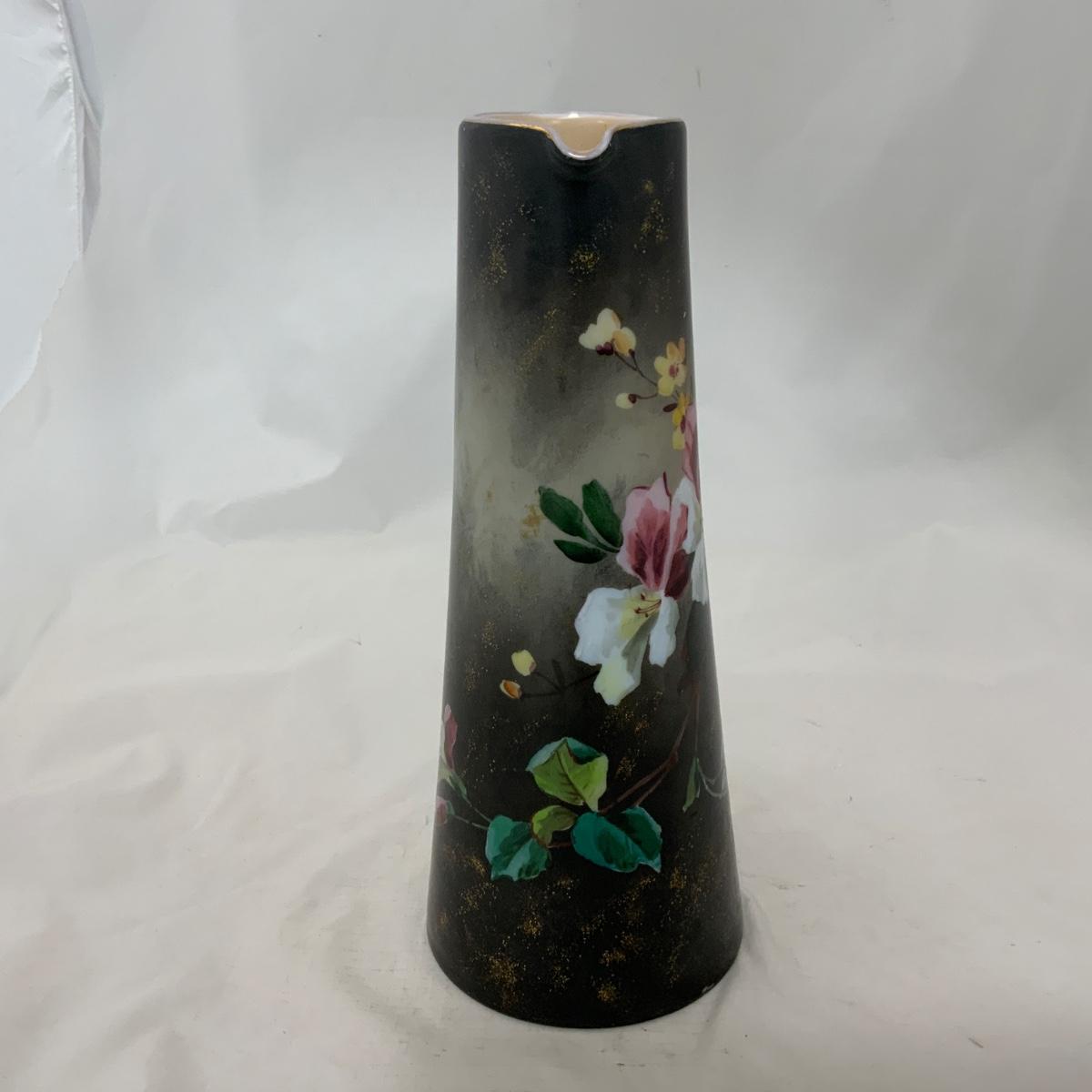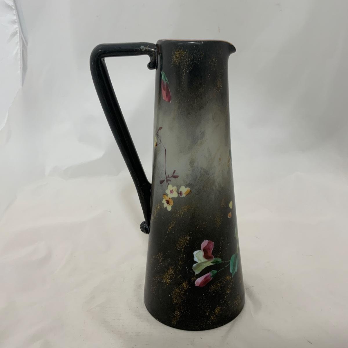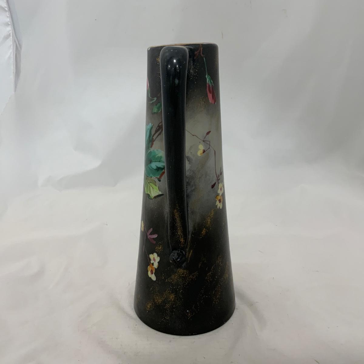 .226. Large Glass Hand Painted | Handled Vase | c. 1880