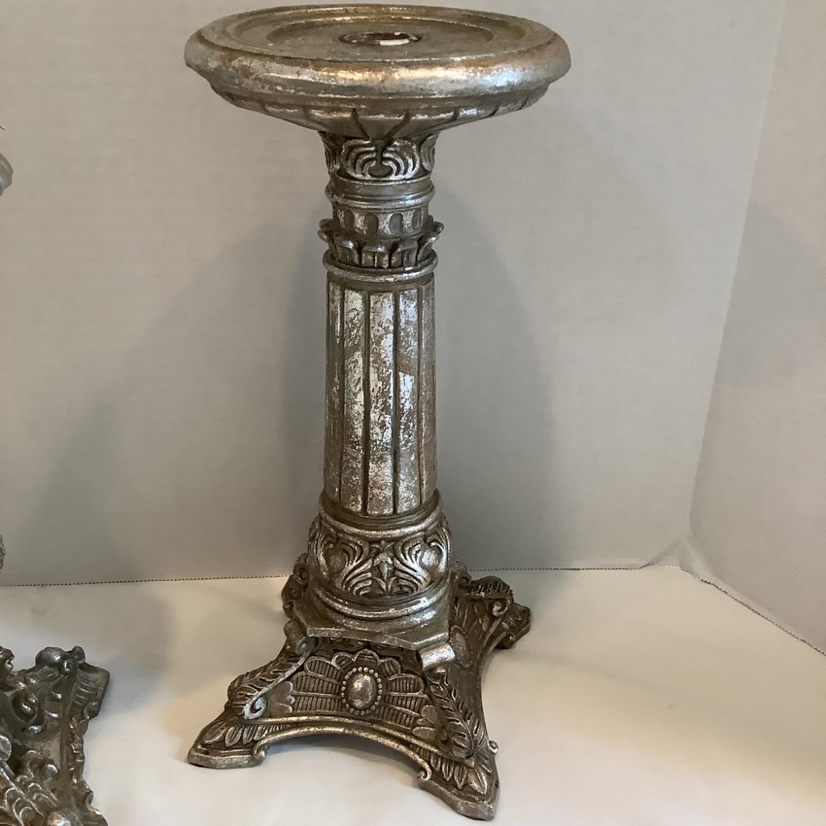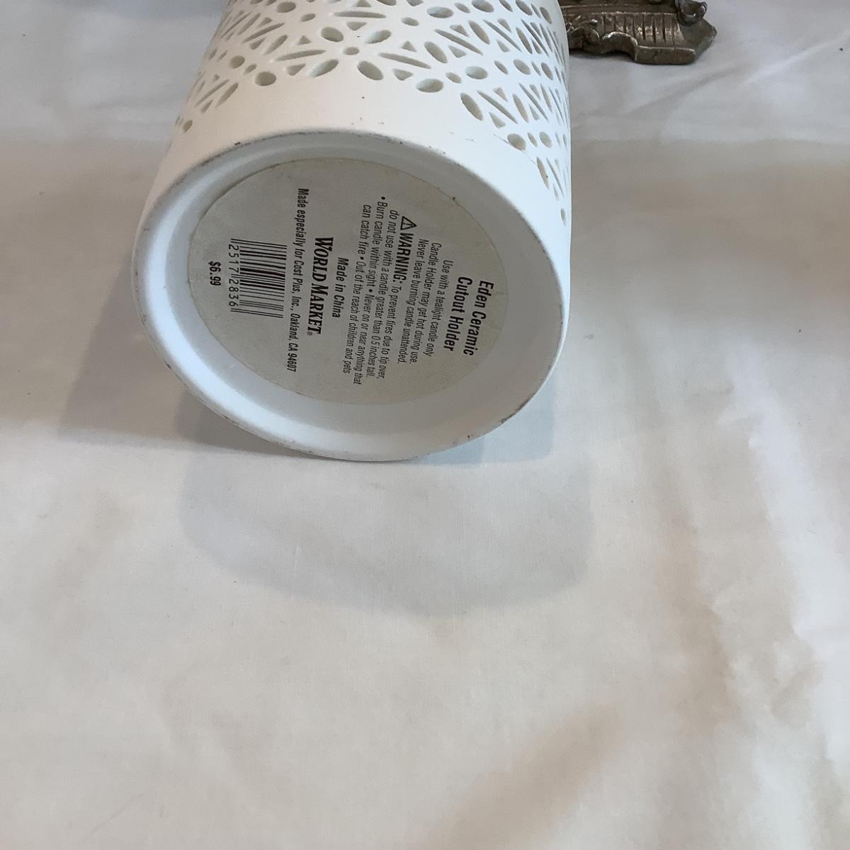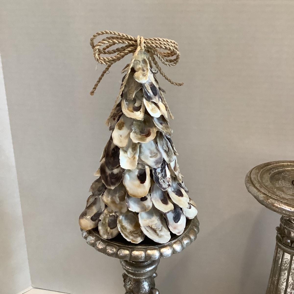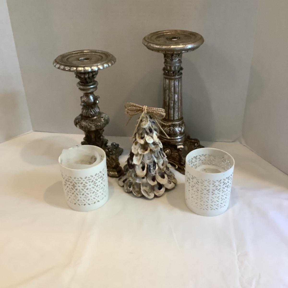 226 Metallic Style Candlesticks with White Ceramic Cut out Holders and Small Shell Xmas Tree