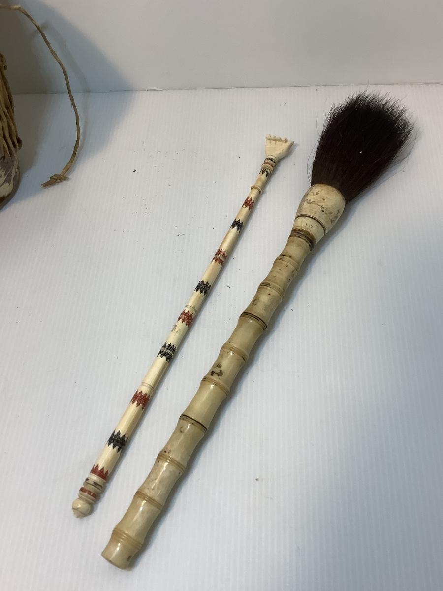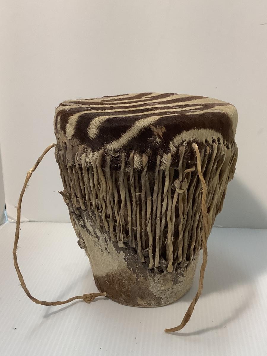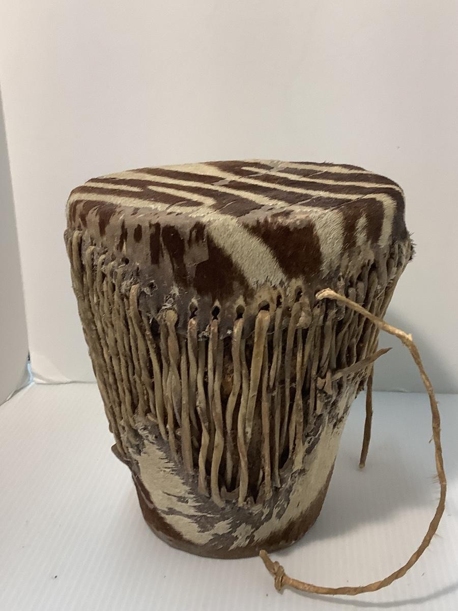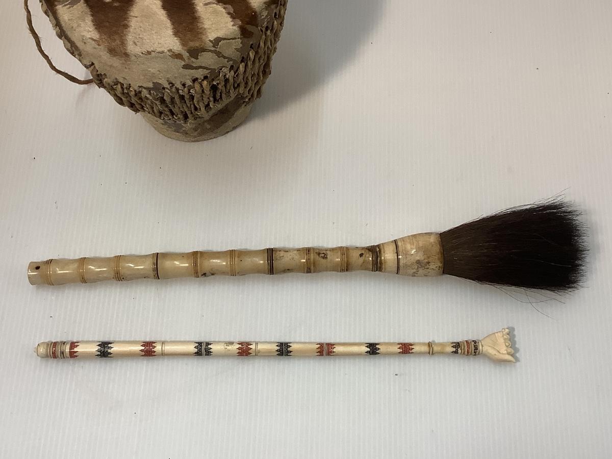 226. Vintage African Animal Skin Drum/Old Chinese Calligraphy Brush Hair Pen