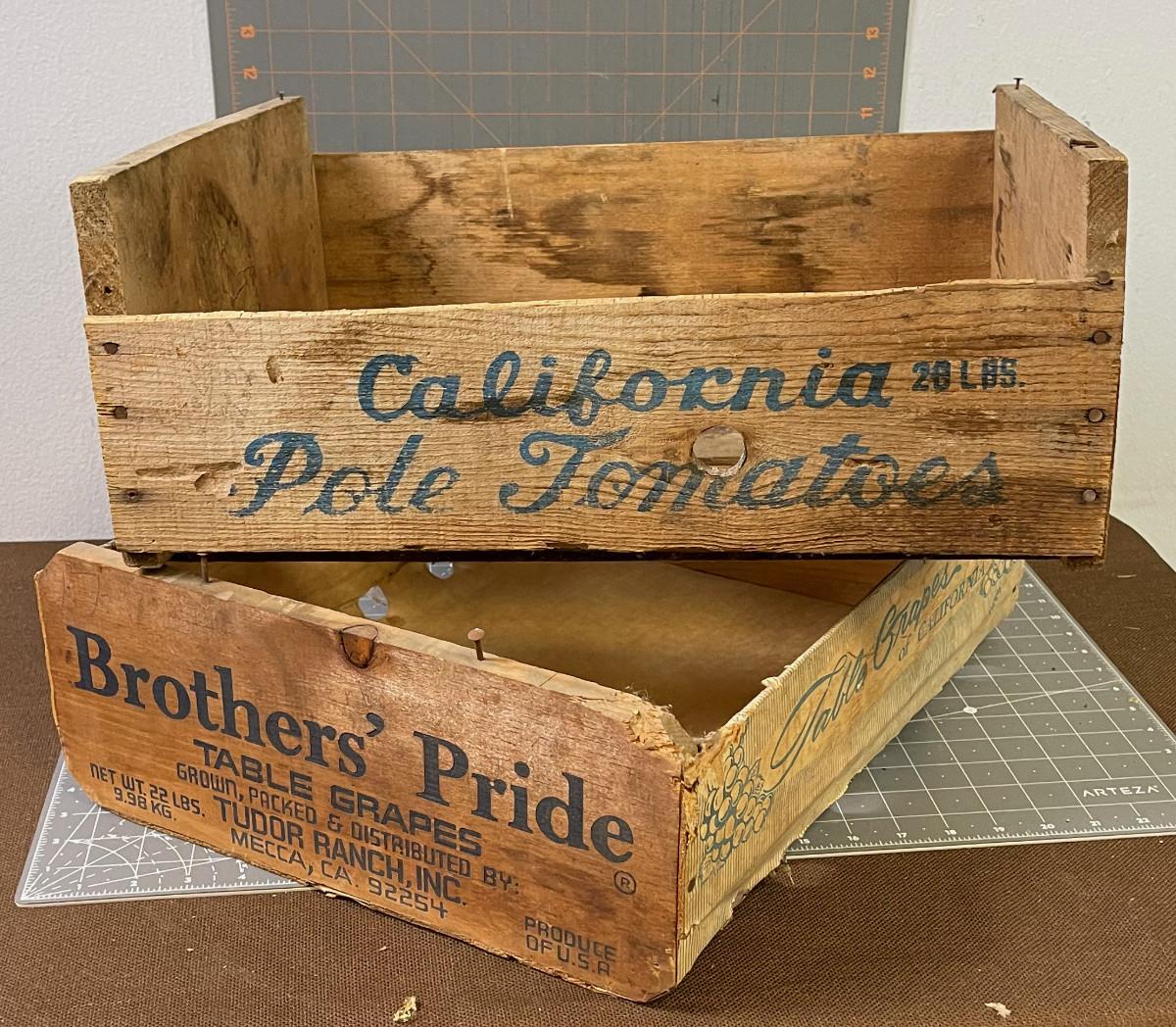 #227 (2) Pair of Vintage Crates: Grapes and Tomatoes