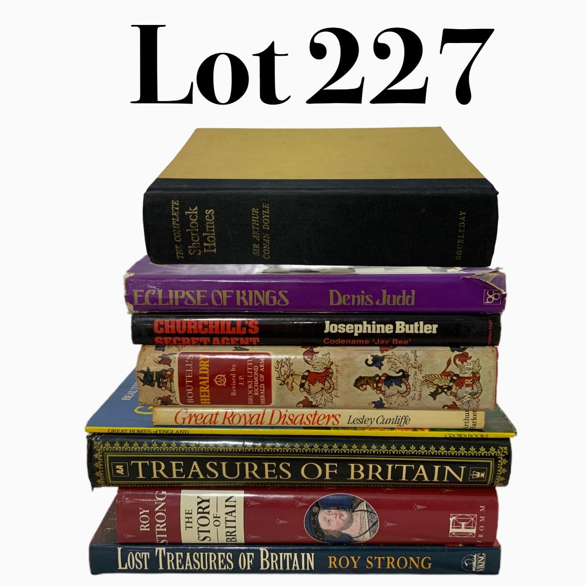 From the Estate of Peter and Alice Radovanovich: The Complete Sherlock Holmes by Sir Arthur Conan Doyle, hardcover copy without a dust jacket. No definitive year of print, the book refers to the years that the stories were originally published, spanning 1893-1927 // Eight Books about the United Kingdom. Lost Treasures of Britain by Roy Strong | The Story of Britain by Roy Strong | Treasures of Britain (Traveler’s Guide) | Great Homes of England by Crown Books | Great Royal Disasters by Lesley Cunliffe | Boutell’s Heraldry by J.P. Brooke-Little, FSA | Churchill’s Secret Agent by Josephine Butler | Eclipse of Kings by Denis Judd. All books are in Excellent to Fair used condition. Some wear on copies that have been in the collection for years. Please see photos for details and condition. ::: Shipping is available on this lot. If you require shipping you must let us know at the close of the auction. We will coordinate with you after the item has been won. Shipping fees will include insurance up to or exceeding the value of all items being mailed. If you have any questions regarding this lot please contact the auctioneer either via this website, by direct email or by phone. PICK UP TIMES and other important information can be found in the TERMS and DESCRIPTION of the auction. Please take a look for pertinent information. Thanks!