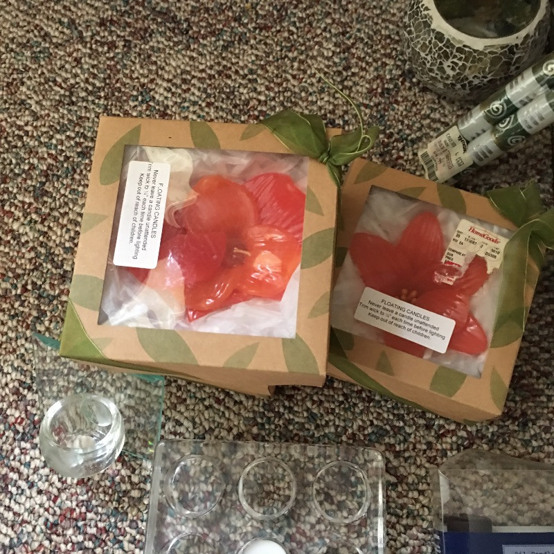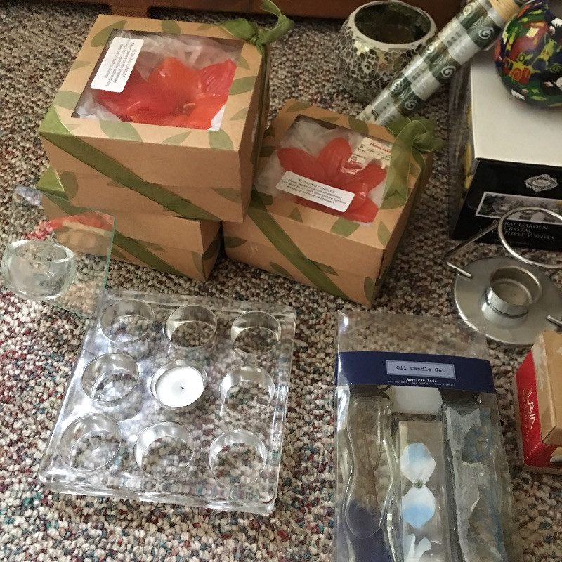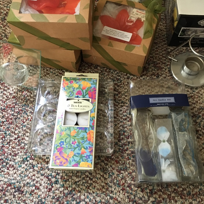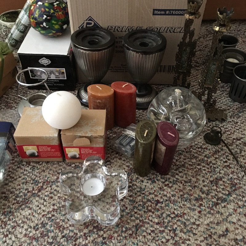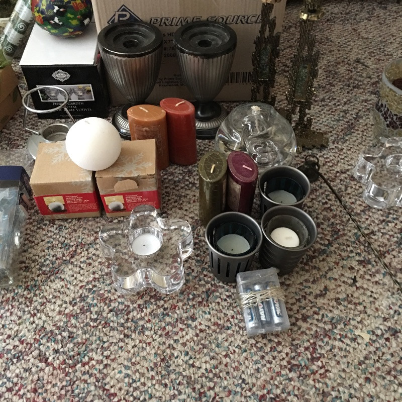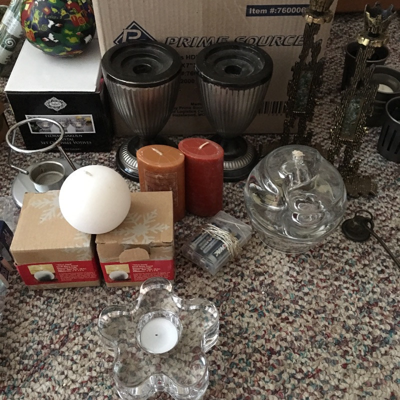 Large array of candles in a variety of shapes and sizes and battery powered led light. Be ready for the next power outage.