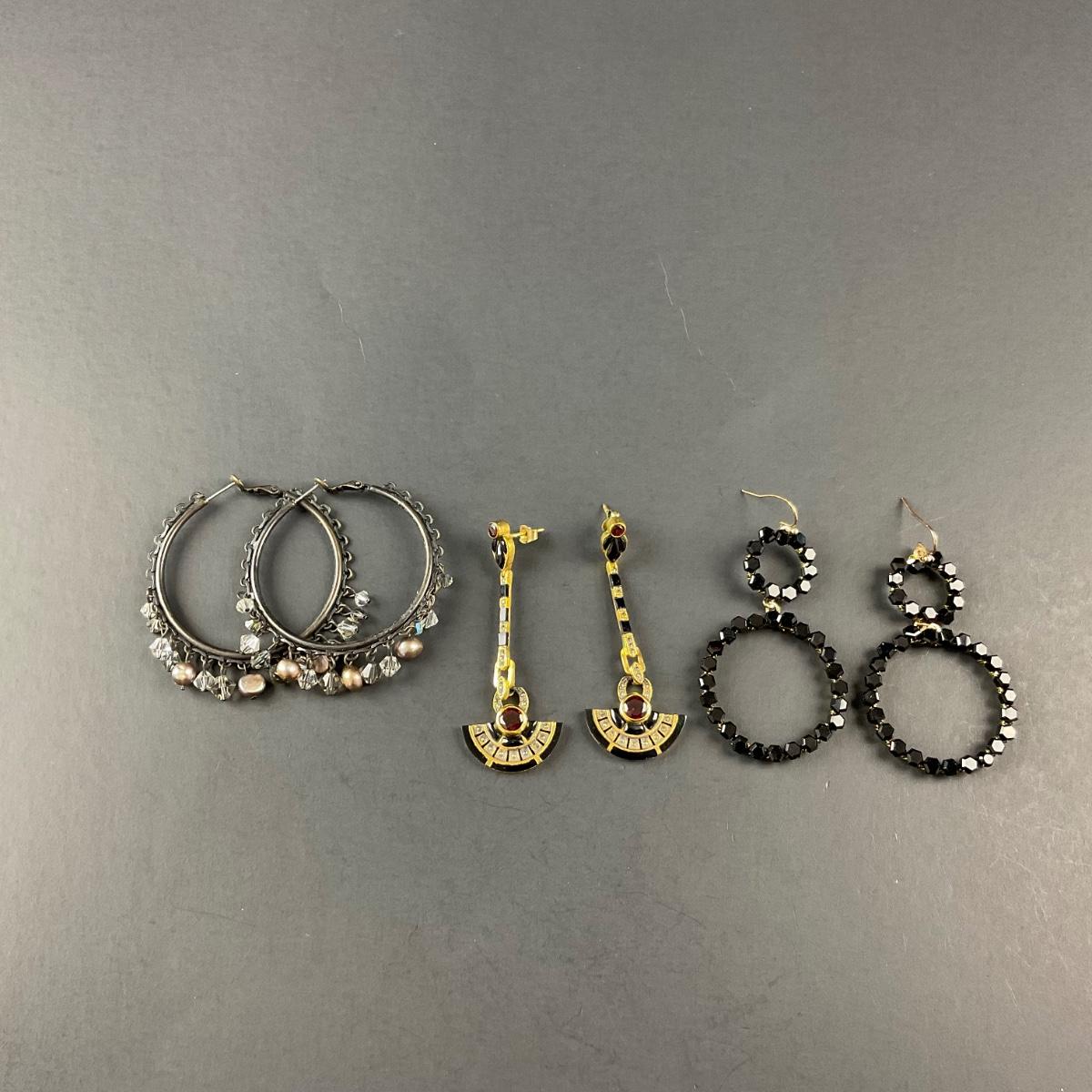 Three pairs of miscellaneous unique looking earrings. This piece has no damage, and appears to be in great shape with no visable chips, cracks, or broken pieces. Please see photos for details and condition. Any condition statement is given as a courtesy to a client, is an opinion, and should not be treated as a statement of fact. Reference to condition written, oral or within a condition report shall not be regarded as a full account of condition and may not include all defects, alterations, or restorations. Absence of a condition report does not imply a lot is flawless or lacking imperfections or damage. Katherine’s Auction & Appraisal Service shall have no responsibility for any error or omission. Returns shall not be accepted on the basis of condition. ::: Shipping is available on this lot. If you require shipping you must let us know at the close of the auction. We will coordinate with you after the item has been won. Shipping fees will include insurance up to or exceeding the value of all items being mailed. If you have any questions regarding this lot please contact the auctioneer either via this website, by direct email or by phone. PICK UP TIMES and other important information can be found in the TERMS and DESCRIPTION of the auction. Please take a look for pertinent information. Thanks!