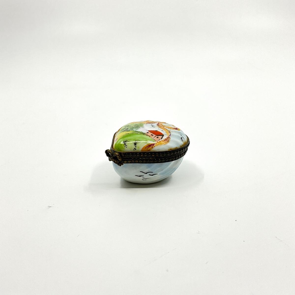 227 Limoges France Shell Shaped Hand-painted Cottage Porcelain Box