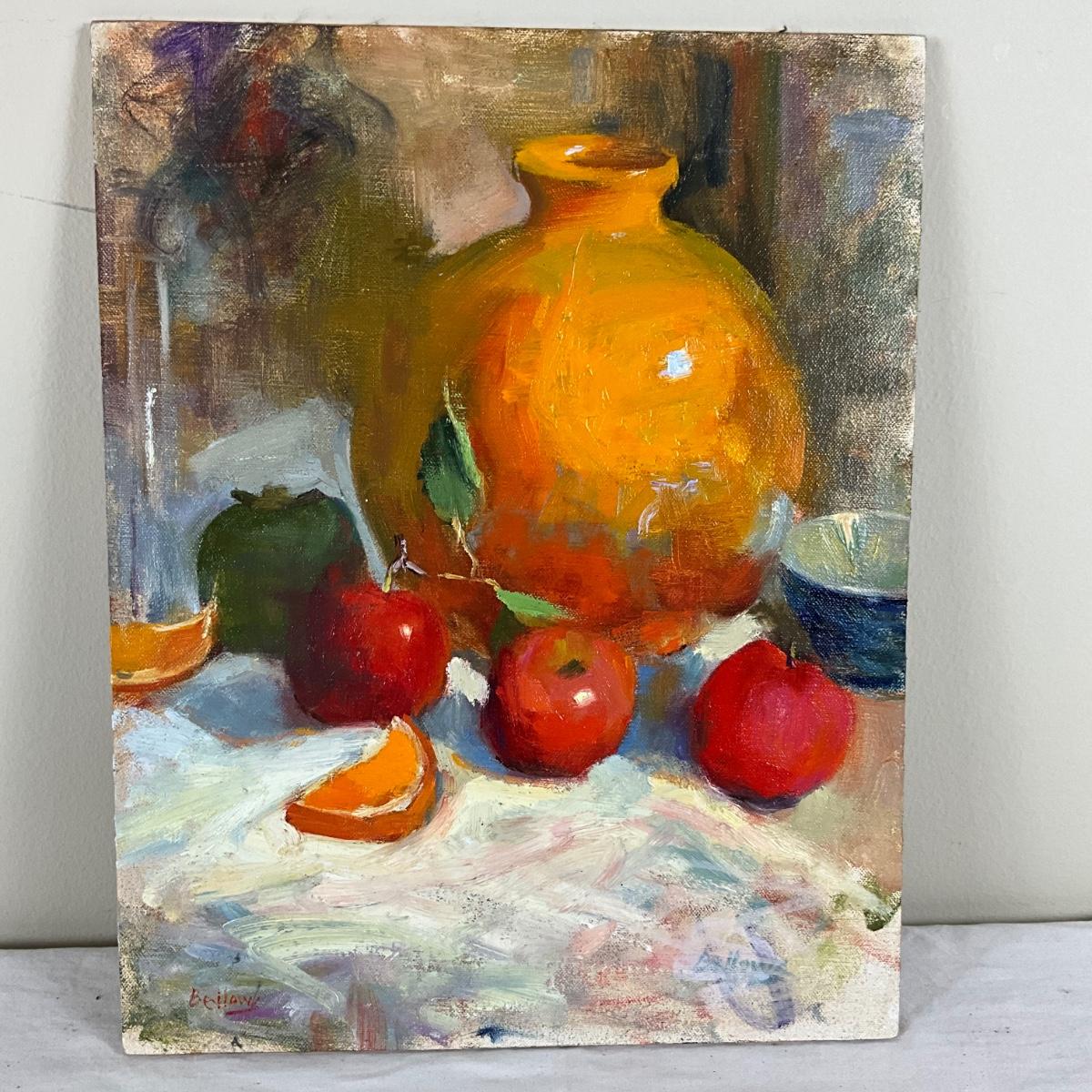 227 Original Oil Painting "Yellow Pottery with Apples" signed Bellows