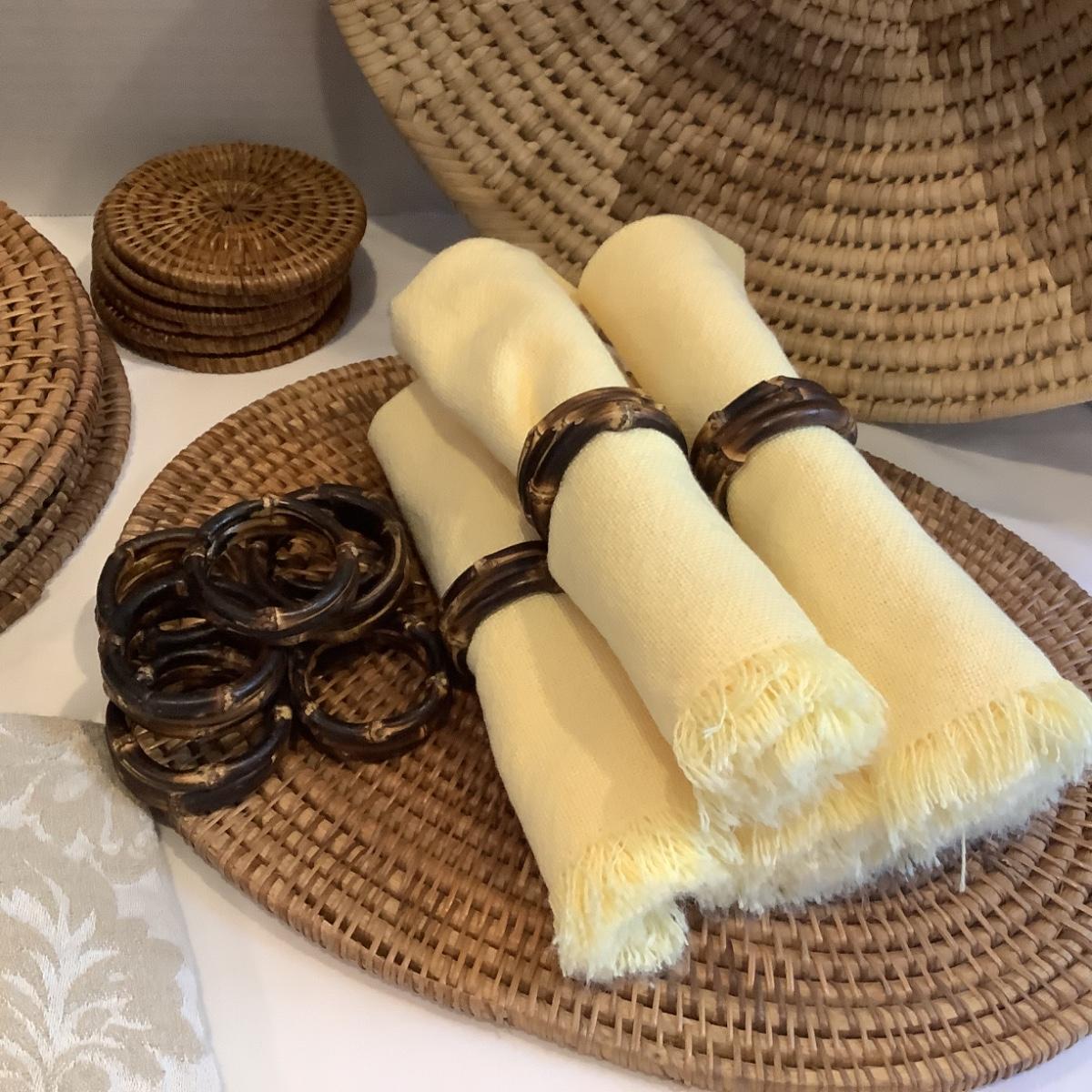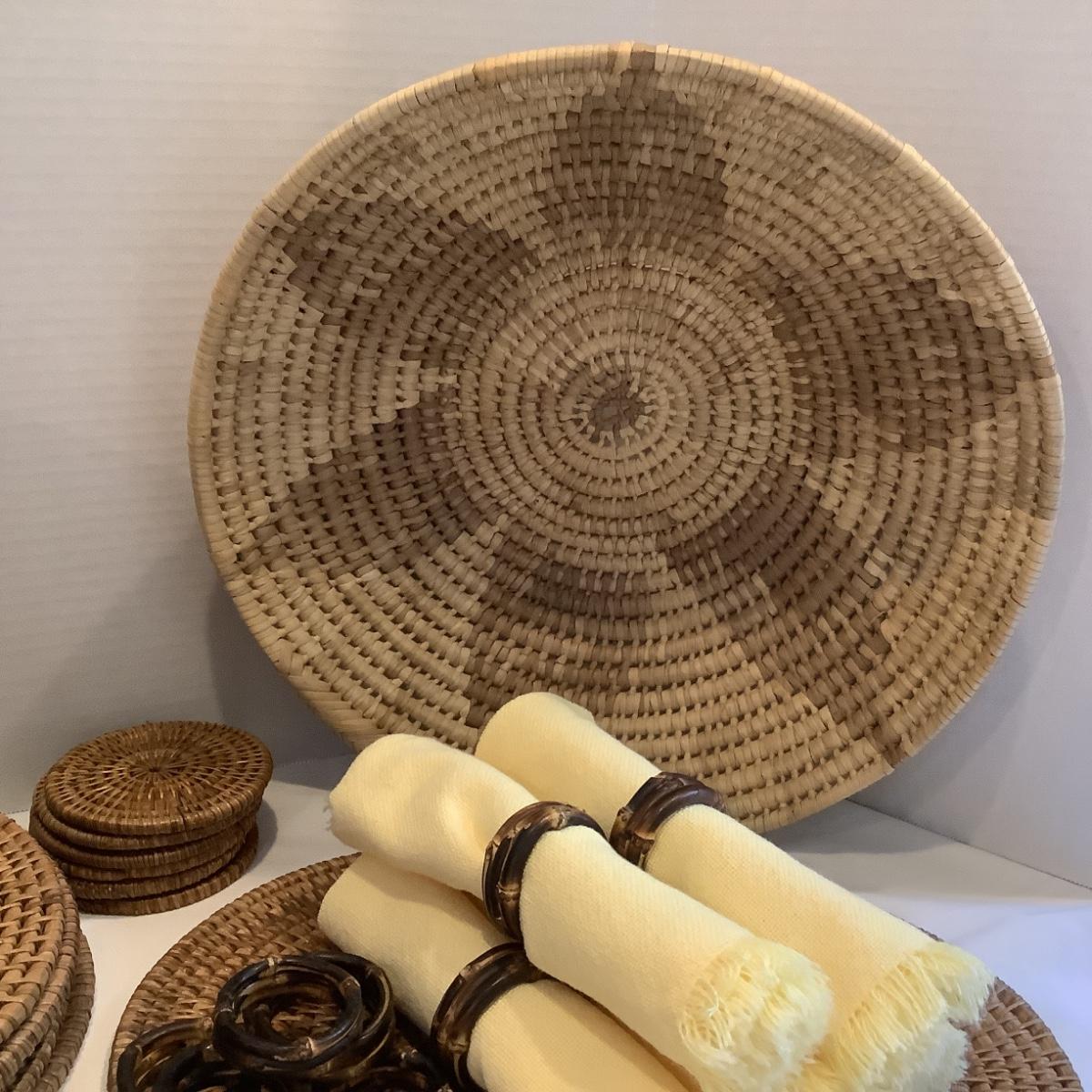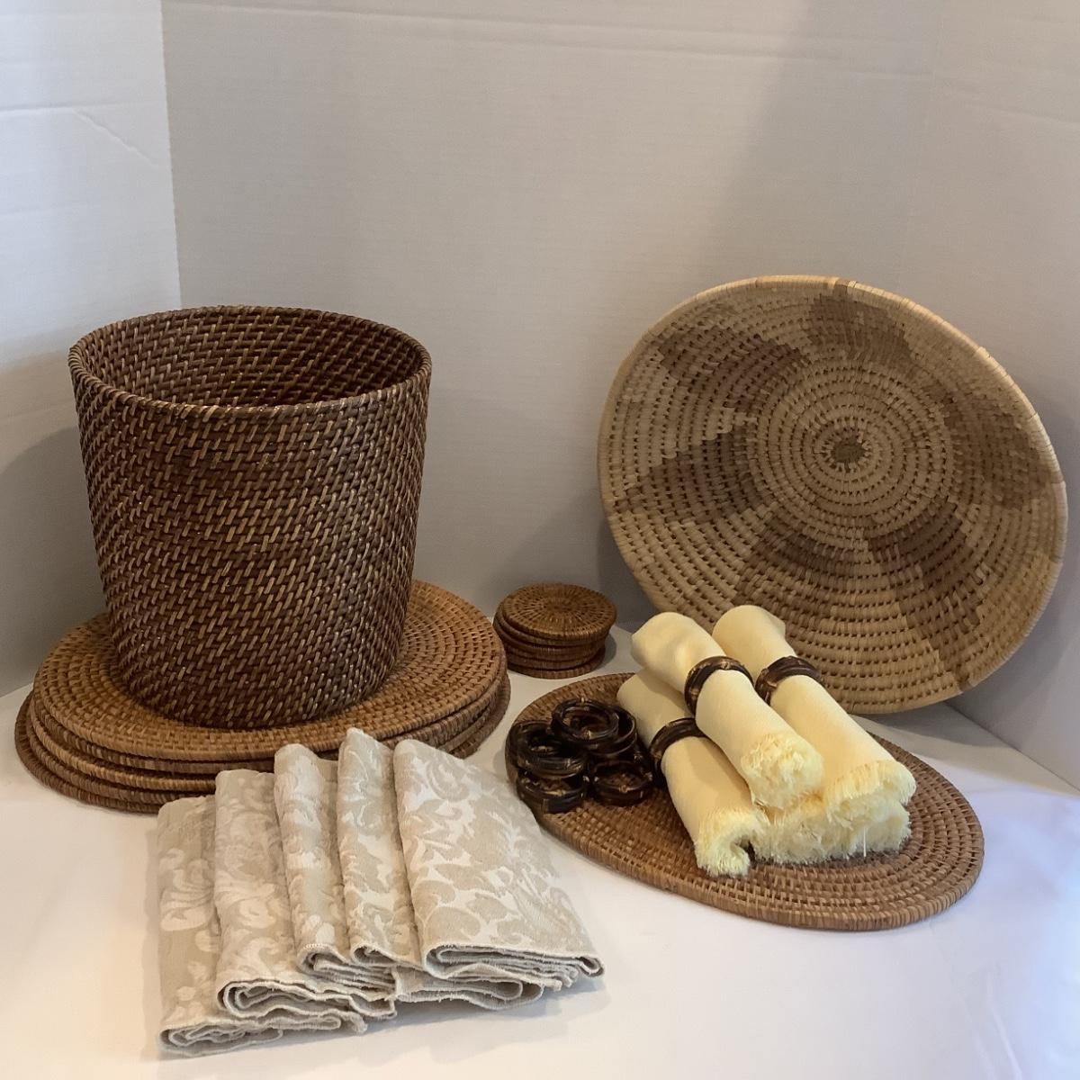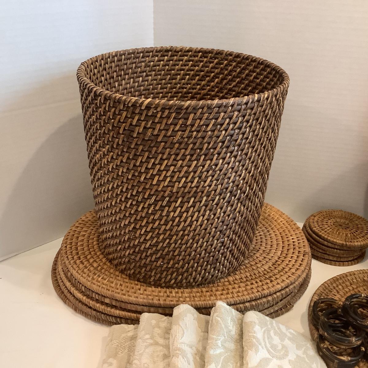 227 Rattan Woven Wastebasket with Round Woven Placemats and Napkin Set
