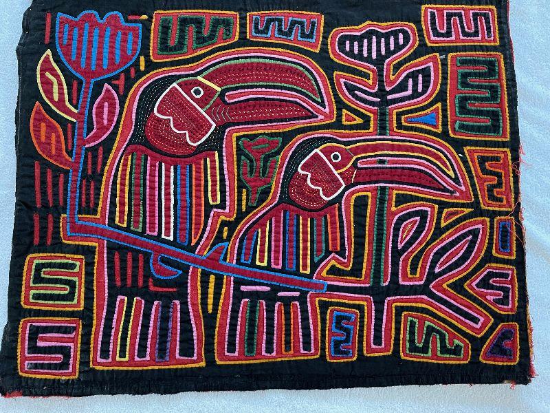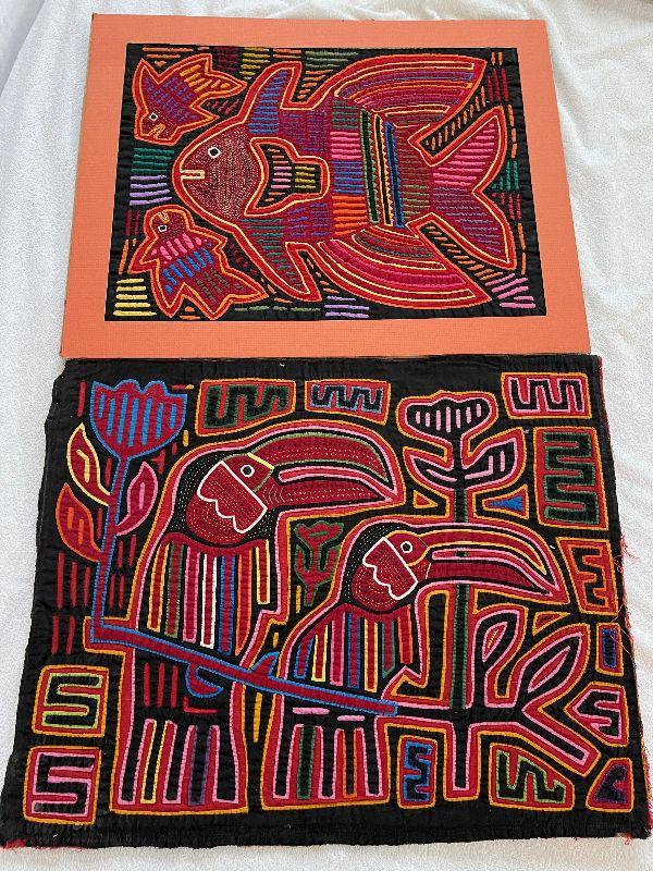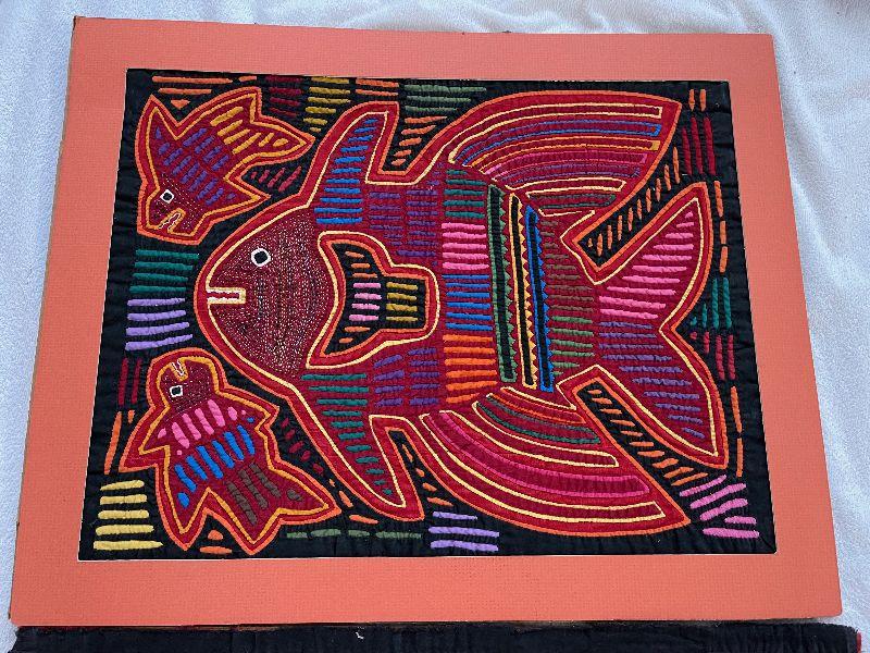 #228 Central American?  Hand Stitched Yarn  Pictures 2 unframed fish and toucan