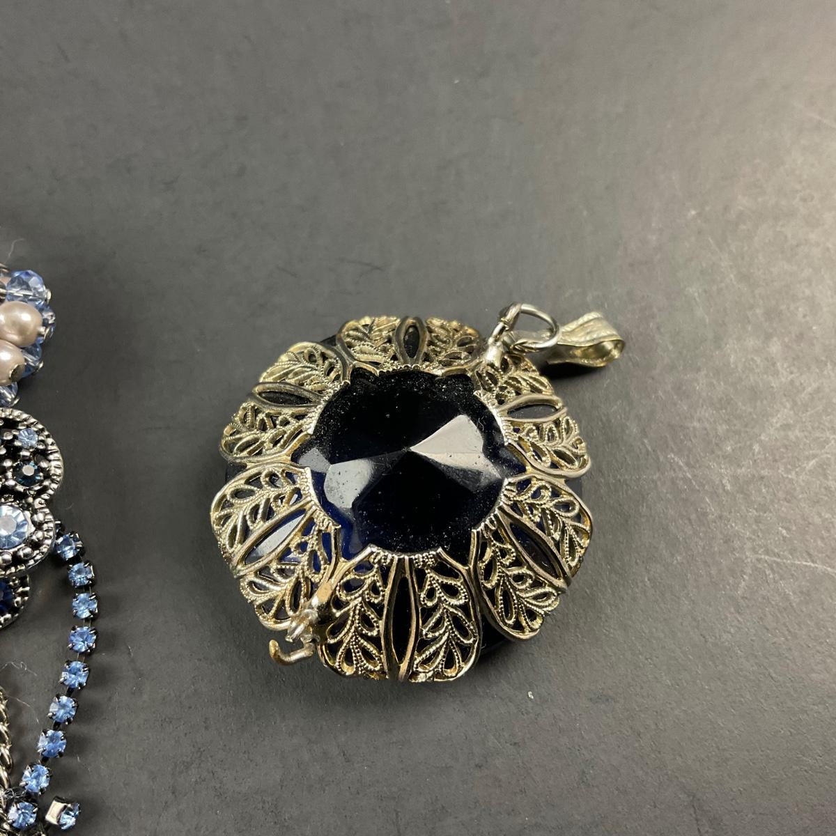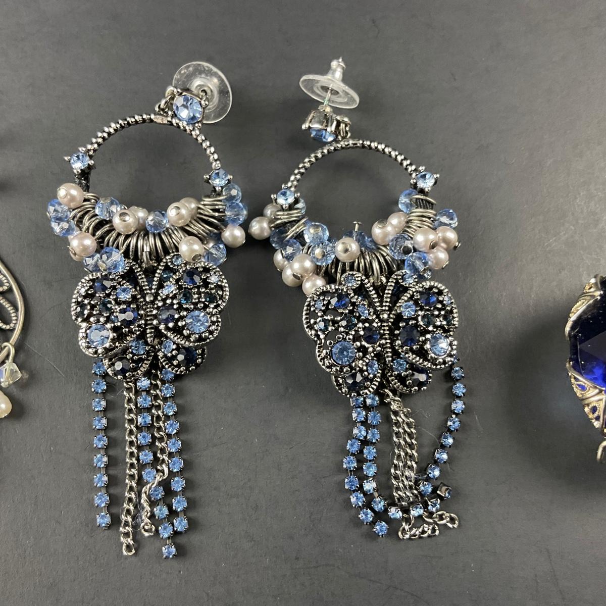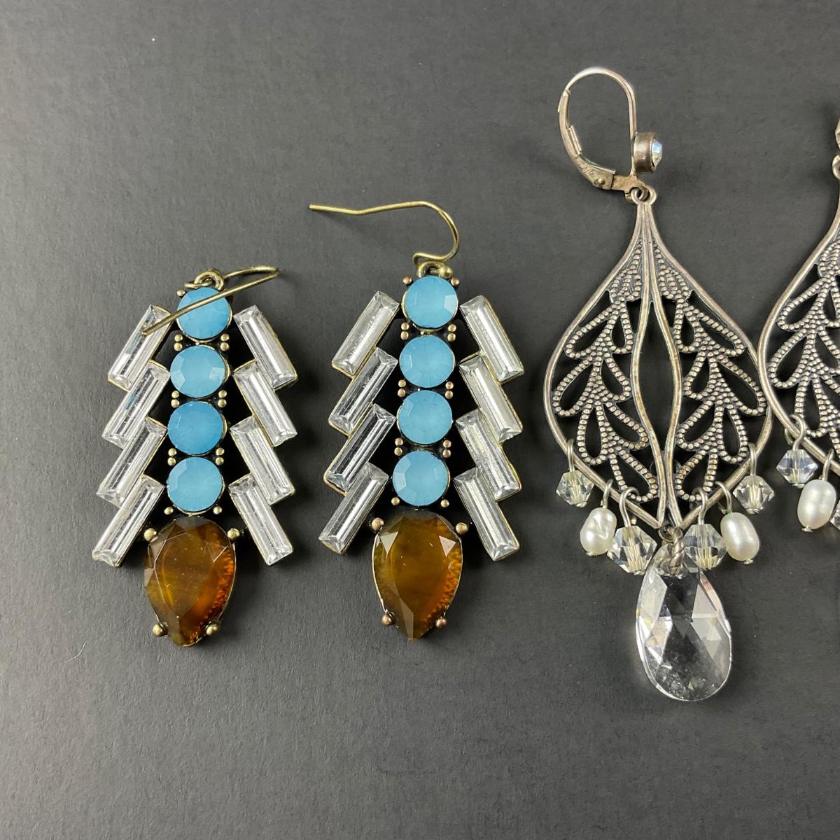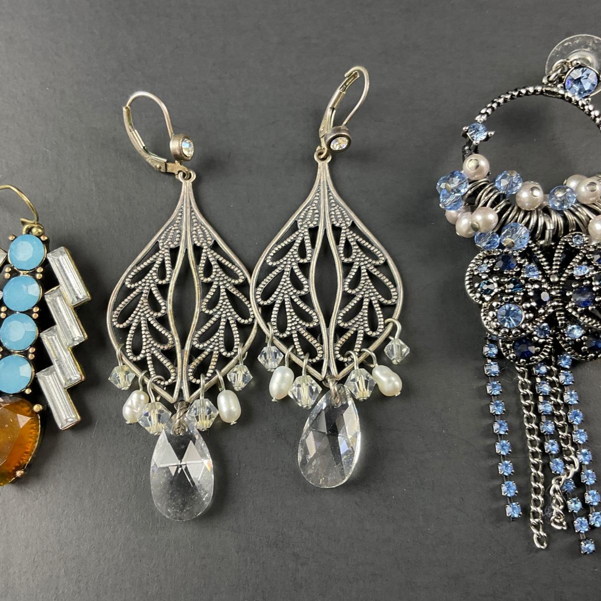 Three pairs of costume jewelry earrings and one miscellaneous pendant. Please see photos for details and condition. Any condition statement is given as a courtesy to a client, is an opinion, and should not be treated as a statement of fact. Reference to condition written, oral or within a condition report shall not be regarded as a full account of condition and may not include all defects, alterations, or restorations. Absence of a condition report does not imply a lot is flawless or lacking imperfections or damage. Katherine’s Auction & Appraisal Service shall have no responsibility for any error or omission. Returns shall not be accepted on the basis of condition. ::: Shipping is available on this lot. If you require shipping you must let us know at the close of the auction. We will coordinate with you after the item has been won. Shipping fees will include insurance up to or exceeding the value of all items being mailed. If you have any questions regarding this lot please contact the auctioneer either via this website, by direct email or by phone. PICK UP TIMES and other important information can be found in the TERMS and DESCRIPTION of the auction. Please take a look for pertinent information. Thanks!