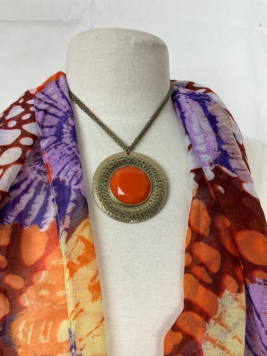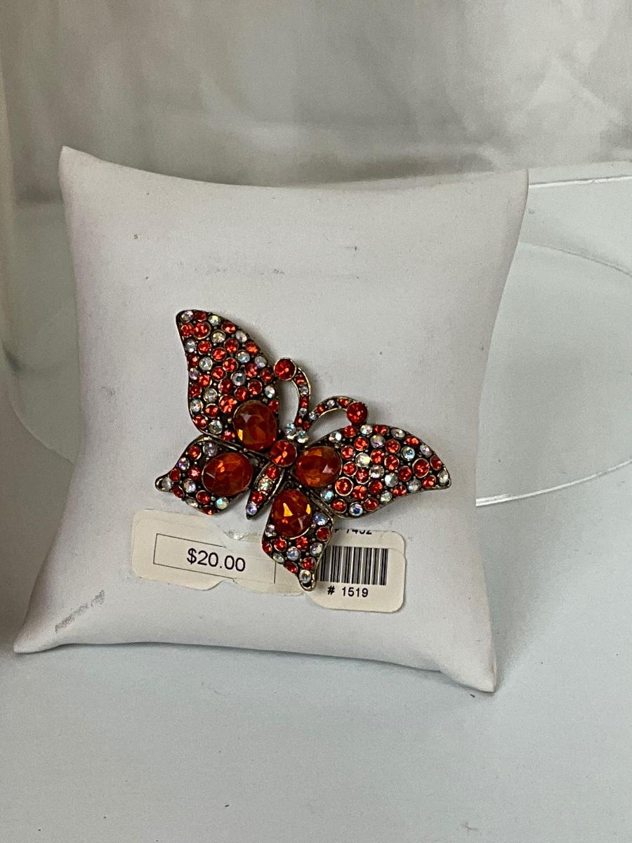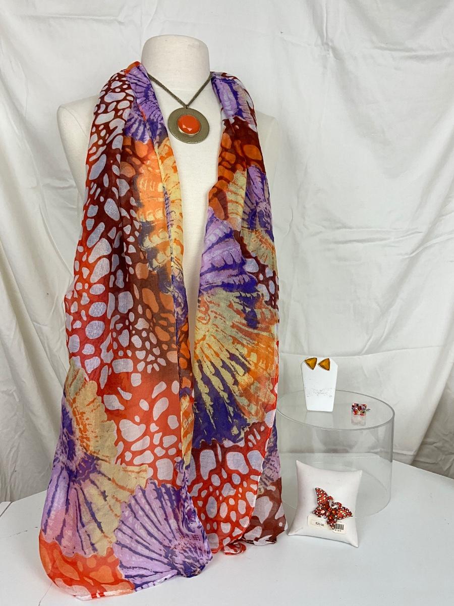 228 Monarch Butterfly Shawl/Wrap with Rhinestone Butterfly Brooch/ Earrings/ Orange Necklace / Ring