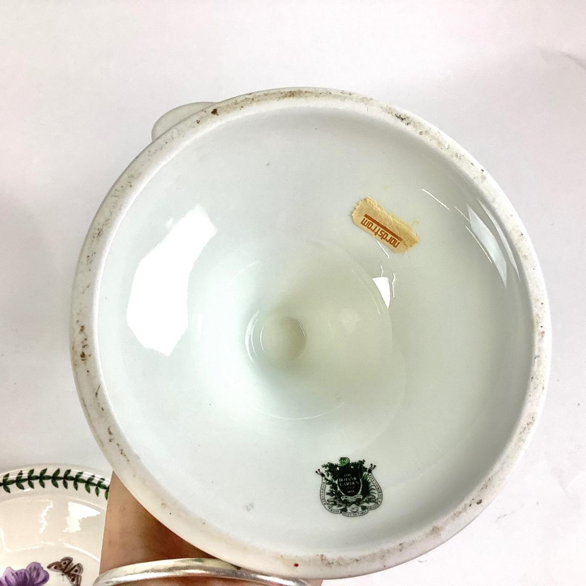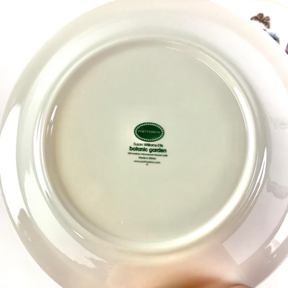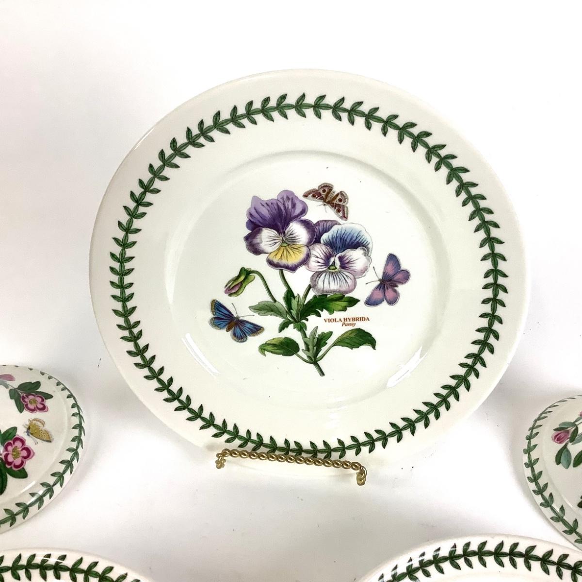 Lot with two rare "Botanic Garden" Portmeirion ceramic candle holders with vintage backstamp measuring 9"H, 5"Dia. Two 8.5"Dia. bowls and one 9.5" Dia. lunch plate with newer backstamps.