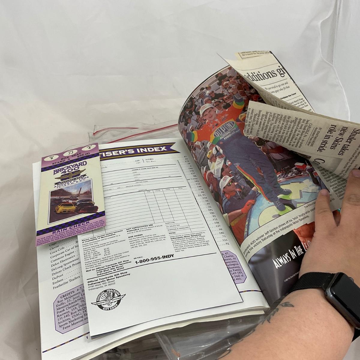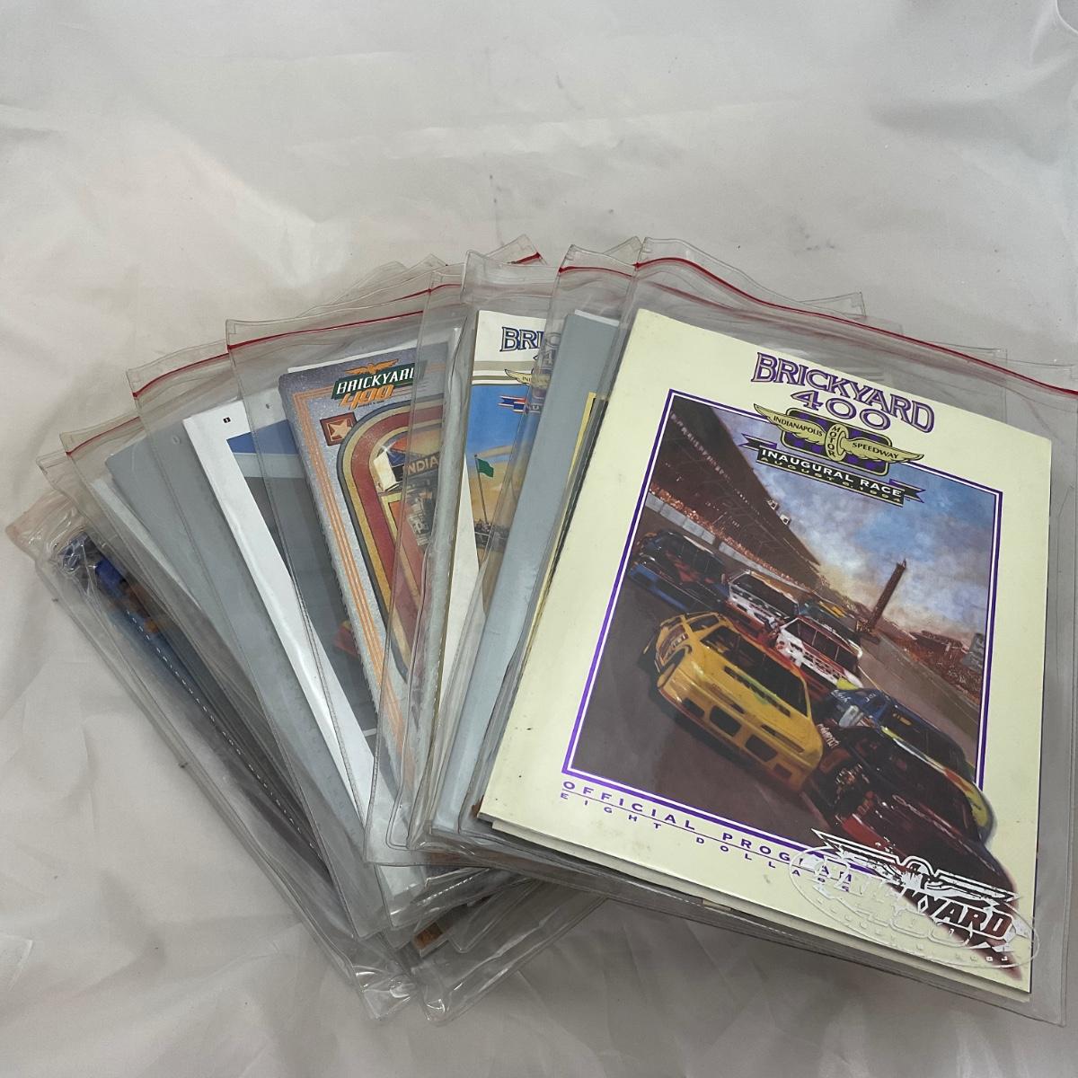 Brickyard 400 run of programs with Original event tickets stapled into the back. Please see photos for details and condition. ::: Shipping is available on this lot. If you require shipping you must let us know at the close of the auction. We will coordinate with you after the item has been won. Shipping fees will include insurance up to or exceeding the value of all items being mailed. If you have any questions regarding this lot please contact the auctioneer either via this website, by direct email or by phone. PICK UP TIMES and other important information can be found in the TERMS and DESCRIPTION of the auction. Please take a look for pertinent information. Thanks!