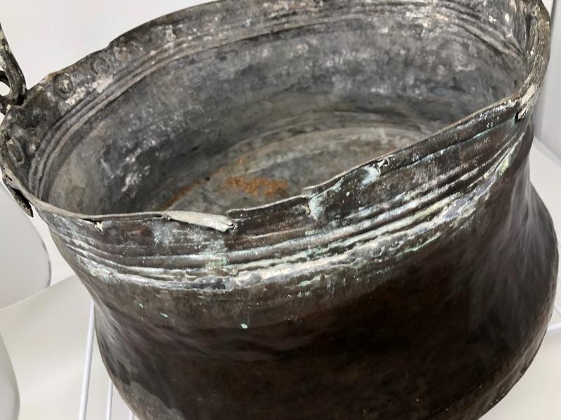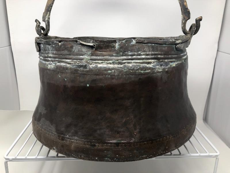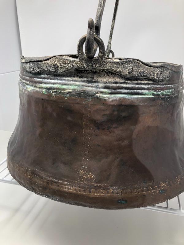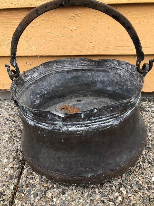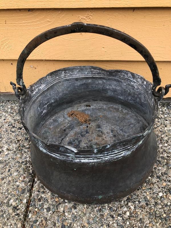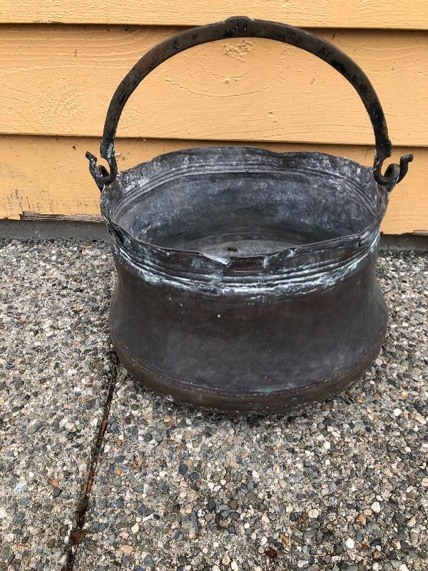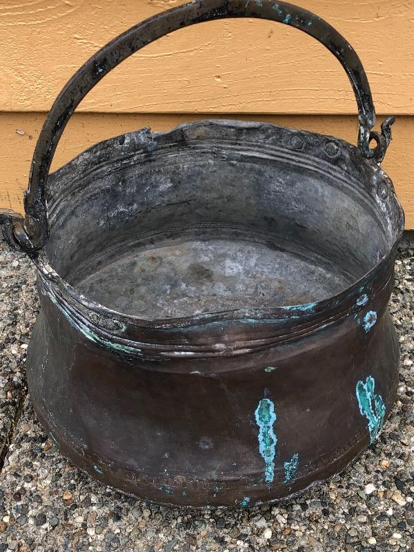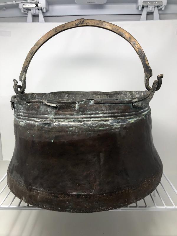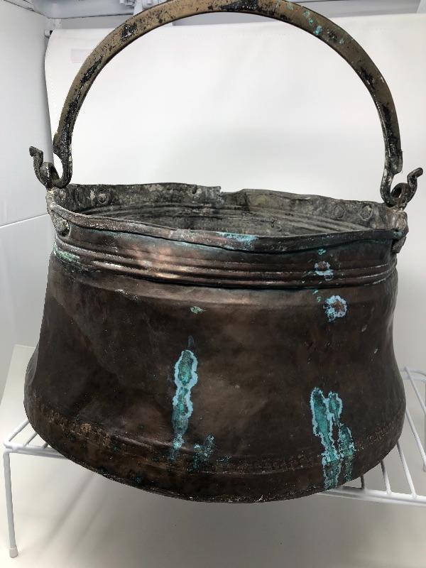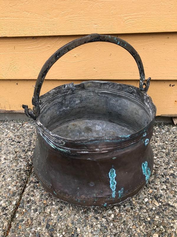 This genuine antique copper pot came from Iraq. It is 7.5 Tall x 15 D