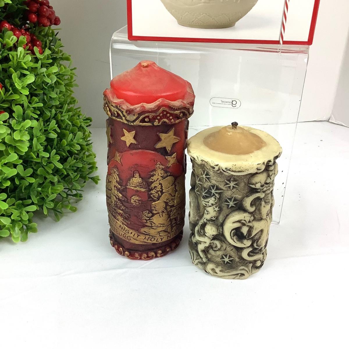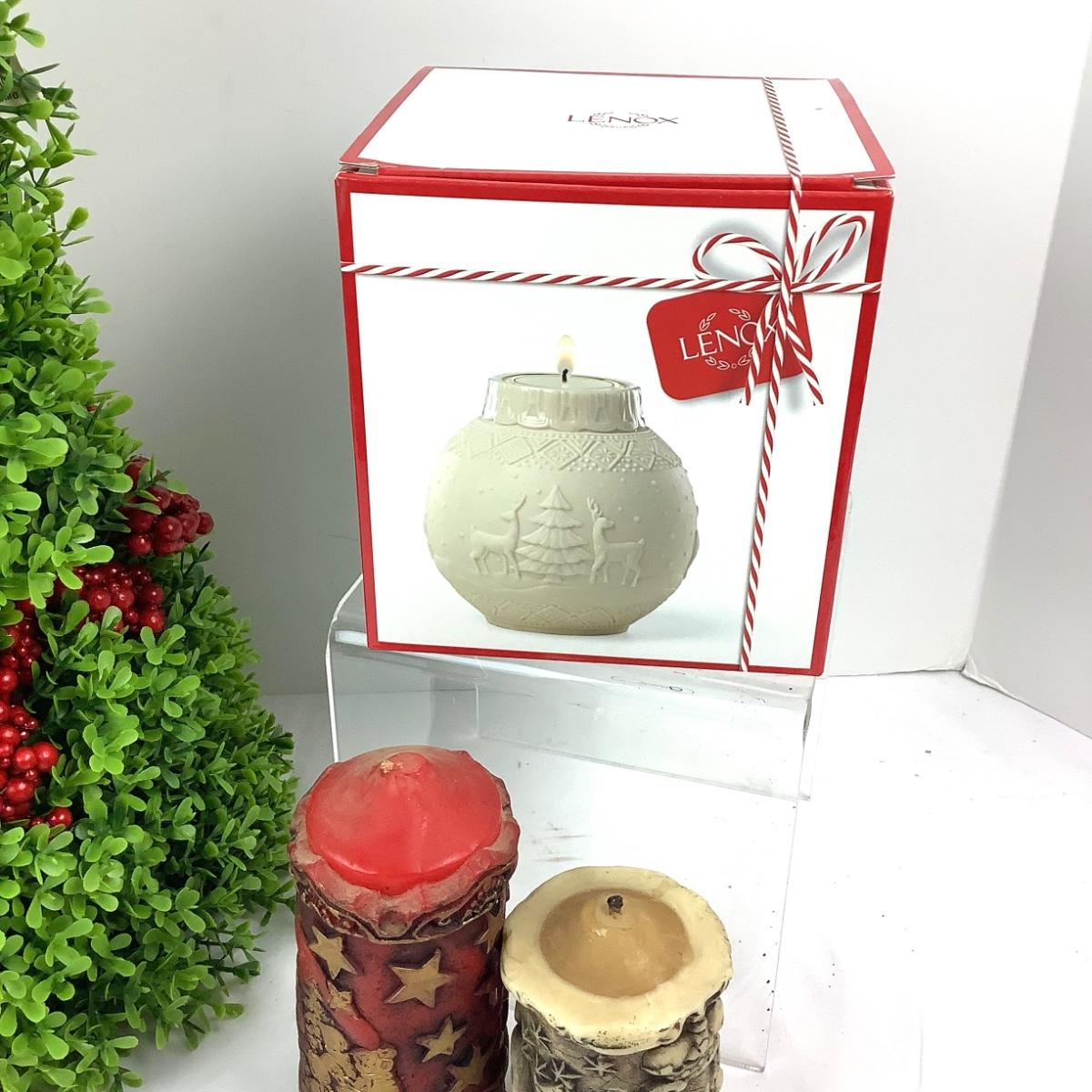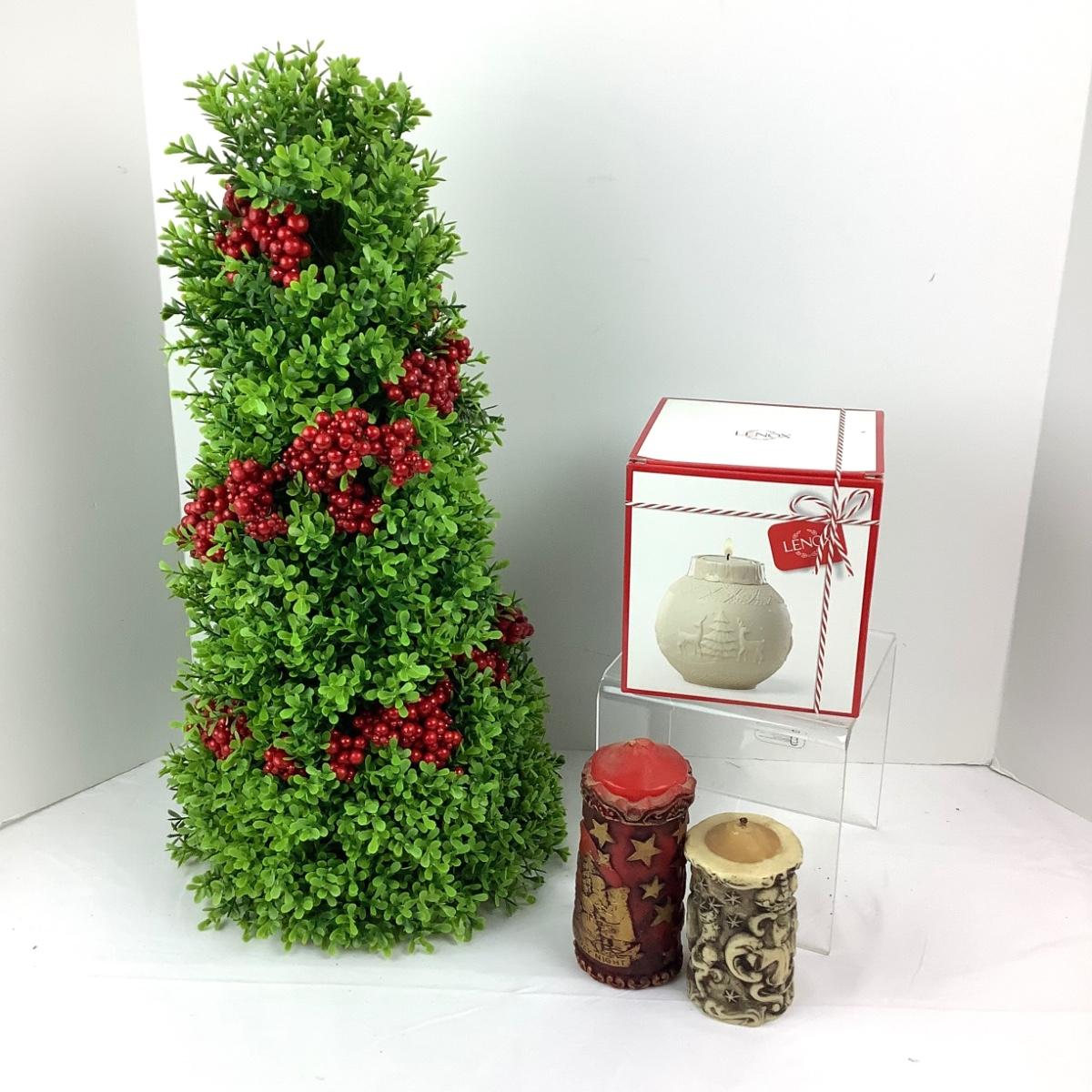 There are 2 vintage Salzburg Candles, Lenox Ornamental Glow Nordic Votive NEW, Faux Holly tree is 21" tall.