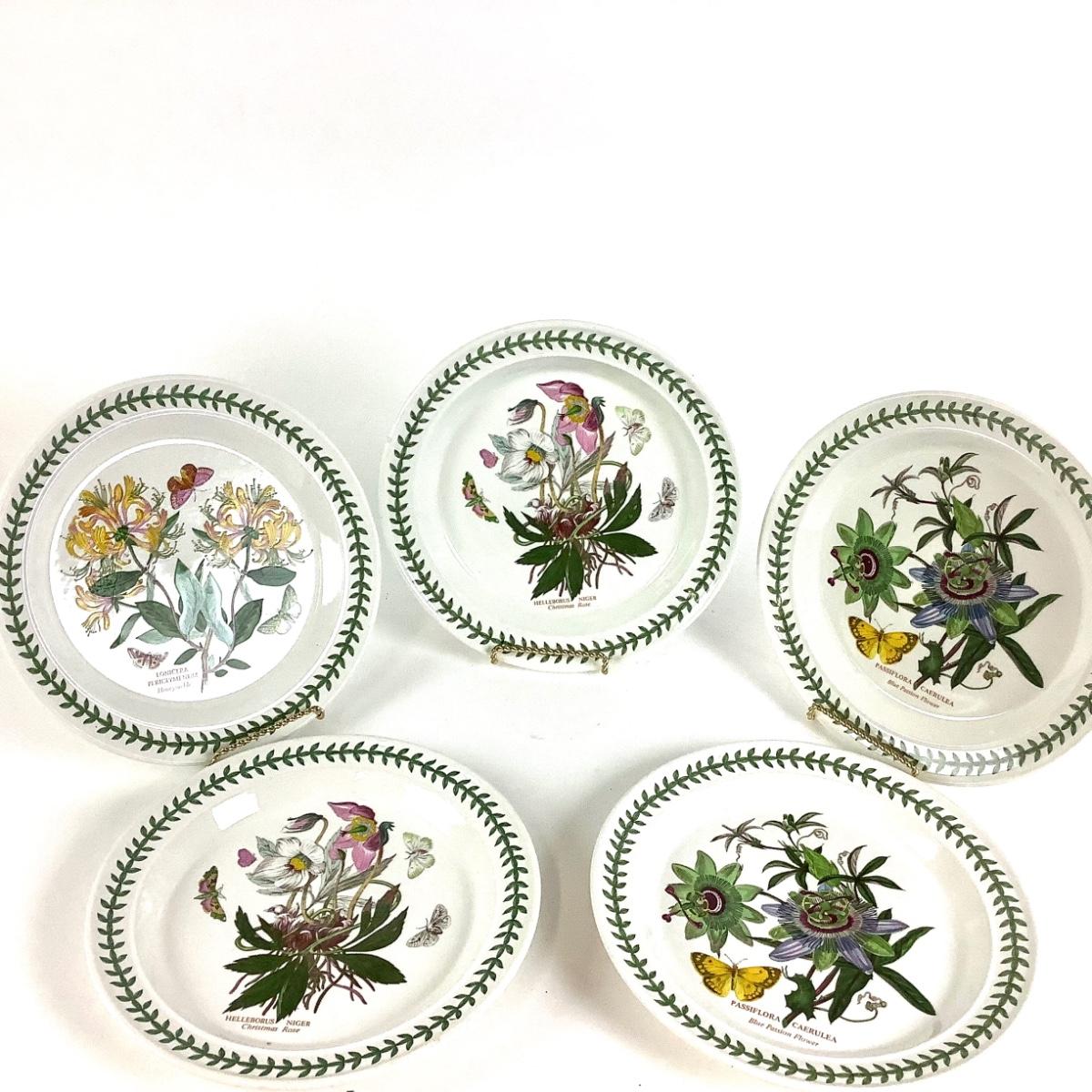 Lot of five 10.5"Dia Portmeirion "Botanic Garden" dinner plates with vintage older backstamp.
