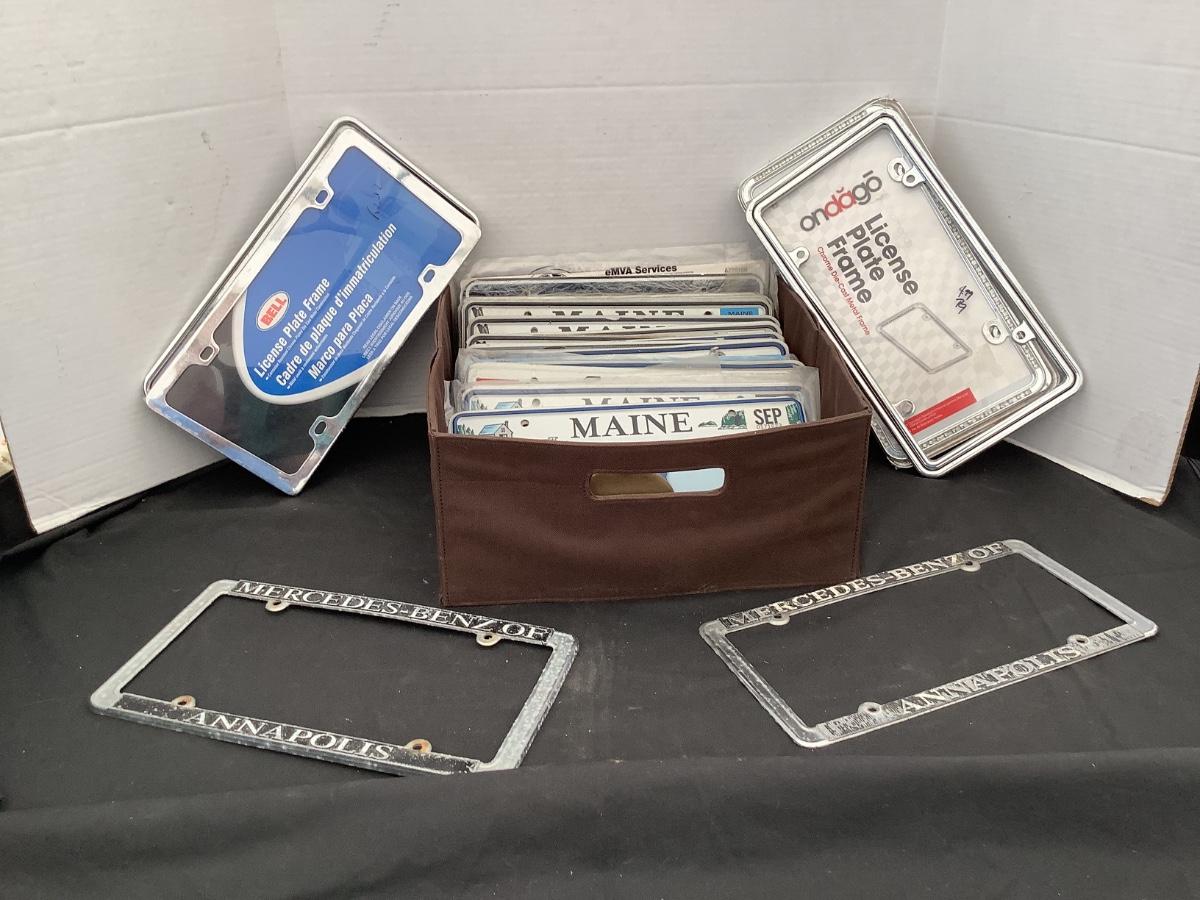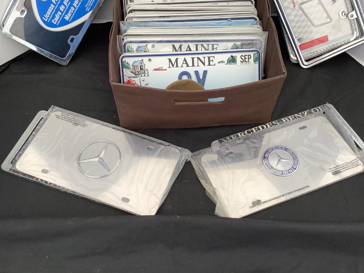 229 Lot of License Plates & License Plate Frames & Two Mercedes Plates