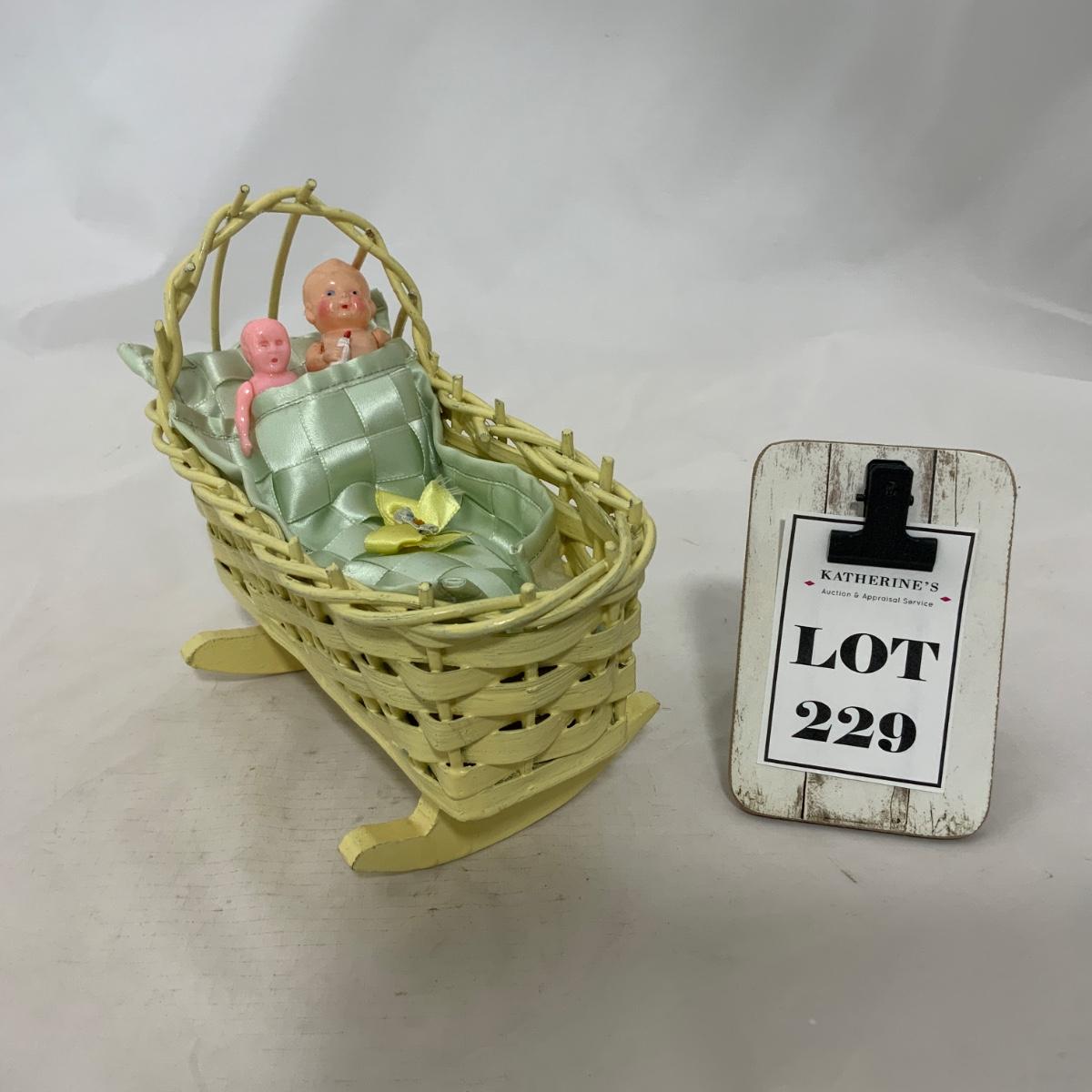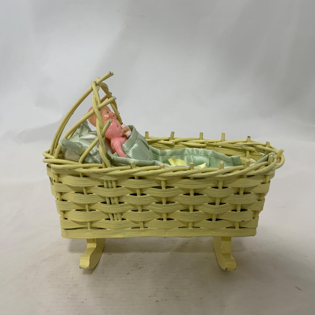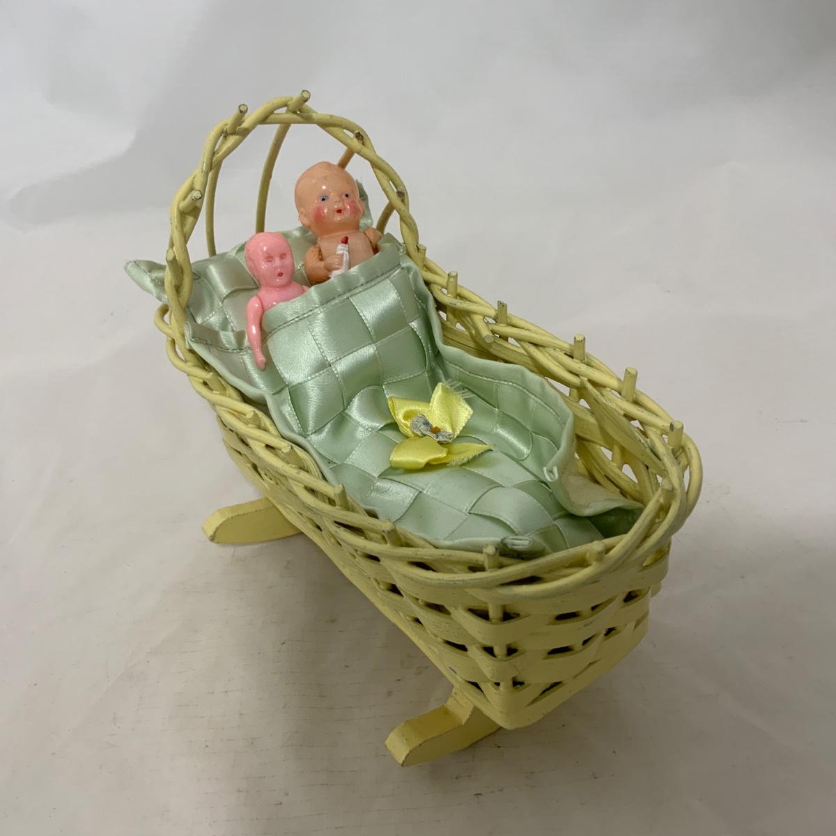 .229. Mini Wicker Doll Cradle | Celluloid Doll