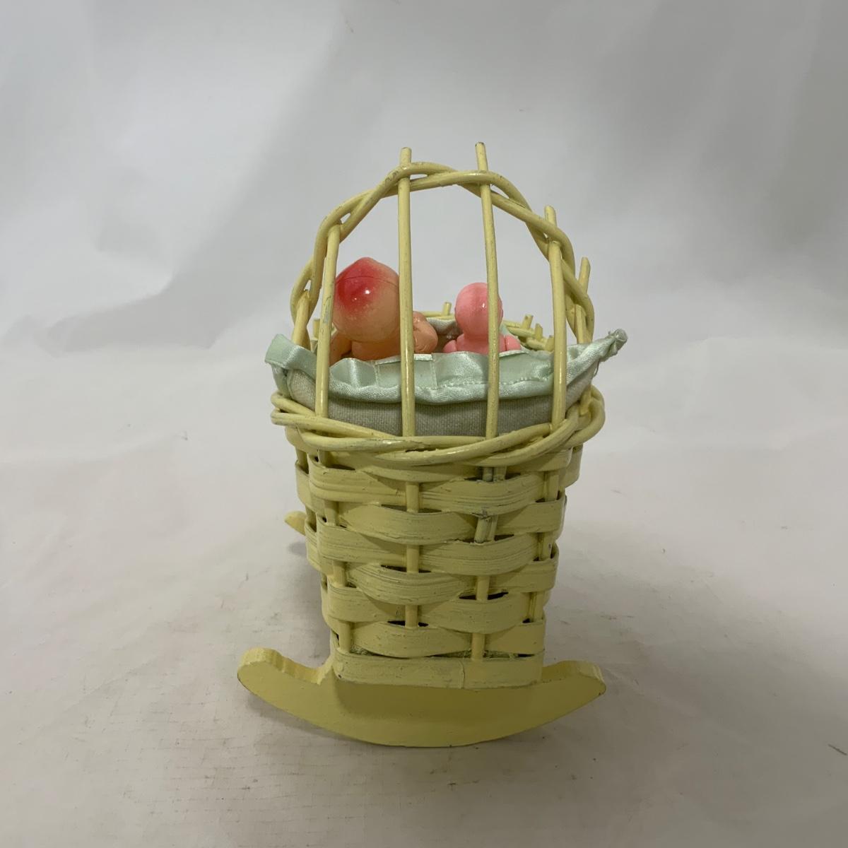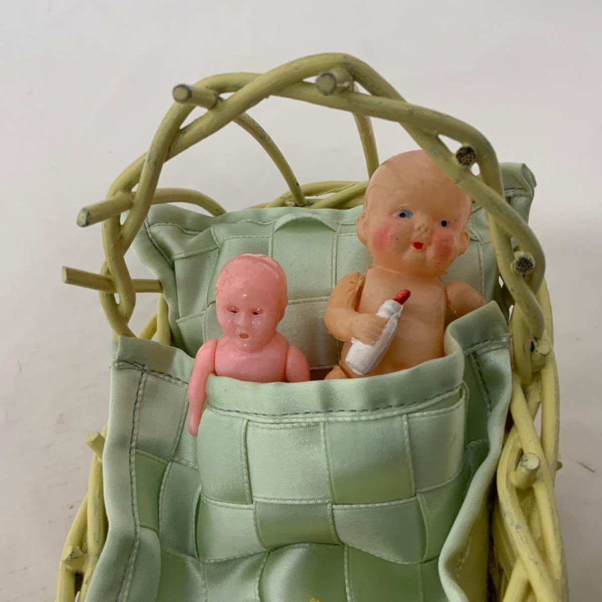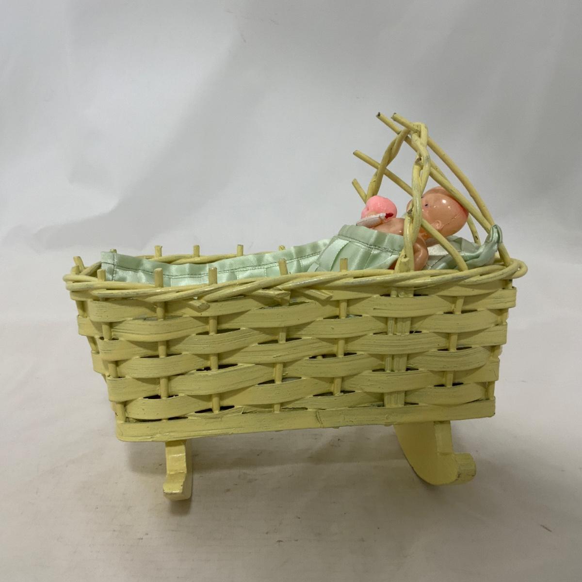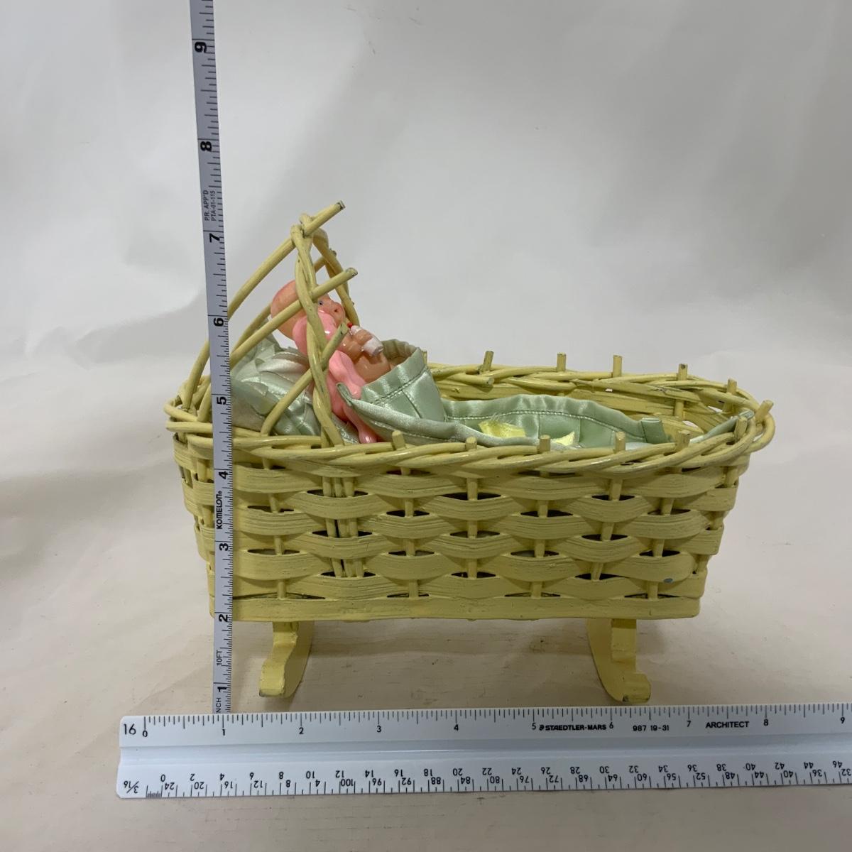 .229. Mini Wicker Doll Cradle | Celluloid Doll