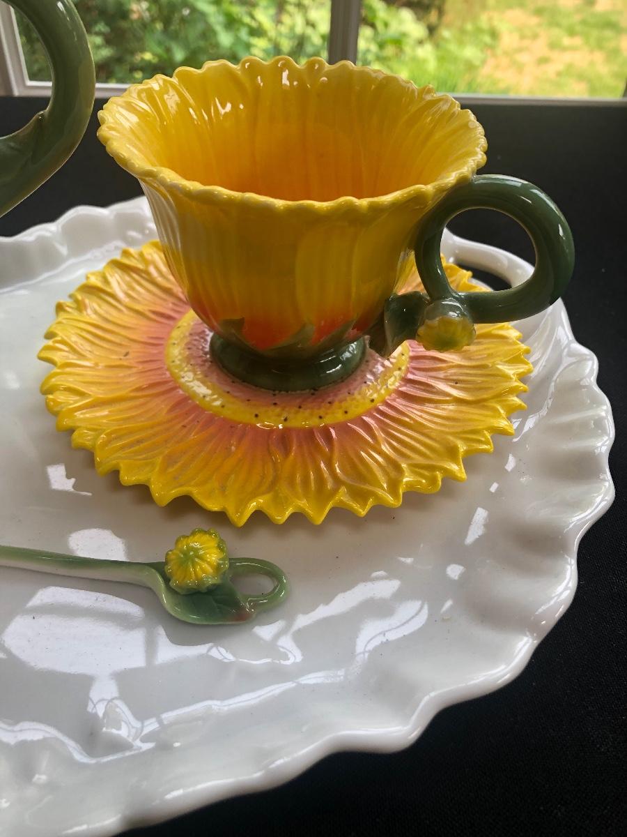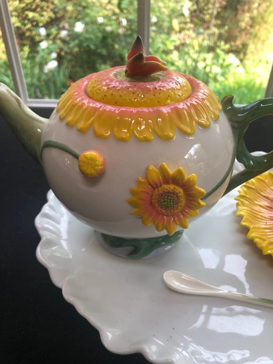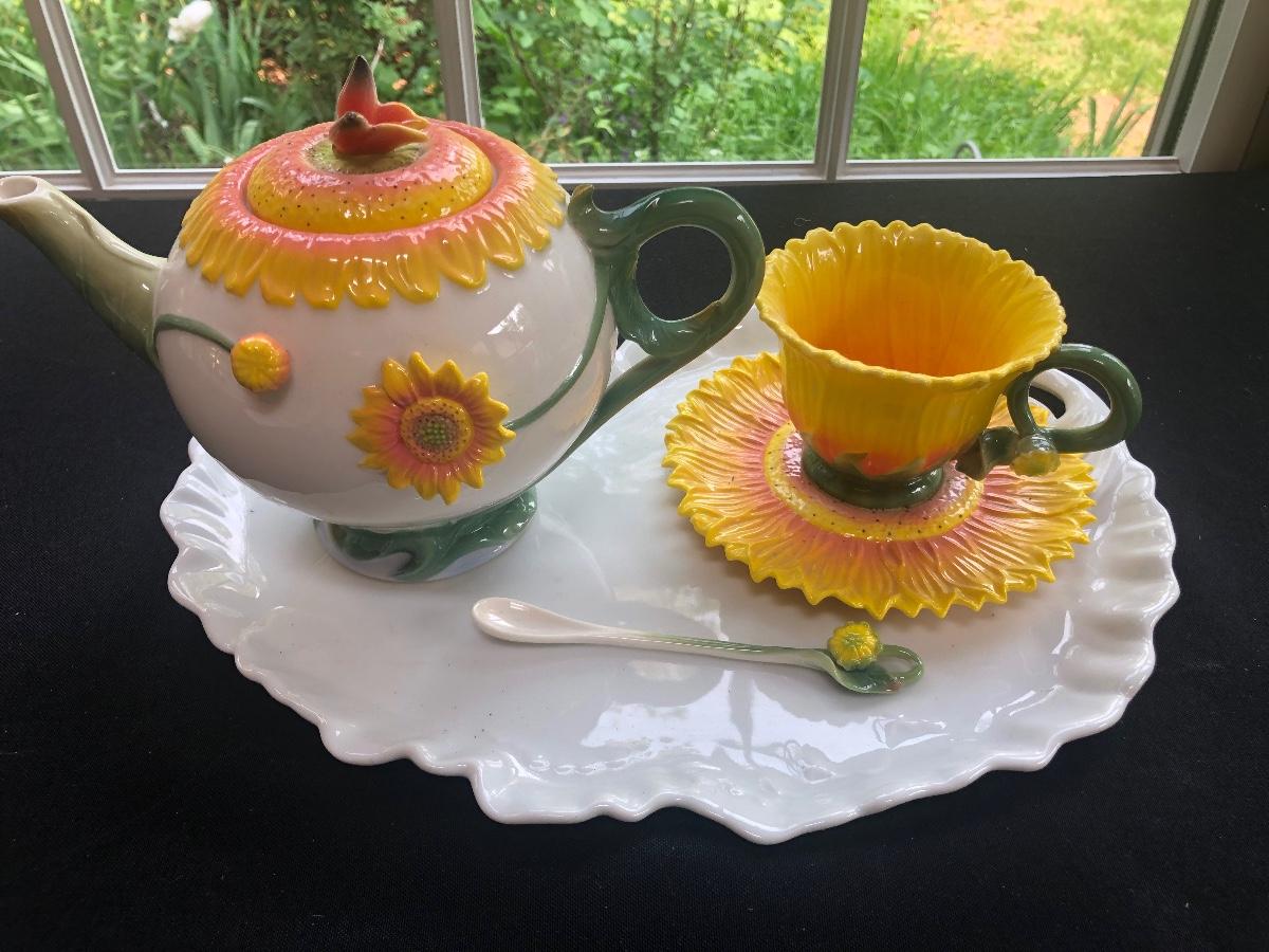 #229 Sunflower tea set includes tea pot tea cup and stir stick