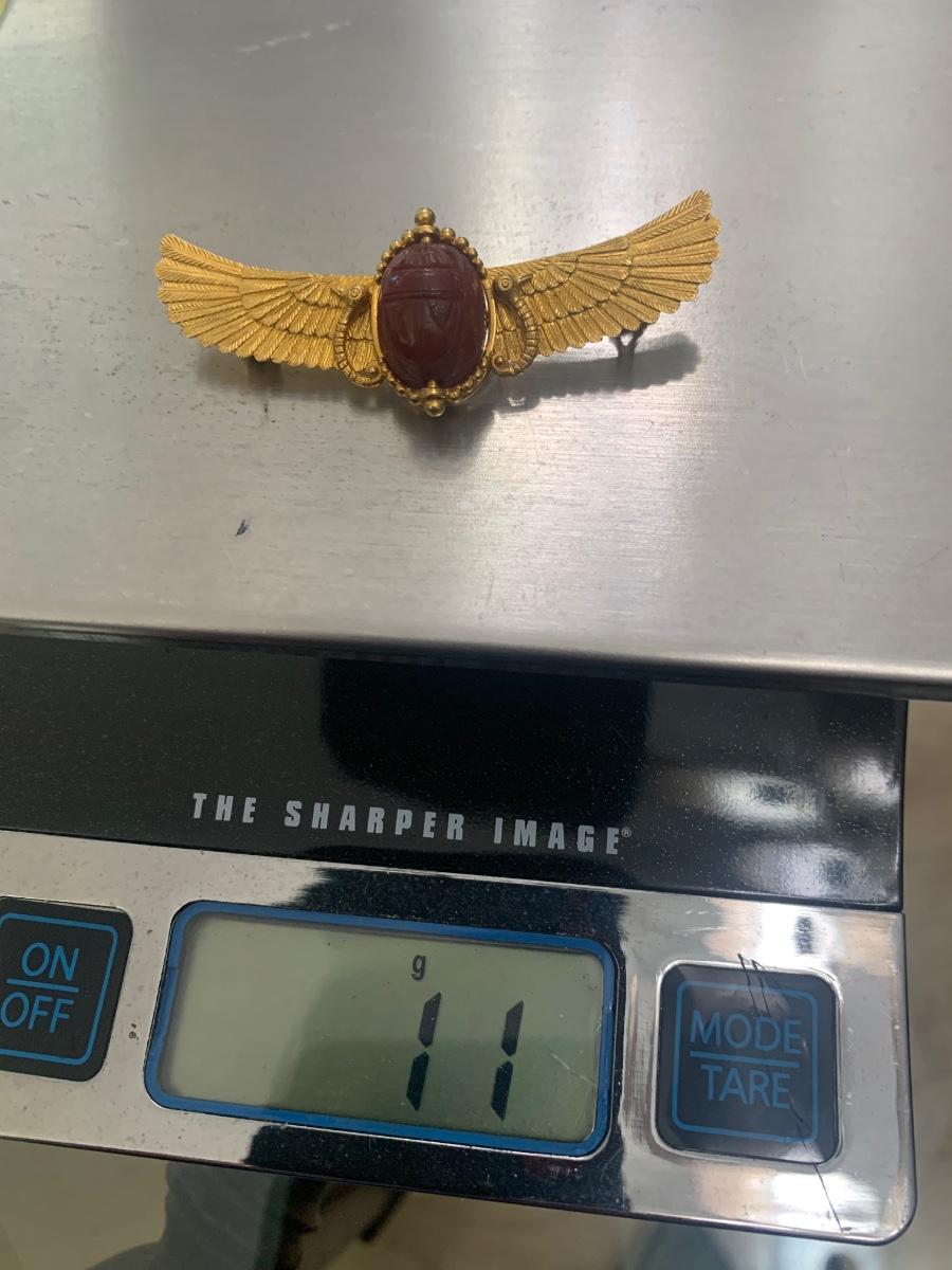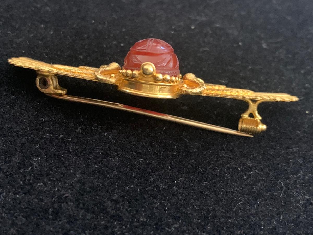Egyptian Revival Scarab 22k Gold Brooch