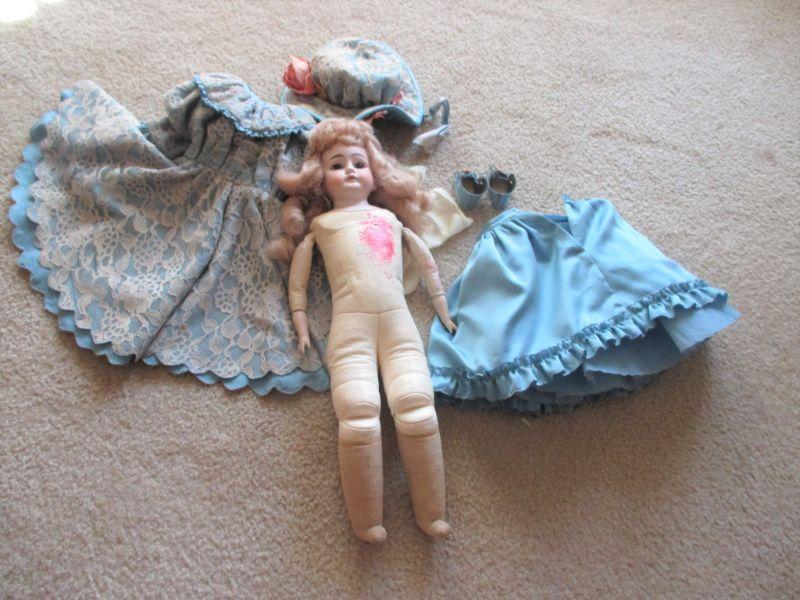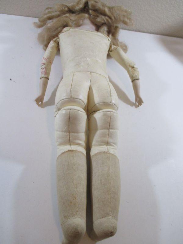 23" Antique Leather Body Doll Fixer Upper Or Repair with Horshoe 377, No Hairlines Made in Germany