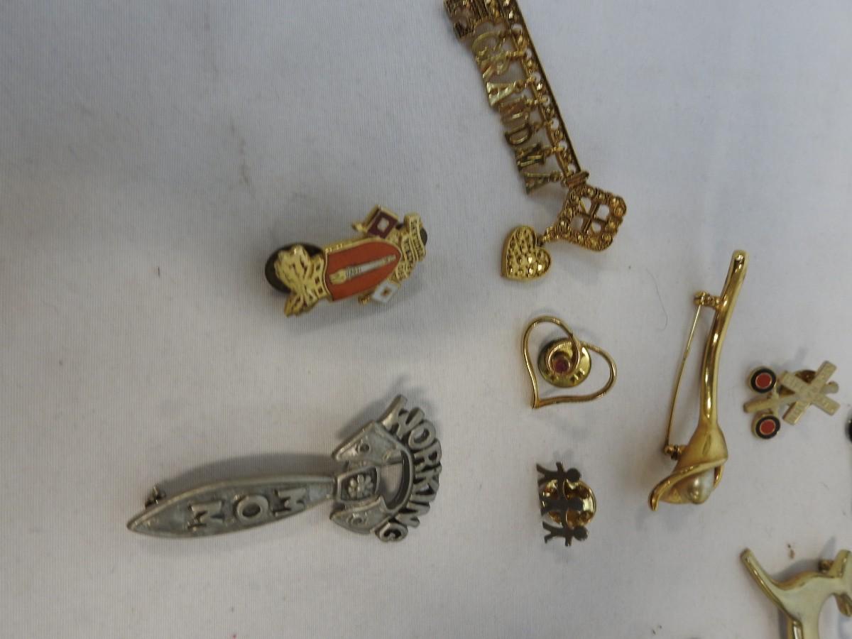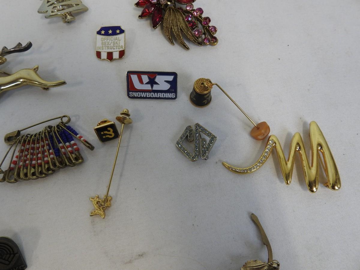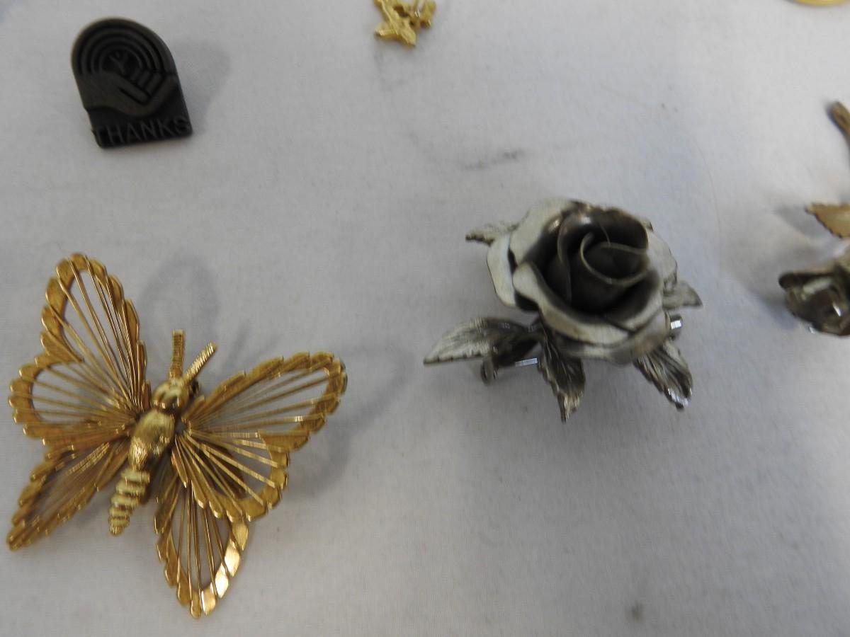 23 Costume Jewelry Brooches/Pins, Railroad Crossing, Butterfly, Christmas, Flowers, Flag, etc