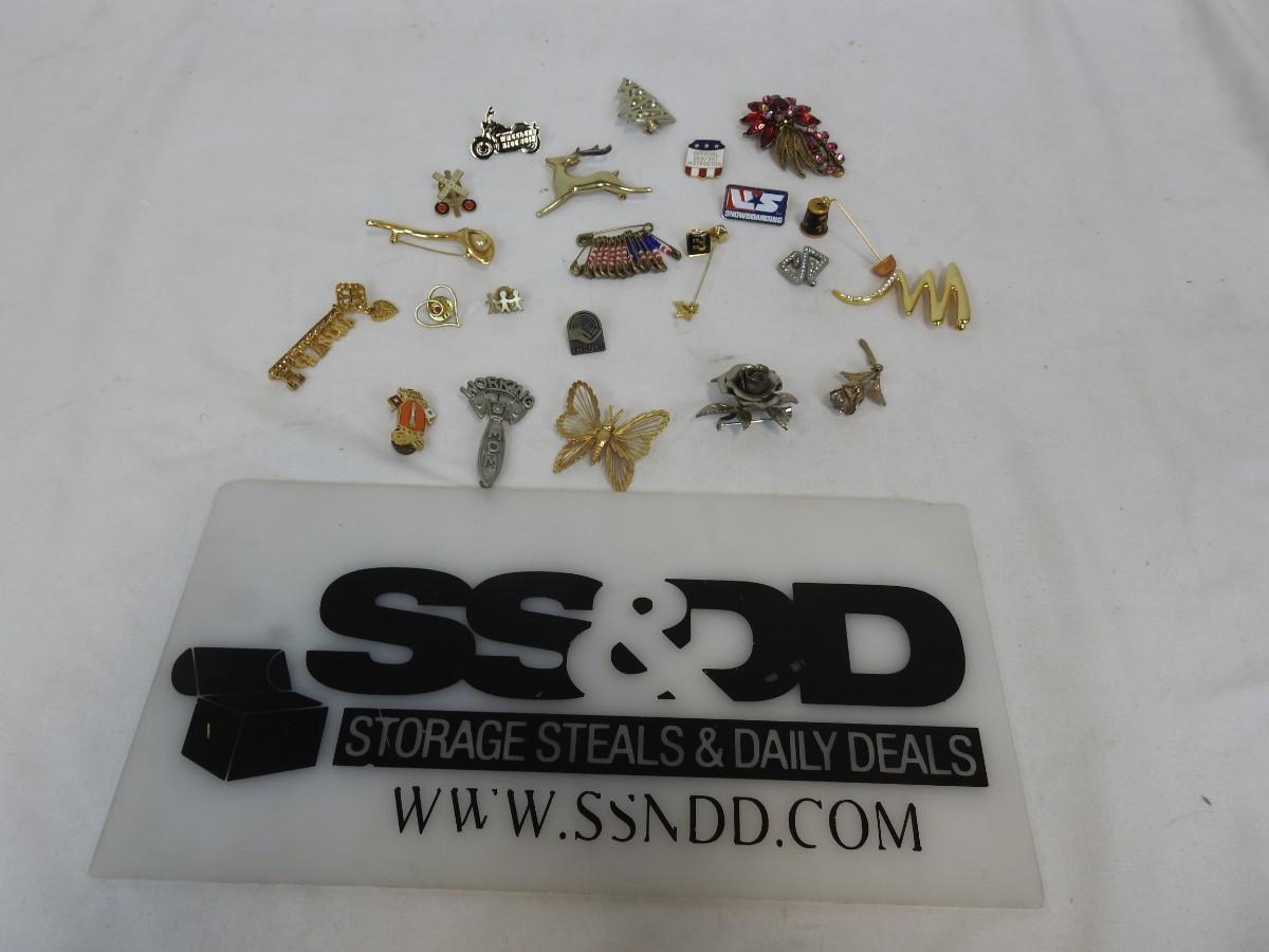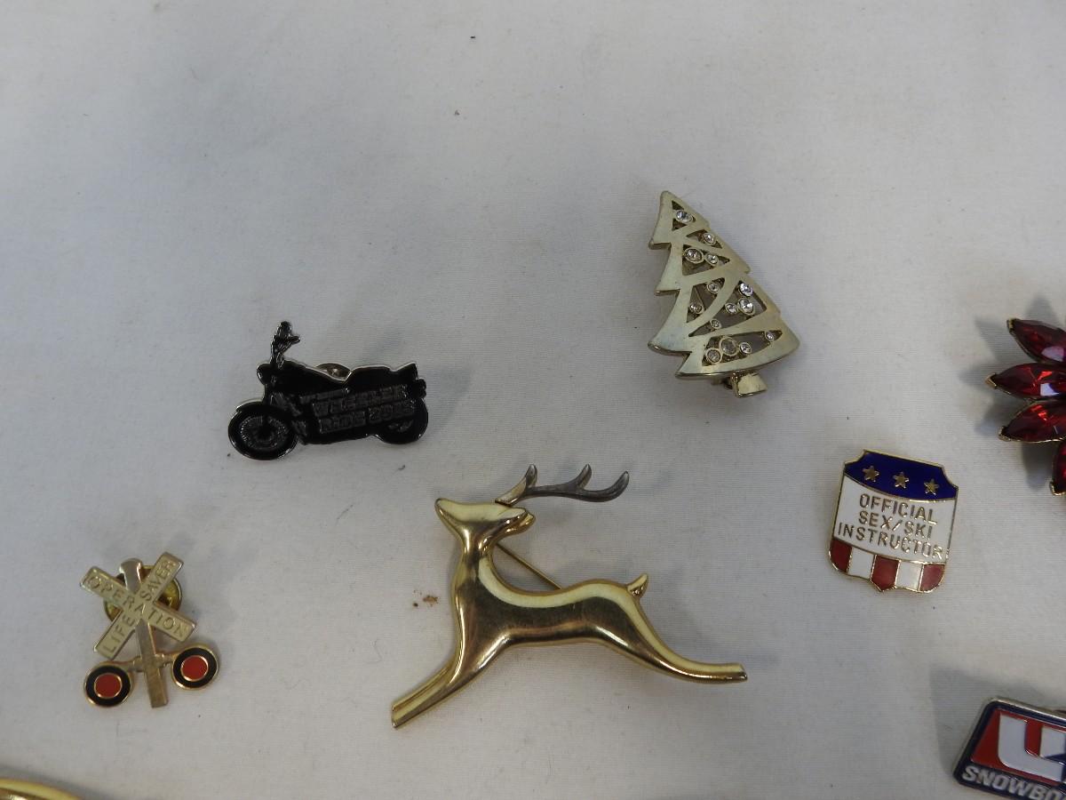 23 Costume Jewelry Brooches/Pins, Railroad Crossing, Butterfly, Christmas, etc