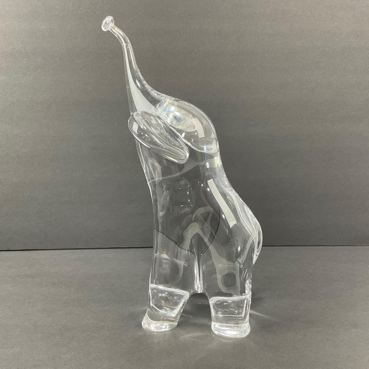 -23- DAUM | France Art Glass Heavy Elephant Figure | Signed