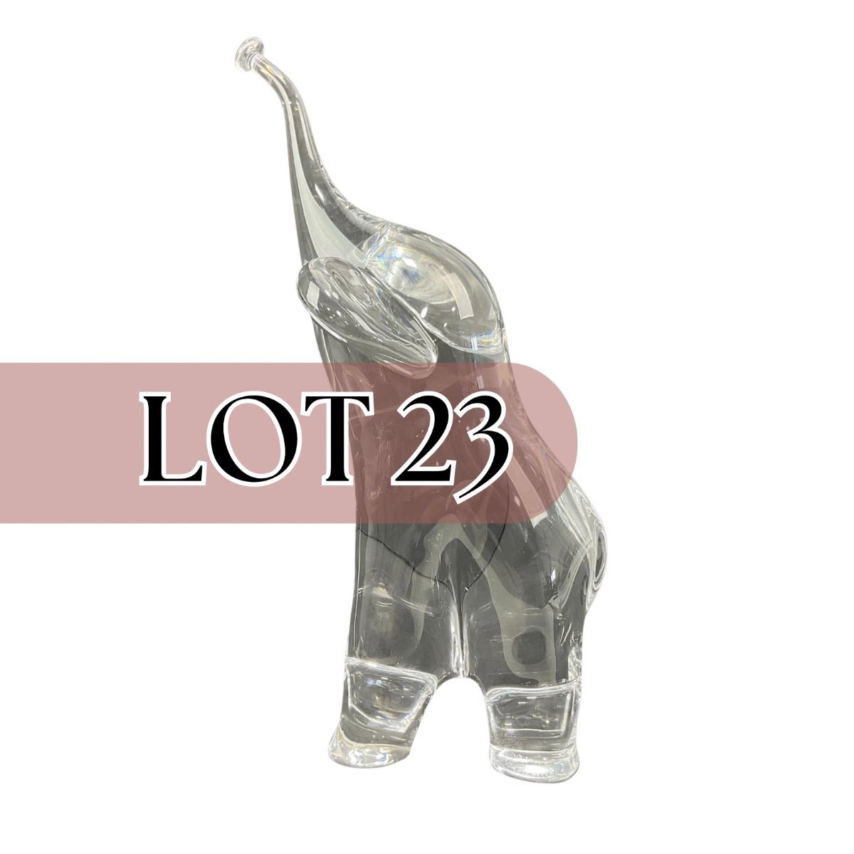One signed Daum France heavy art glass elephant figure. This piece appears to be in great shape, the perfect piece to add to any collectors shelf. Please see photos for details and condition. Any condition statement is given as a courtesy to a client, is an opinion, and should not be treated as a statement of fact. Reference to condition written, oral or within a condition report shall not be regarded as a full account of condition and may not include all defects, alterations, or restorations. Absence of a condition report does not imply a lot is flawless or lacking imperfections or damage. Katherine’s Auction & Appraisal Service shall have no responsibility for any error or omission. Returns shall not be accepted on the basis of condition. ::: Shipping is available on this lot. If you require shipping you must let us know at the close of the auction. We will coordinate with you after the item has been won. Shipping fees will include insurance up to or exceeding the value of all items being mailed. If you have any questions regarding this lot please contact the auctioneer either via this website, by direct email or by phone. PICK UP TIMES and other important information can be found in the TERMS and DESCRIPTION of the auction. Please take a look for pertinent information. Thanks!