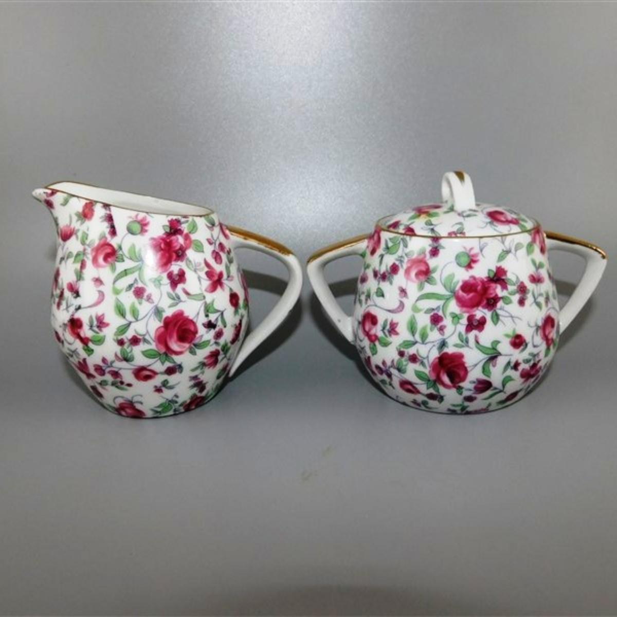 23 Made in Japan Pink Floral AND Gold Cream and Sugar 4 x3 1/2