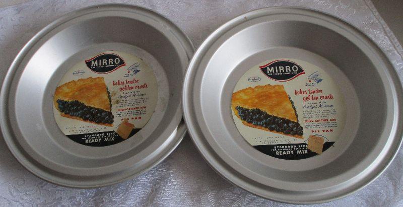 Two new pie plates with label still on them, they have a juice catcher rim, made of Anodized Alumunim