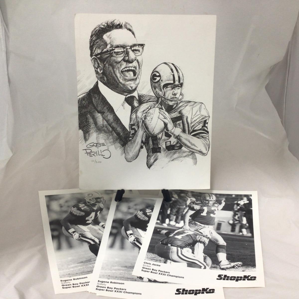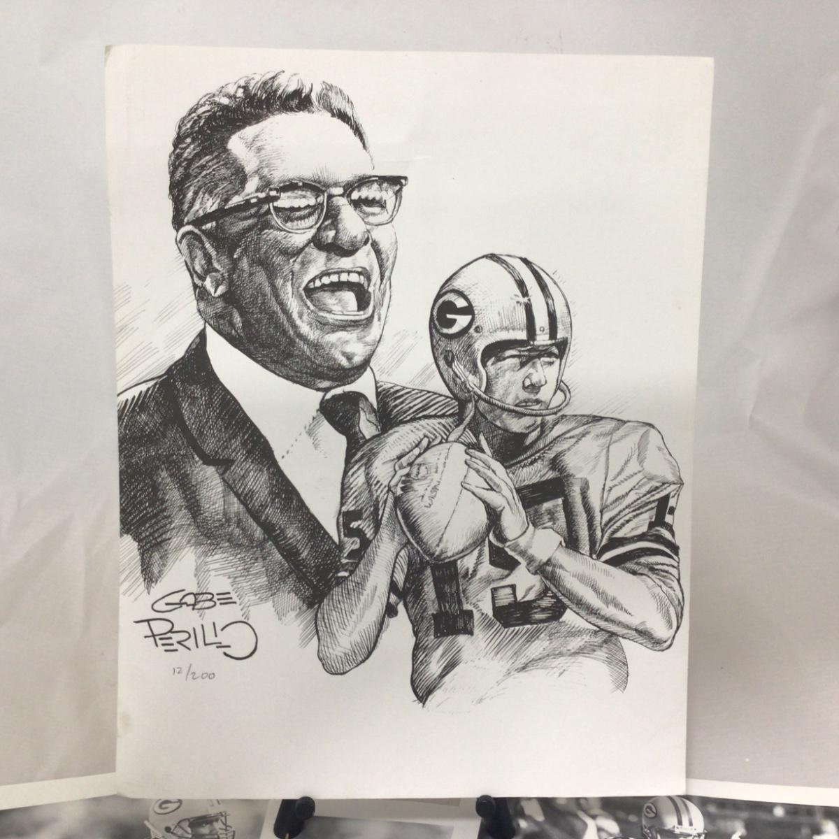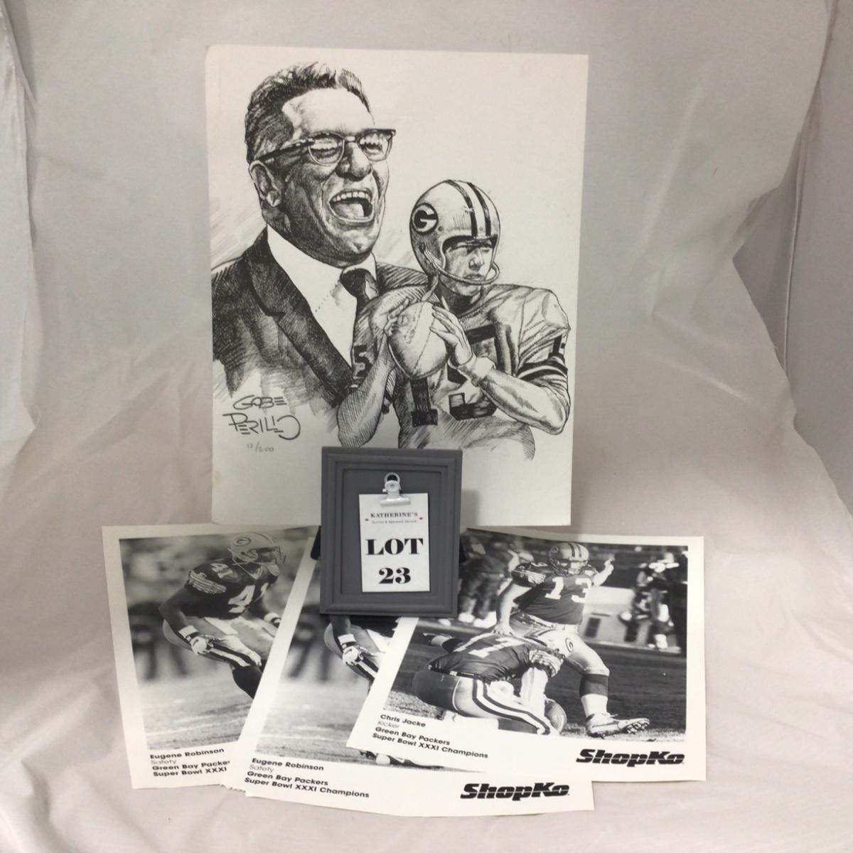Three eight by ten inch pictures and artist signed print of Lombardi and Bart Starr. Please see photos for details and condition. ::: Shipping is available on this lot. If you require shipping you must let us know at the close of the auction. We will coordinate with you after the item has been won. Shipping fees will include insurance up to or exceeding the value of all items being mailed. If you have any questions regarding this lot please contact the auctioneer either via this website, by direct email or by phone. PICK UP TIMES and other important information can be found in the TERMS and DESCRIPTION of the auction. Please take a look for pertinent information. Thanks!