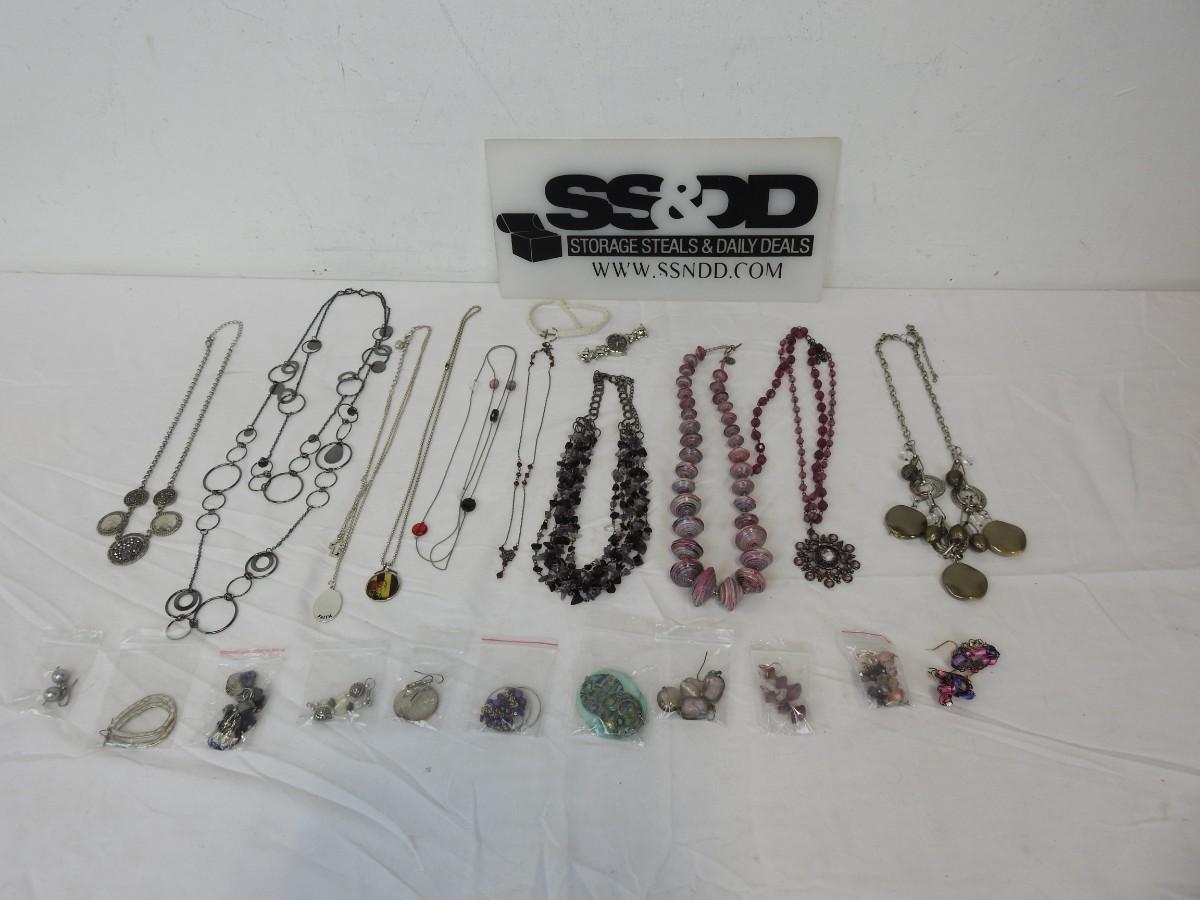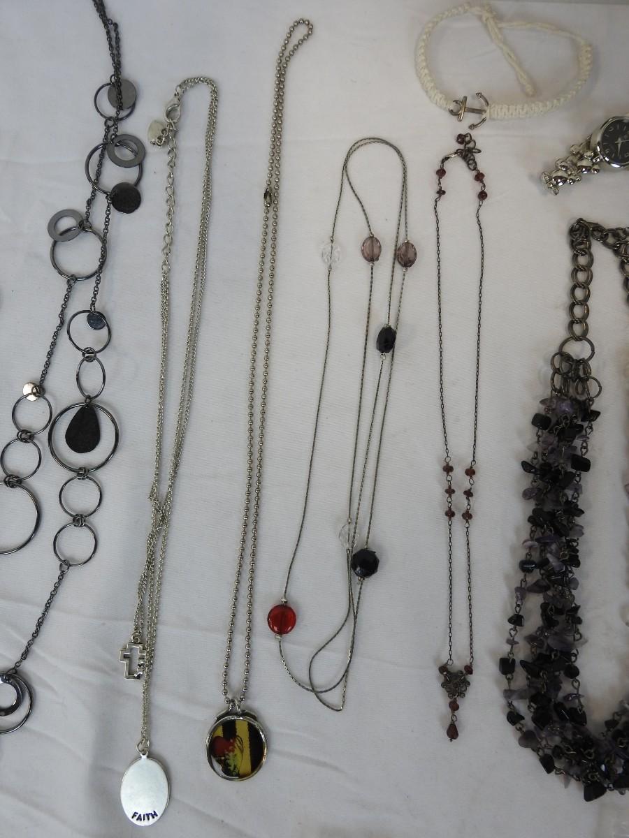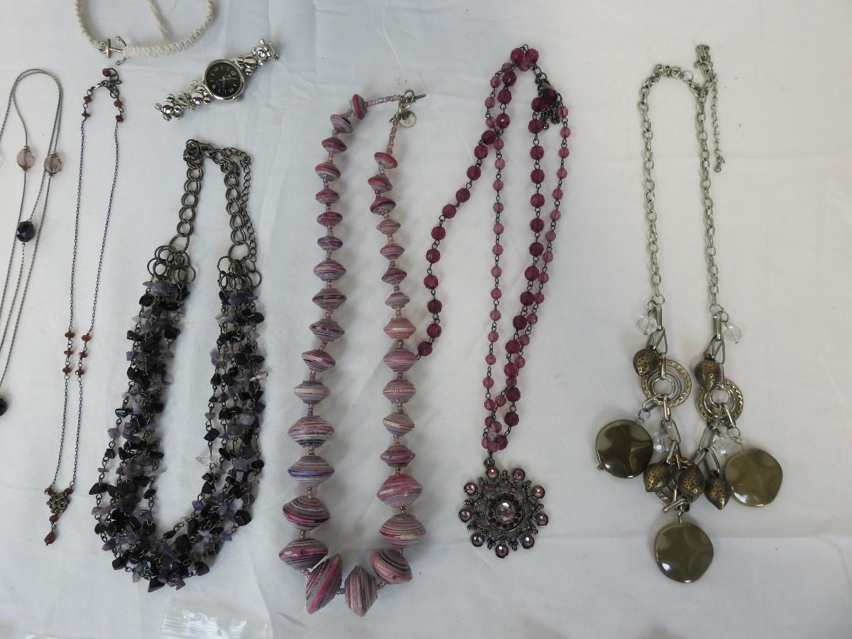 23 pc Costume Jewelry: 10 Necklaces, 11 Earrings, Watch and Bracelet