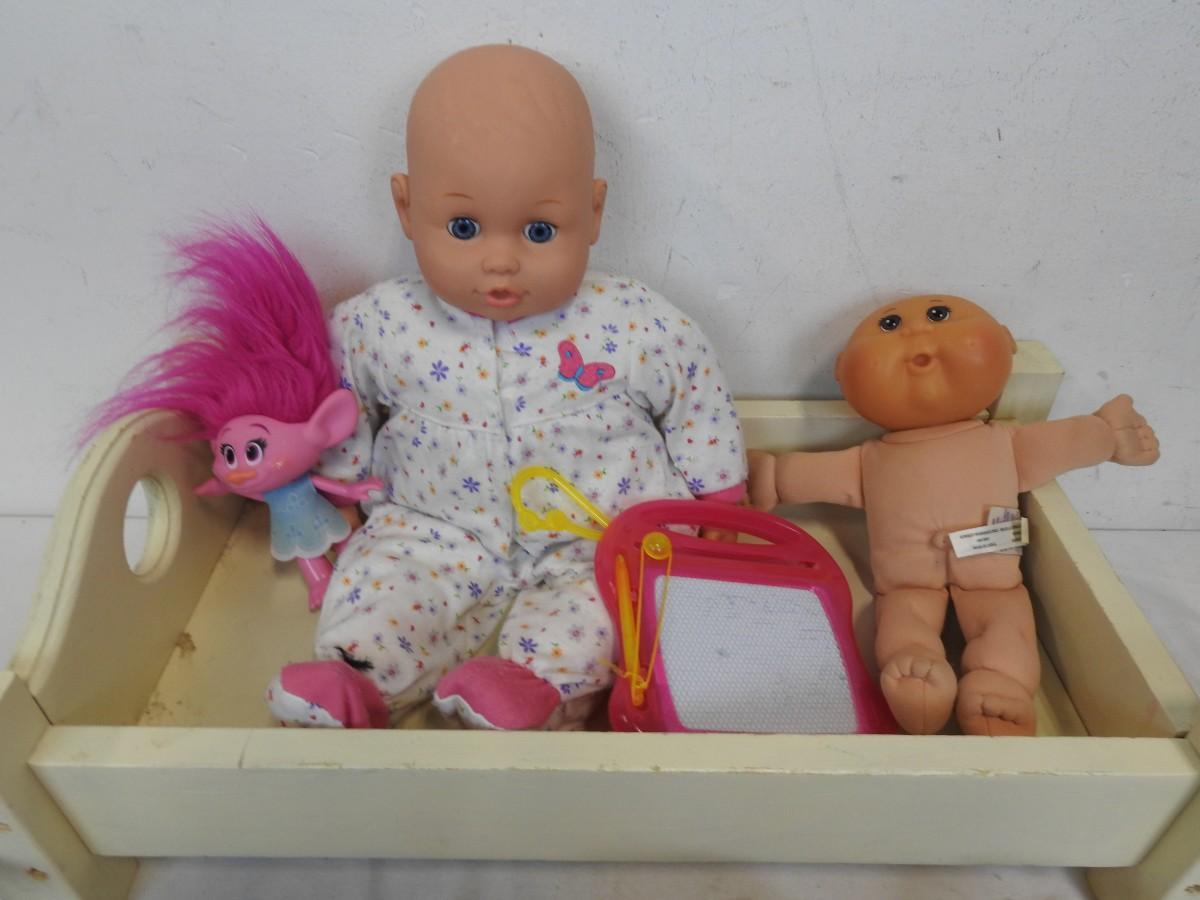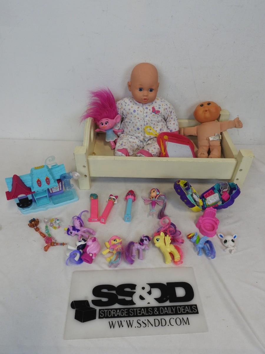 23 pc Kids Toys: Dolls, Cabbage Patch Baby, 18" Dol Bed, Pez, Ponies