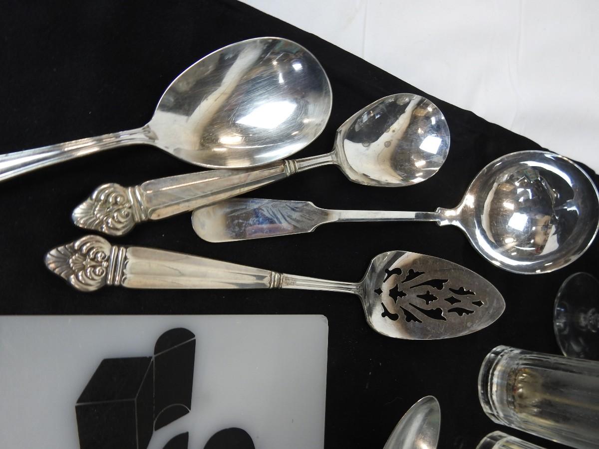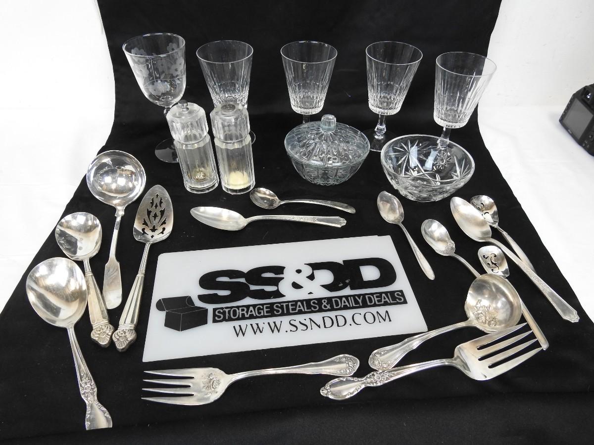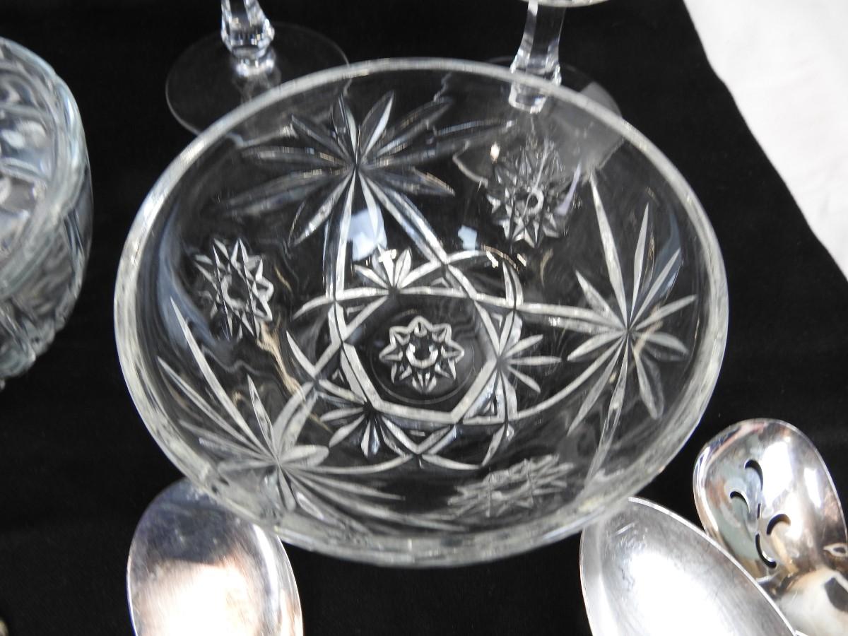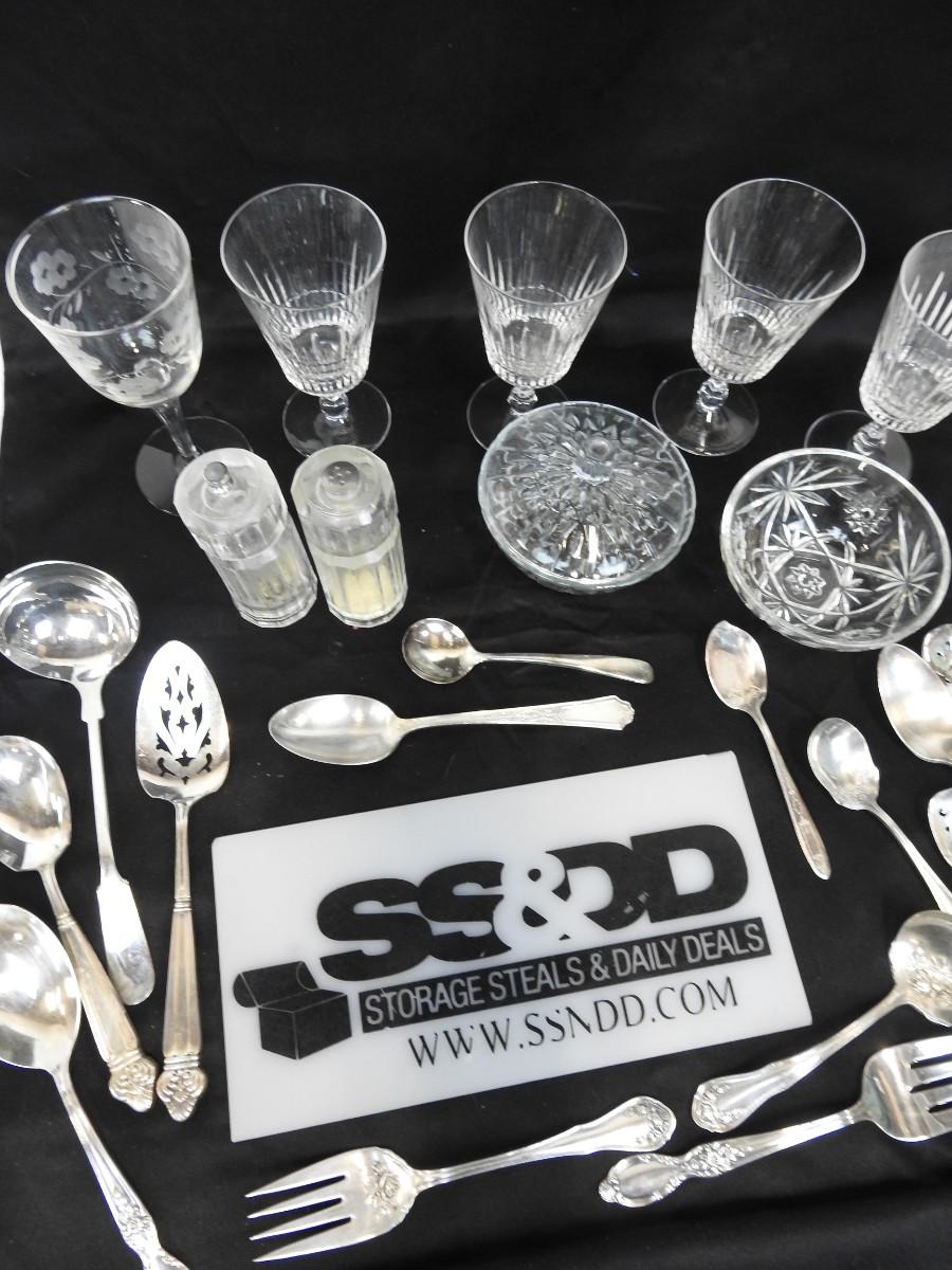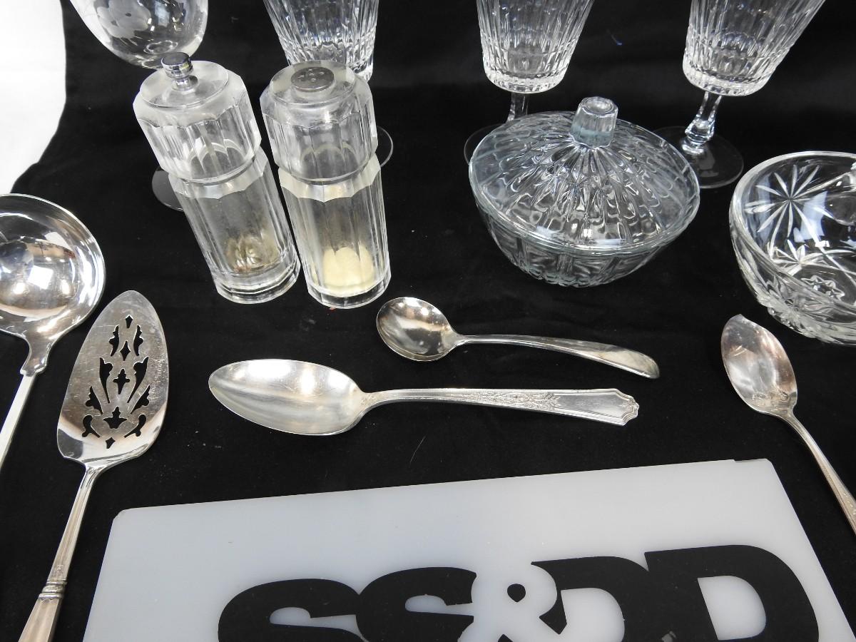 23 pc Lot:  5 Crystal Glasses,Candy Dishes, S & P Shakers, Serving Utensils.