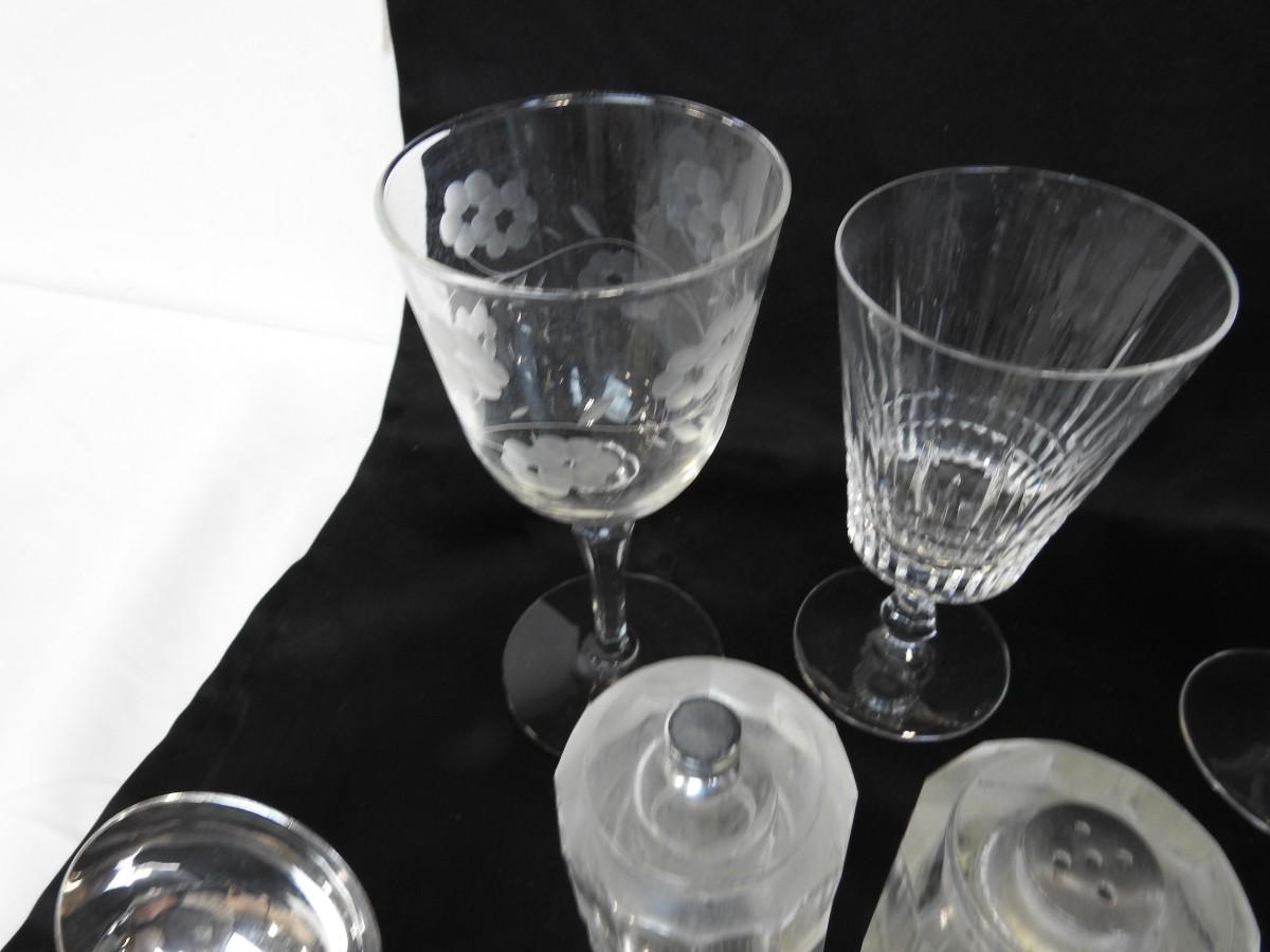 23 pc Lot: 5 Crystal Glasses,Candy Dishes, S & P Shakers, Serving Utensils.