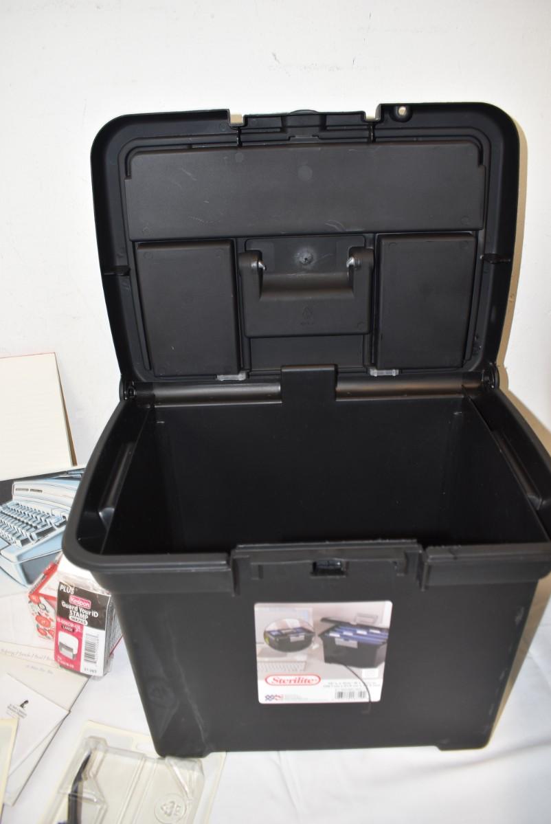 23 pc Office/School Supplies, Sterilite Bucket Front Clasp Broken