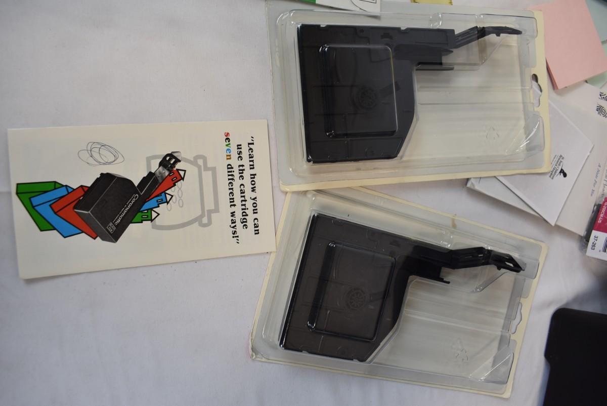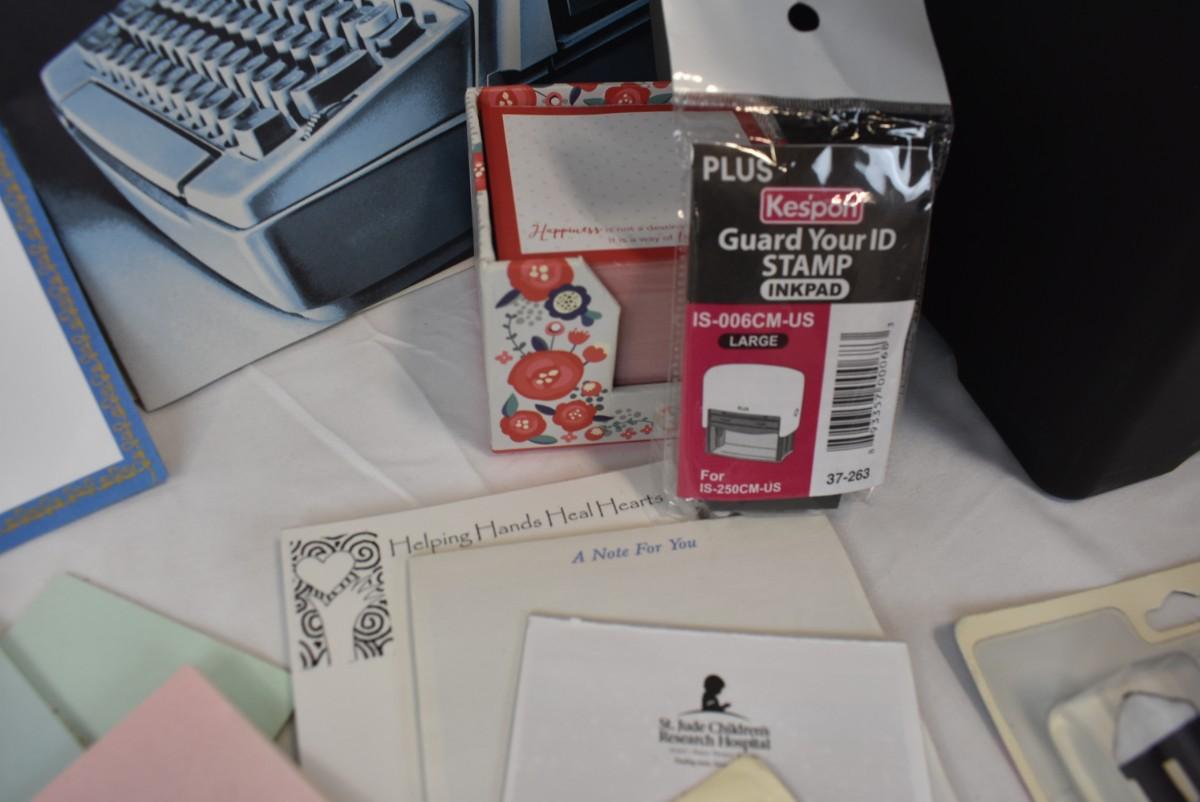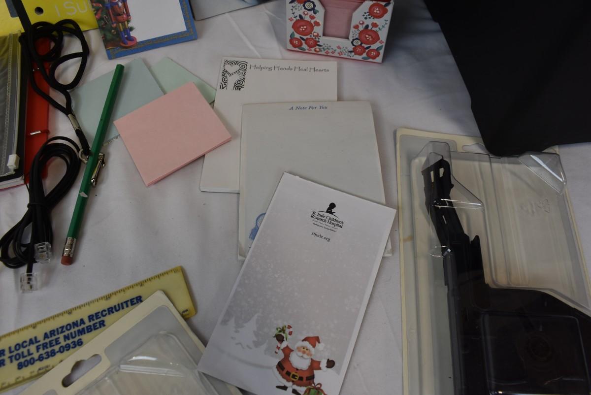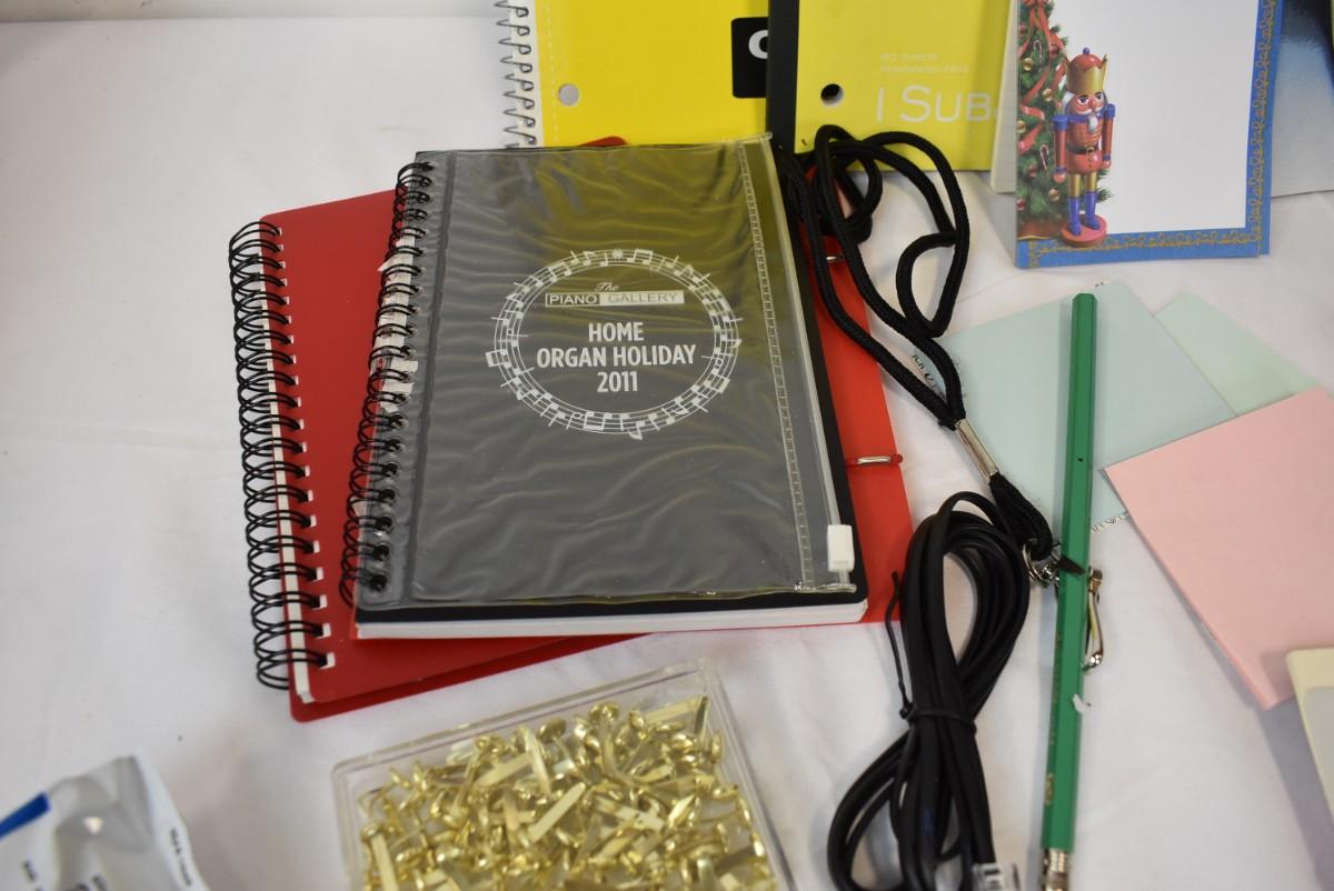 23 pc Office/School Supplies: Notebooks, Ink Cartridges, Ruler, Sterilite Bucket Front Clasp Broken