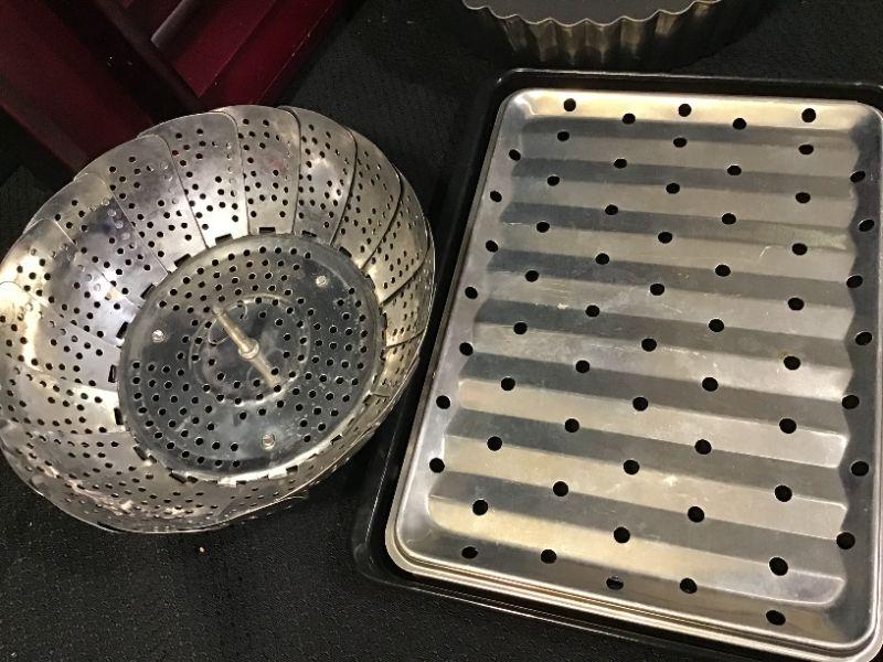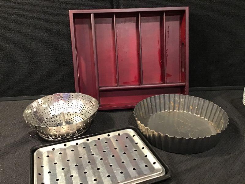 23 - Silverware rack, toaster oven tray, cheesecake tin,steamer