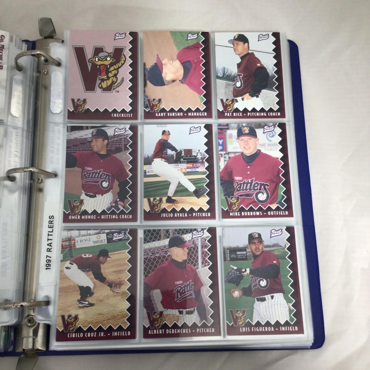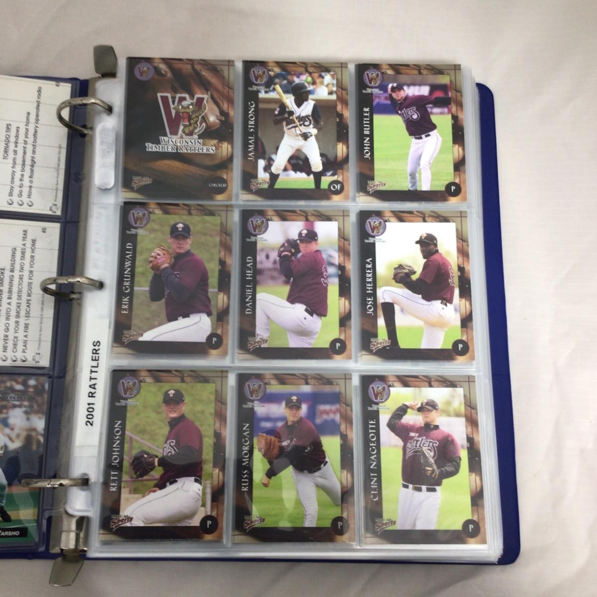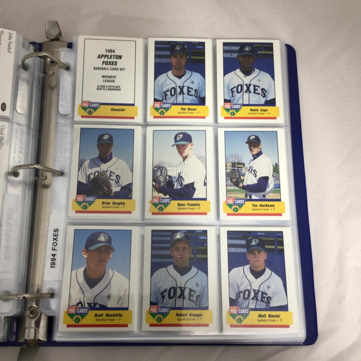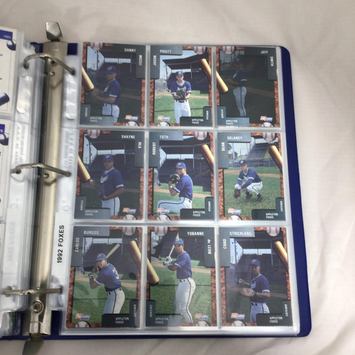 Binder full of Timber Ratters, and Appleton Foxes collection of cards. Not all cards are pictured. Timber Rattlers cards from years 1996, 1997, 1998, 1999, 2000, and 2001. Appleton Foxes cards from years 1990, 1991, 1992, 1993, and 1994. Please see photos for details and condition. ::: Shipping is available on this lot. If you require shipping you must let us know at the close of the auction. We will coordinate with you after the item has been won. Shipping fees will include insurance up to or exceeding the value of all items being mailed. If you have any questions regarding this lot please contact the auctioneer either via this website, by direct email or by phone. PICK UP TIMES and other important information can be found in the TERMS and DESCRIPTION of the auction. Please take a look for pertinent information. Thanks!