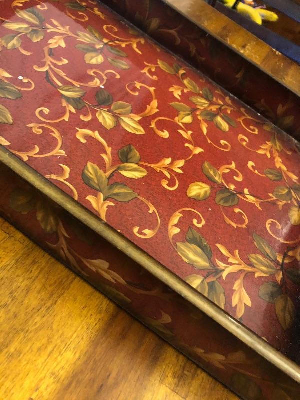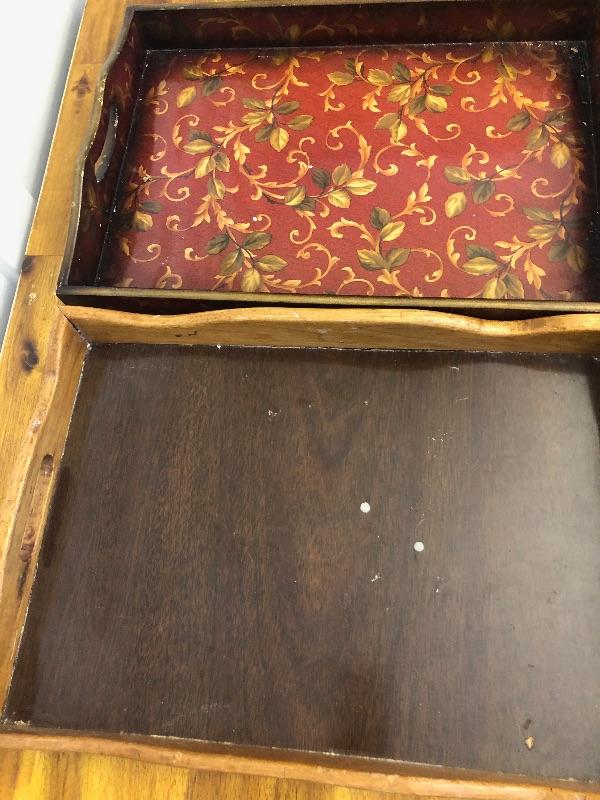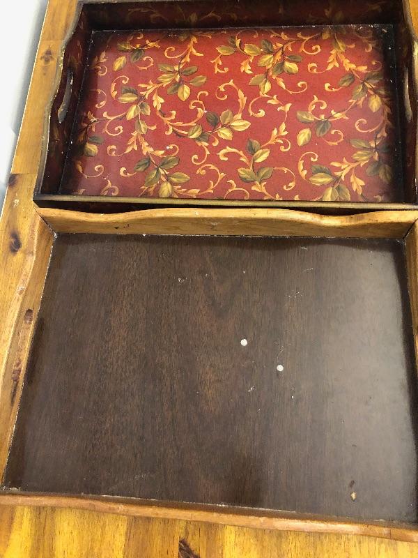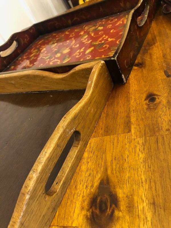 Wood serving tray used condition one is more damage than other. This is an ONSITE Auction all items will need to be picked up on location. Please see auction description for pick up procedures. This is an ONSITE Auction all items will need to be picked up on location. Please see auction description for pick up procedures.