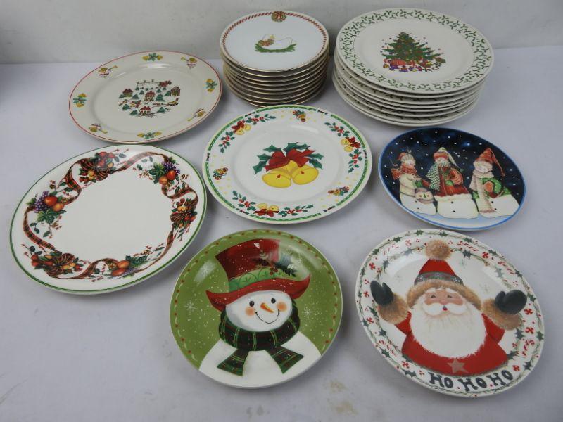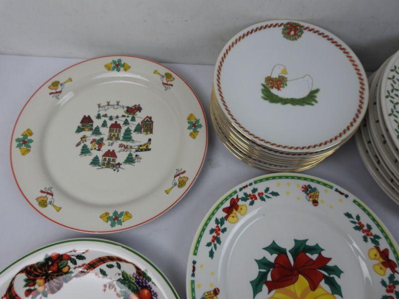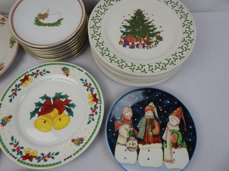 23 Various Christmas Plates: 9 Small Geese, 8 Christmas Trees, and 6 Various