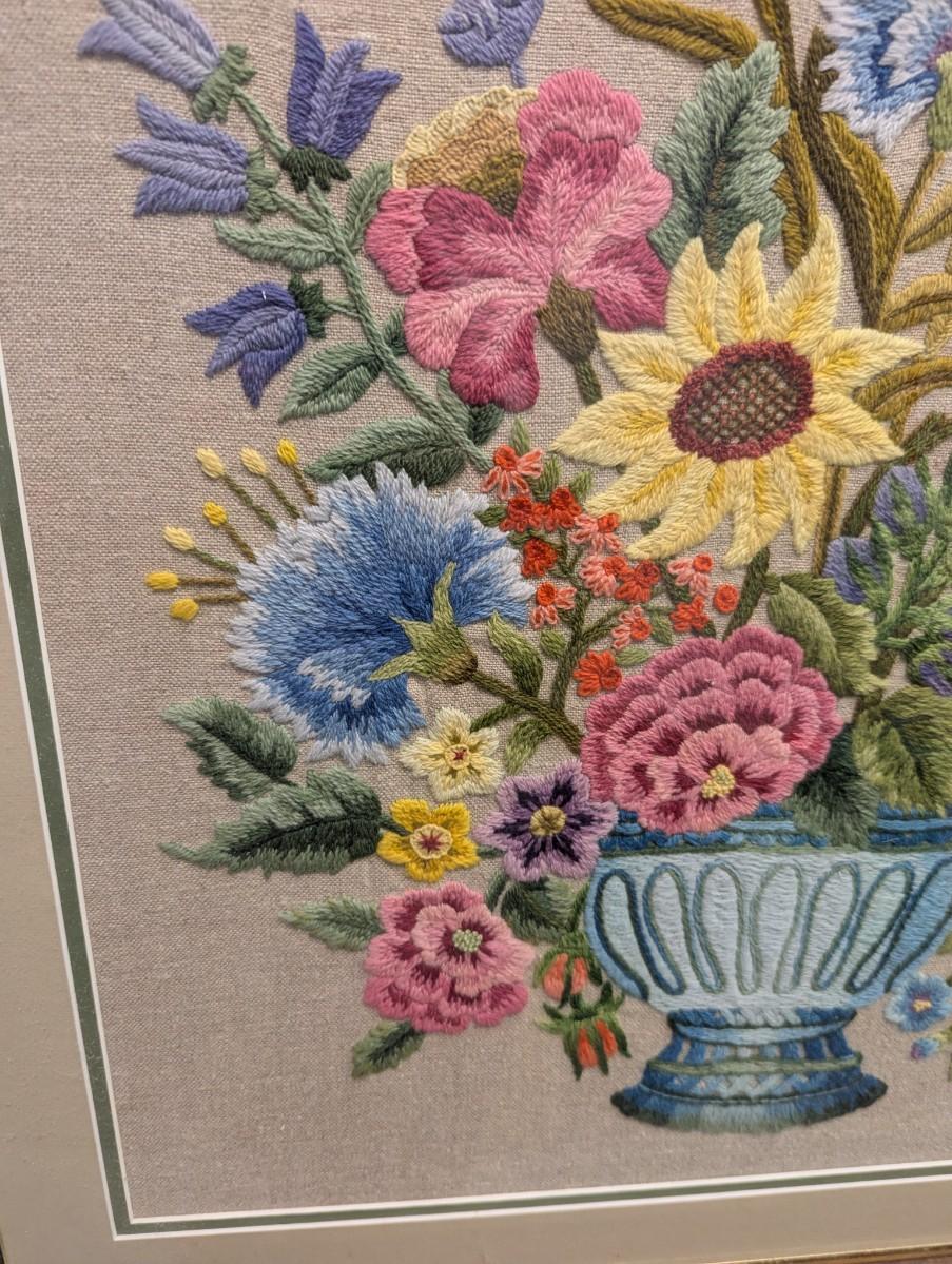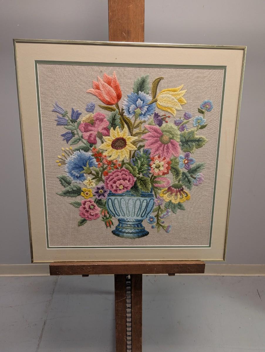 23" x 24" Cross Stitch Flower Bouquet Framed Art