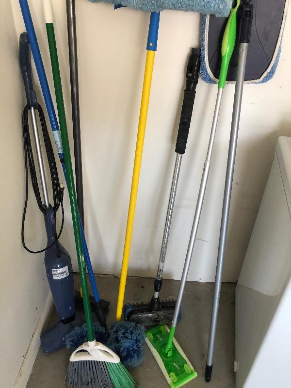 Broom, Swiffer, duster, etc. Used condition, needs to be cleaned. 6 pieces. This is an ONSITE Auction all items will need to be picked up on location. Please see auction description for pick up procedures. Shipping is available on smaller items.