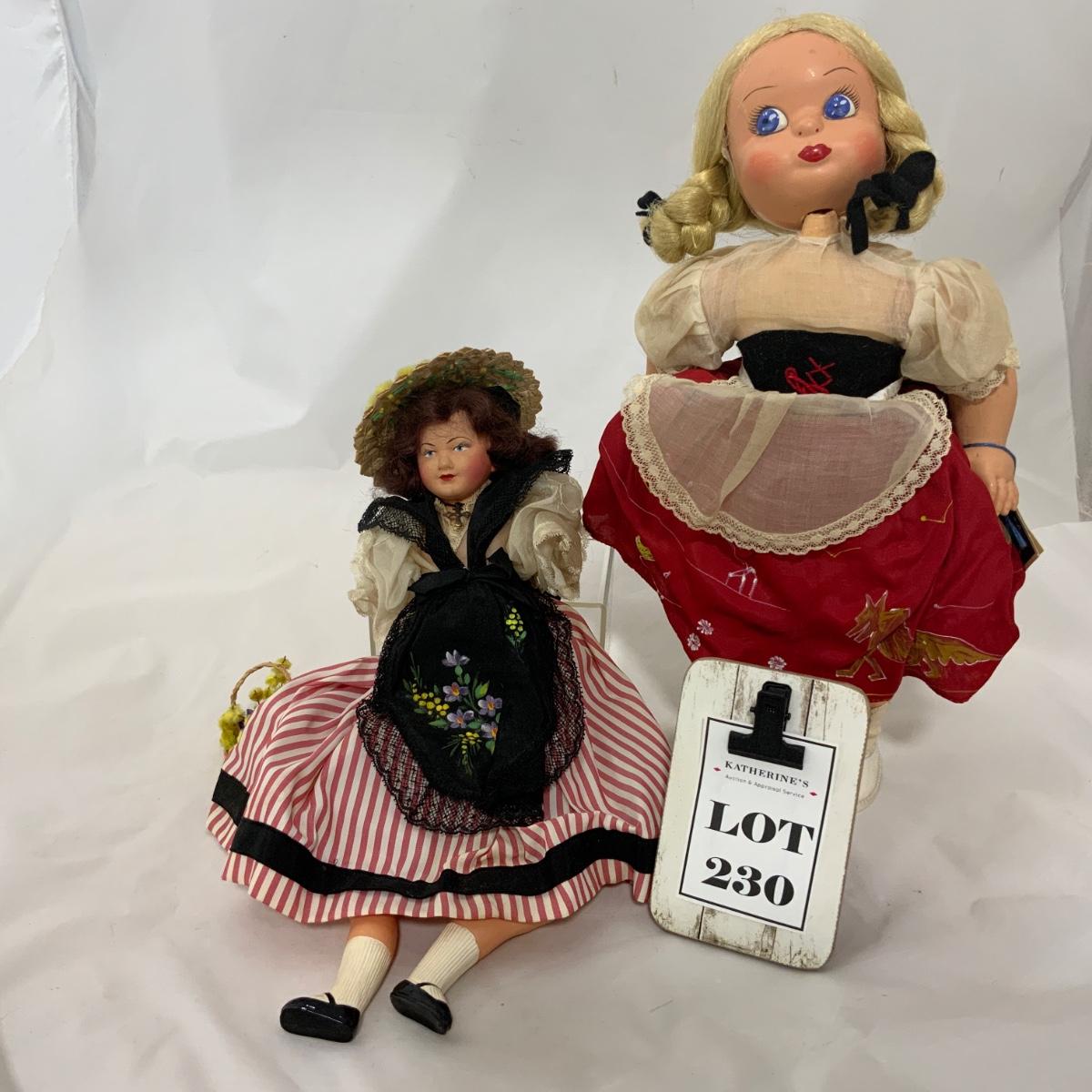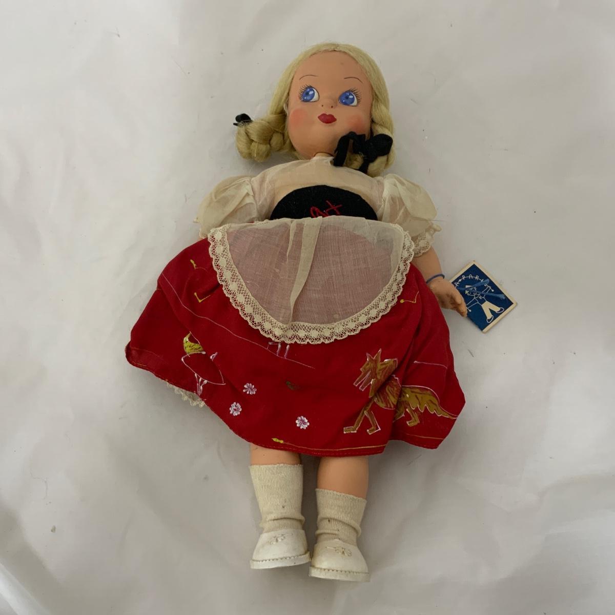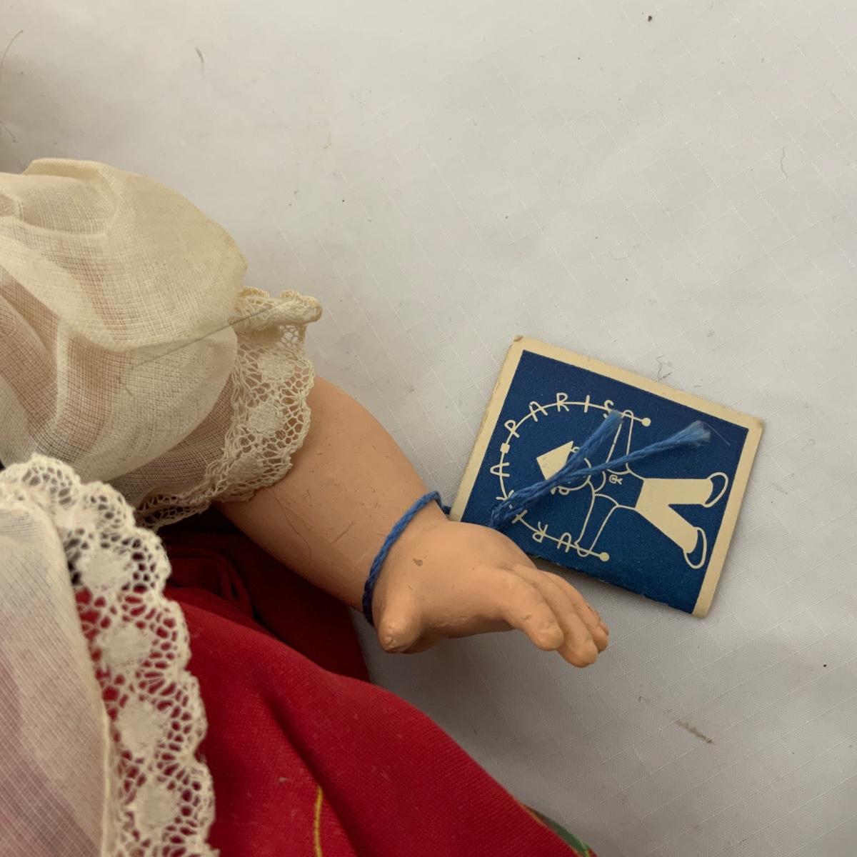 Two Dolls. The larger of the two is from France, circa 1950, and has the original tag. The other doll is celluloid, and needs to be restrung. Please see photos for details and condition. ::: Shipping is NOT available on this lot. If you have any questions regarding this lot please contact the auctioneer either via this website, by direct email or by phone. PICK UP TIMES and other important information can be found in the TERMS and DESCRIPTION of the auction. Please take a look for pertinent information. Thanks!