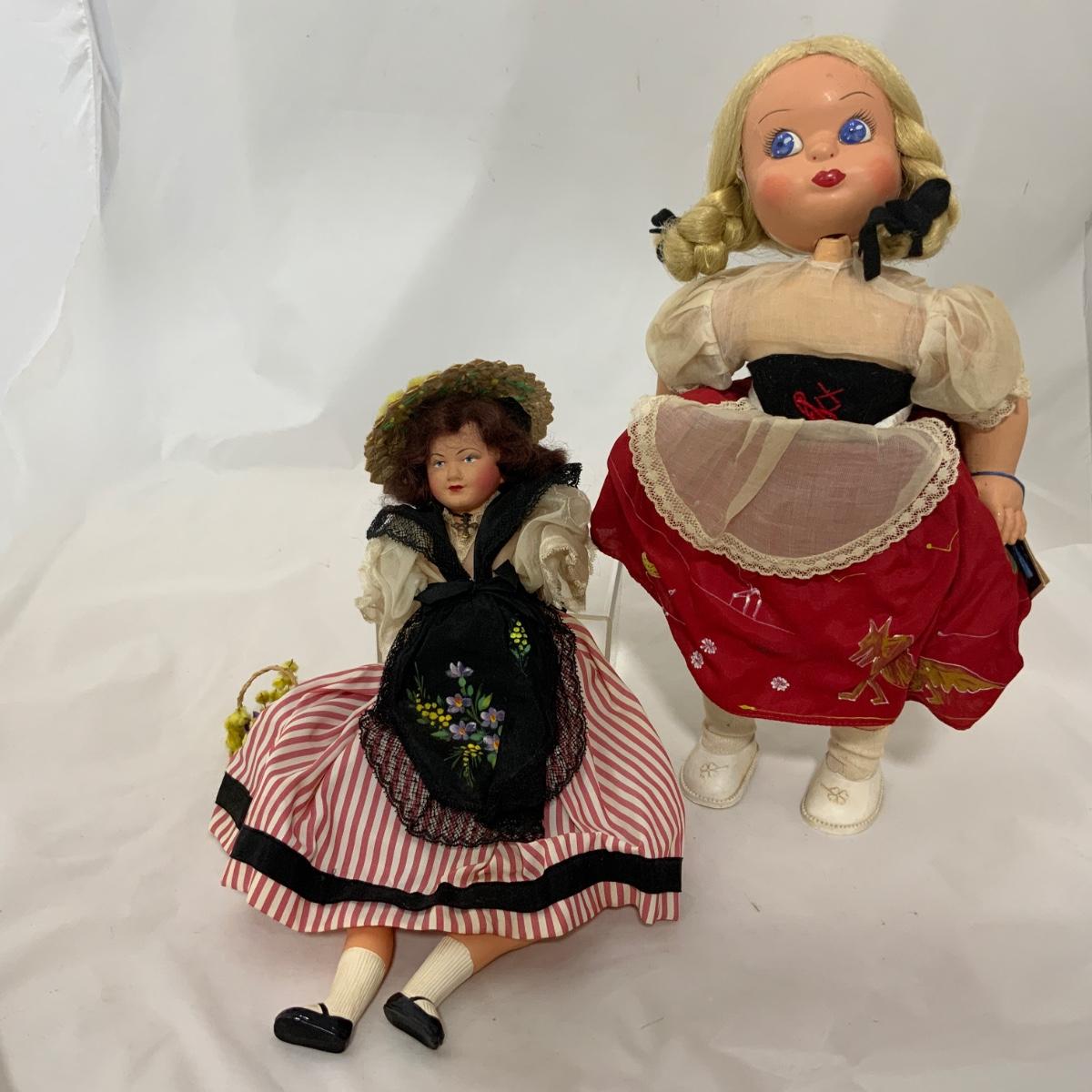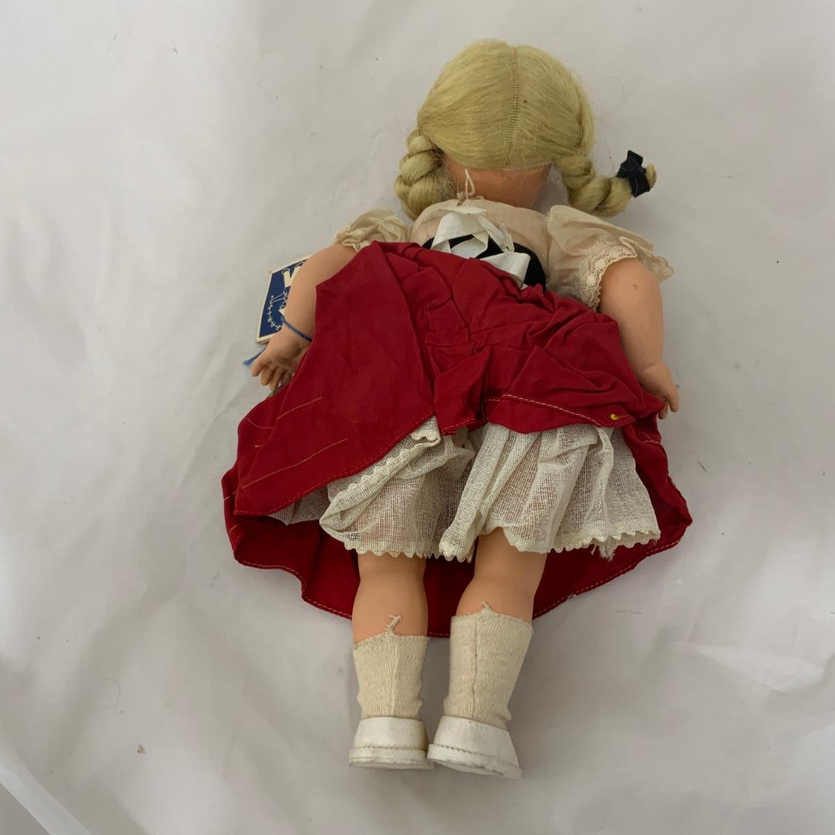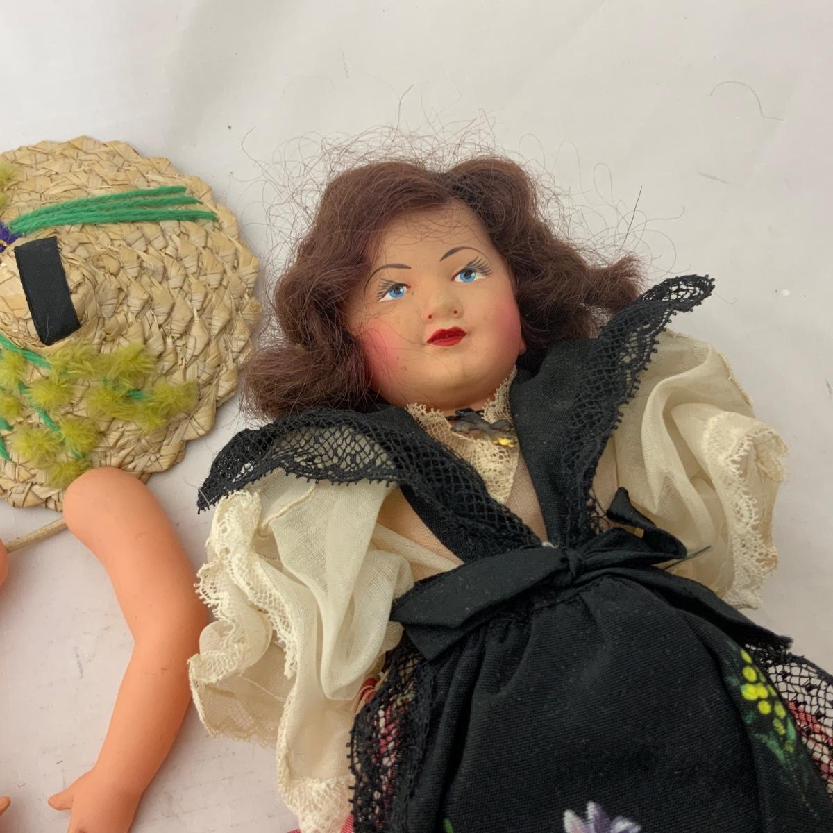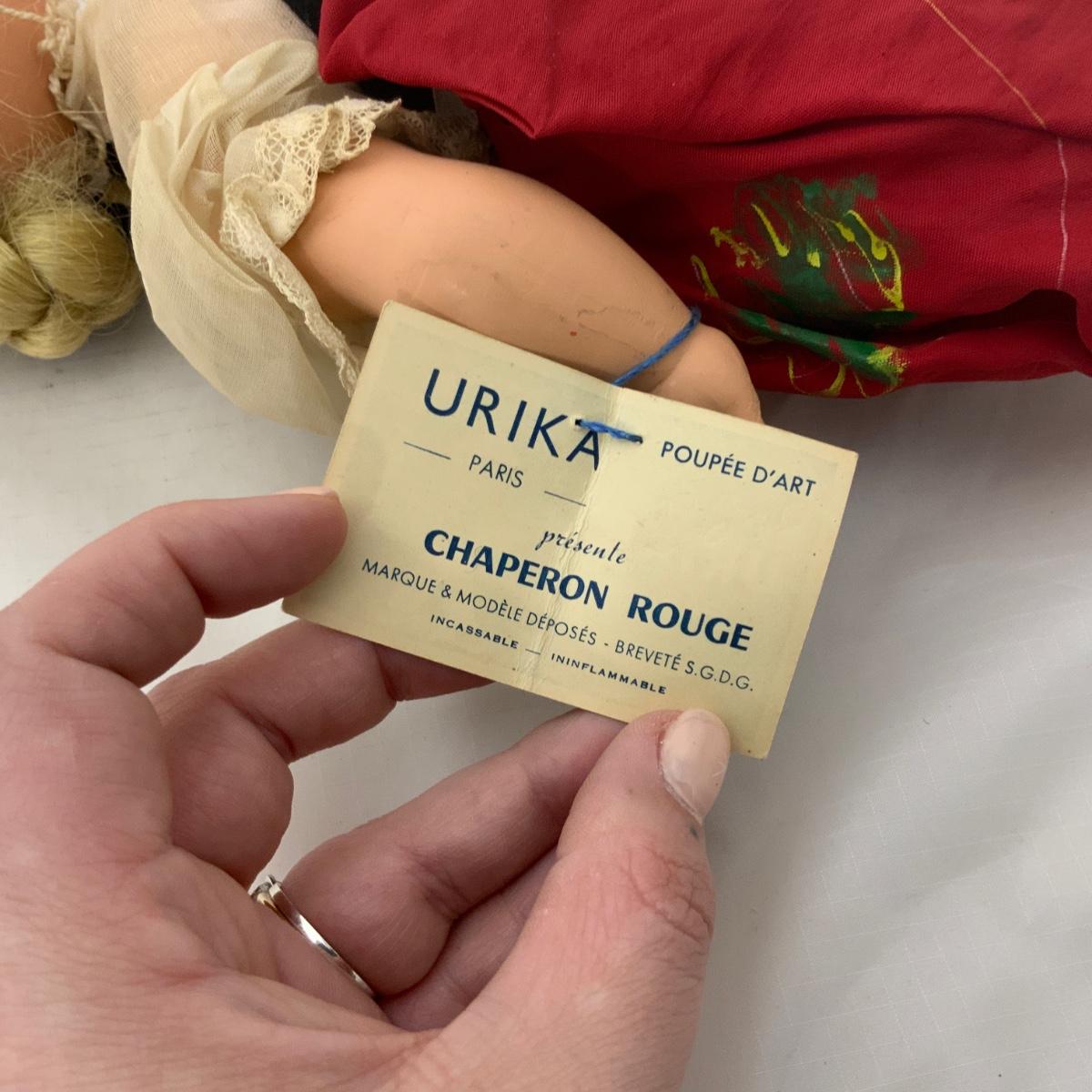 Two Dolls. The larger of the two is from France, circa 1950, and has the original tag. The other doll is celluloid, and needs to be restrung. Please see photos for details and condition. ::: Shipping is NOT available on this lot. If you have any questions regarding this lot please contact the auctioneer either via this website, by direct email or by phone. PICK UP TIMES and other important information can be found in the TERMS and DESCRIPTION of the auction. Please take a look for pertinent information. Thanks!