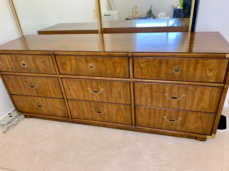 #230 DREXEL LARGE VERTICAL MIRROR MATCHING 9 DRAWER CONSOLE DRESSER