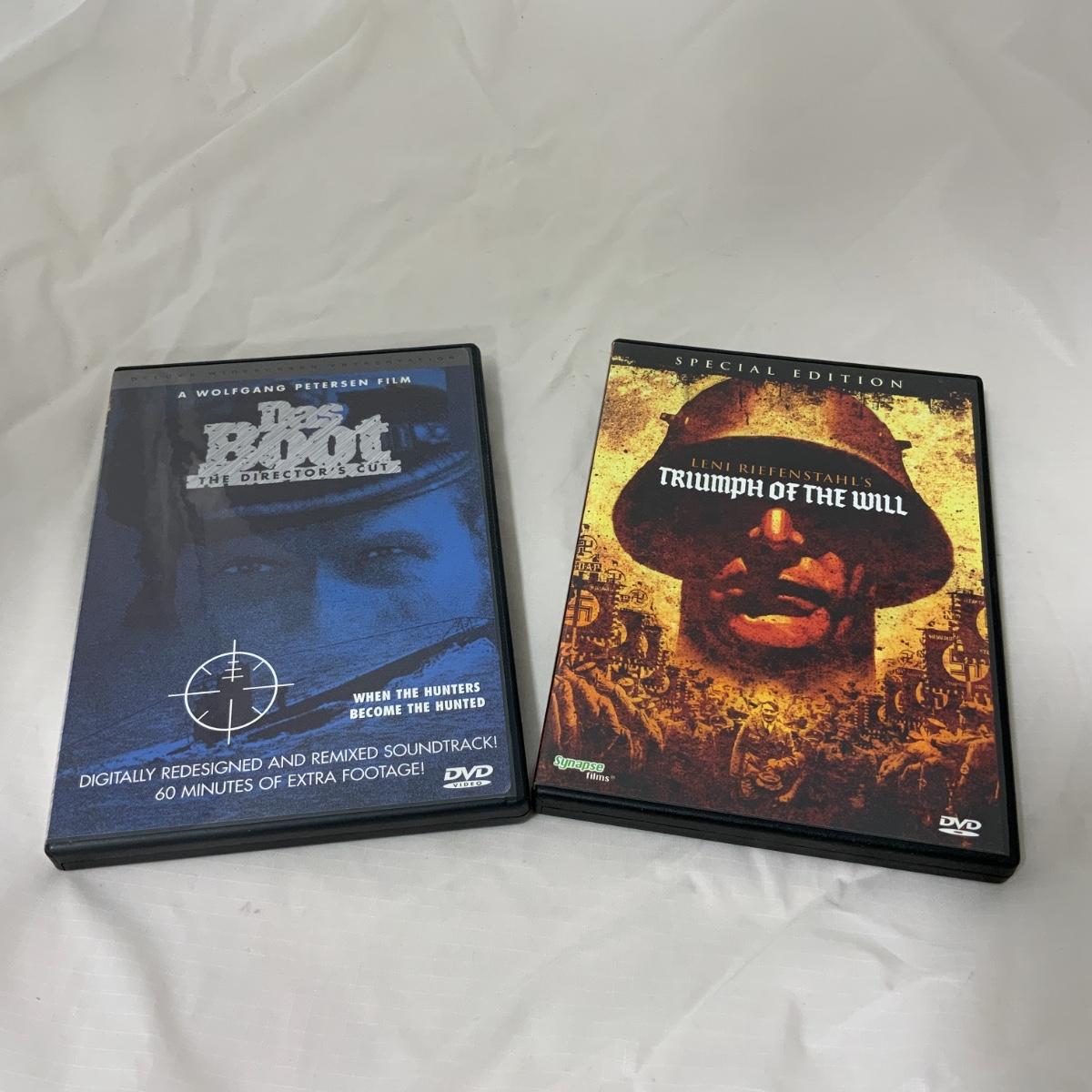 From the Estate of Peter and Alice Radovanovich: DVDs to add to your collection! Das Boot and Triumph of the Will. Das Boot: A German submarine patrols the Atlantic Ocean during World War II, manned by a crew that must contend with tense conflicts and long stretches of confined boredom. While war correspondent Werner (Herbert Grönemeyer) observes day-to-day life aboard the U-boat, the grizzled captain (Jürgen Prochnow) struggles to maintain his own motivation as he attempts to keep the ship's morale up in the face of fierce battles, intense storms and dwindling supplies. Triumph of the Will: Filmmaker Leni Riefenstahl's controversial masterwork is an artful work of propaganda showcasing German chancellor and Nazi Party leader Adolf Hitler at the 1934 Nuremberg Rally. Edited from over 60 hours' worth of raw footage shot over the course of the rally's four days, the film is visually remarkable in the way it captures the event's enormous scale. Riefenstahl's portentous filming from low angles (to make the small-framed Hitler look imposing and majestic) is often copied and parodied. // Sixteen DVDs including greats from the big and the small screen. Please see photos for the DVDs that are included. ::: Shipping is available on this lot. If you require shipping you must let us know at the close of the auction. We will coordinate with you after the item has been won. Shipping fees will include insurance up to or exceeding the value of all items being mailed. If you have any questions regarding this lot please contact the auctioneer either via this website, by direct email or by phone. PICK UP TIMES and other important information can be found in the TERMS and DESCRIPTION of the auction. Please take a look for pertinent information. Thanks!