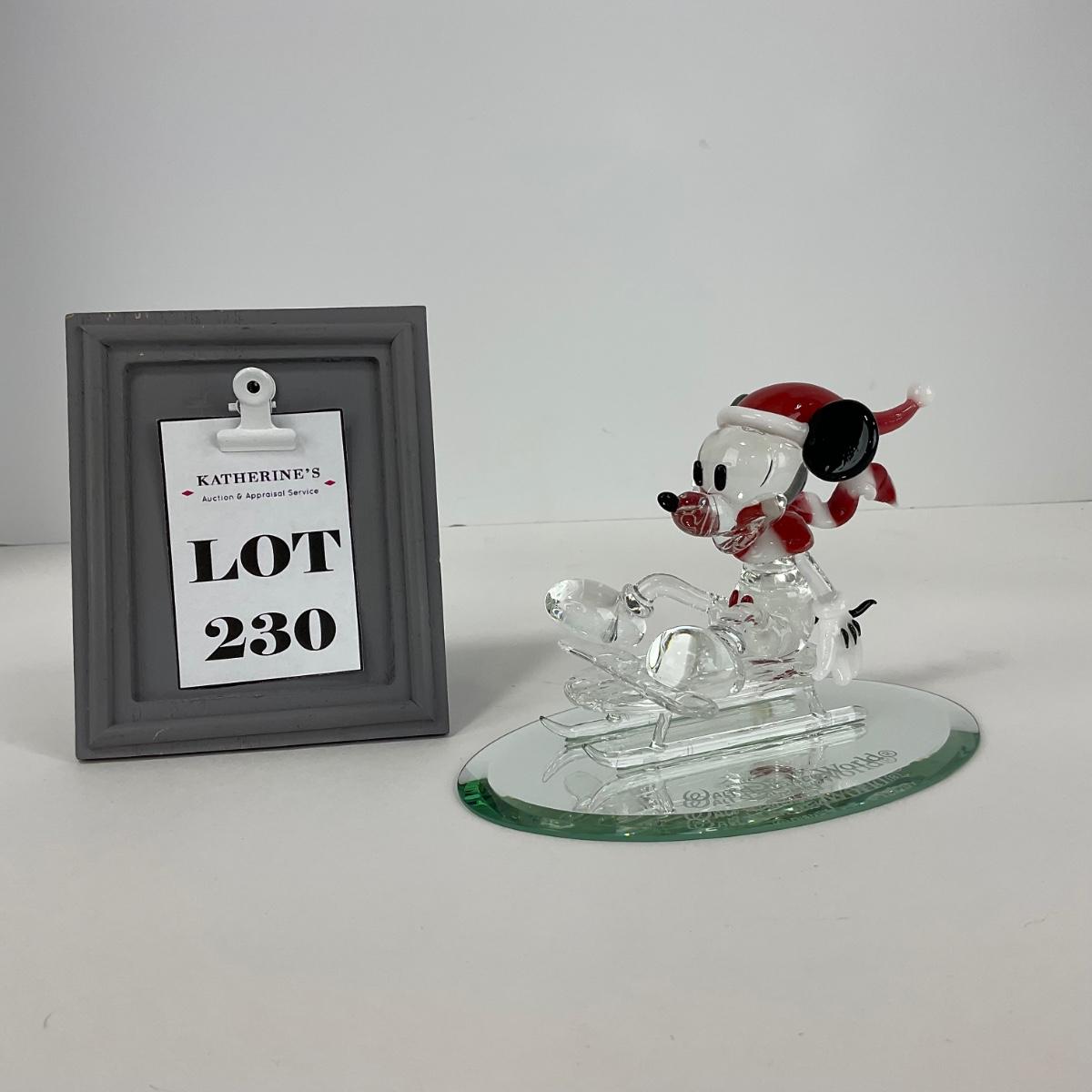 One glass Mickey Mouse wearing a Santa hat glass figure. Appears to be in good shape a few scuffs and marks, but otherwise good condition. Please see photos for details and condition. Any condition statement is given as a courtesy to a client, is an opinion, and should not be treated as a statement of fact. Reference to condition written, oral or within a condition report shall not be regarded as a full account of condition and may not include all defects, alterations, or restorations. Absence of a condition report does not imply a lot is flawless or lacking imperfections or damage. Katherine’s Auction & Appraisal Service shall have no responsibility for any error or omission. Returns shall not be accepted on the basis of condition. ::: Shipping is available on this lot. If you require shipping you must let us know at the close of the auction. We will coordinate with you after the item has been won. Shipping fees will include insurance up to or exceeding the value of all items being mailed. If you have any questions regarding this lot please contact the auctioneer either via this website, by direct email or by phone. PICK UP TIMES and other important information can be found in the TERMS and DESCRIPTION of the auction. Please take a look for pertinent information. Thanks!